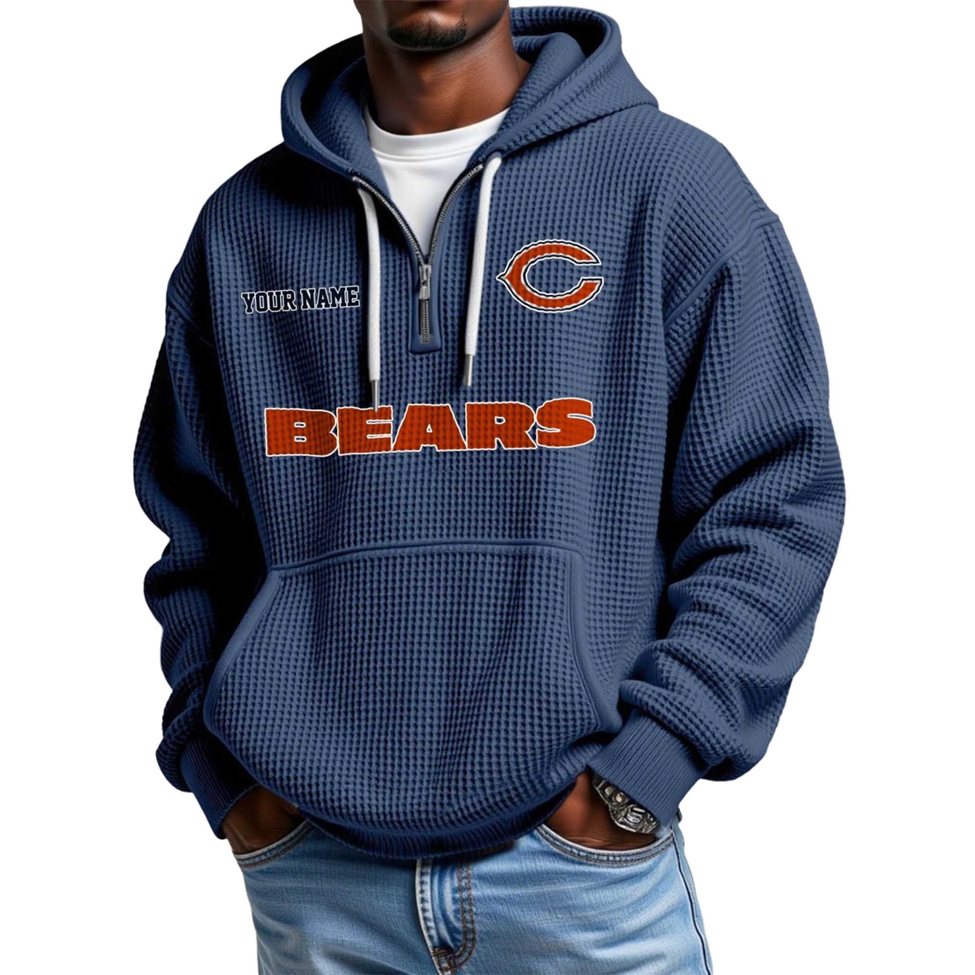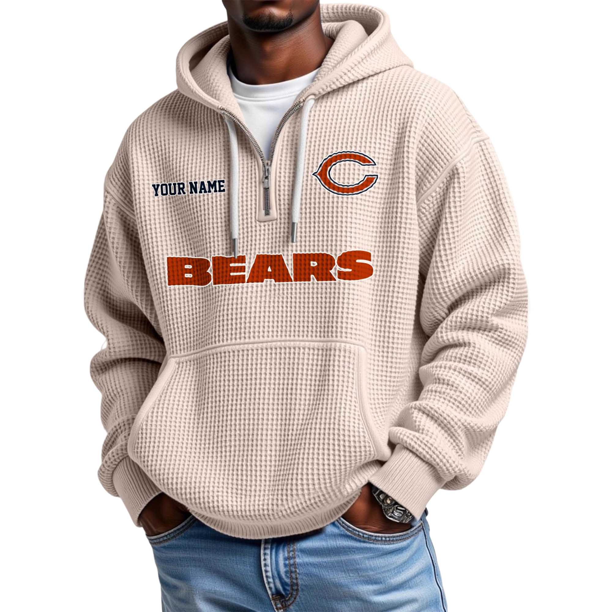Recently, the Bears Personalized Quarter Zip Waffle Hoodie has garnered attention for its simple design and comfortable wear. The image shows a neutral grey hoodie with a prominent Bears logo, personalized name placement, and a classic quarter zip collar. This updated style focuses on simplicity, team identity, and everyday practicality, making it easy to wear outside of game days.