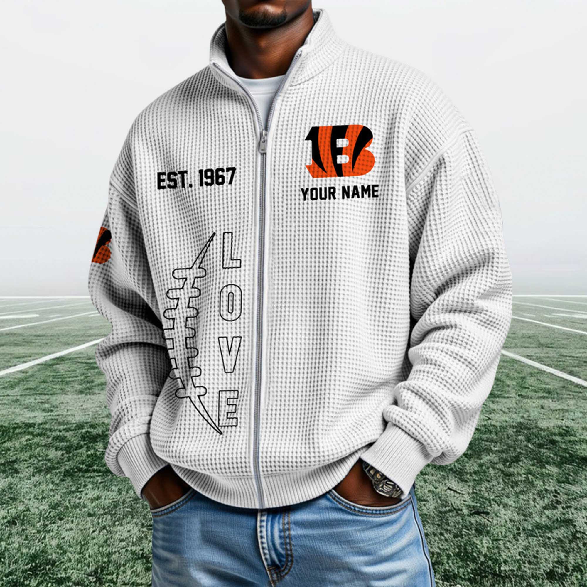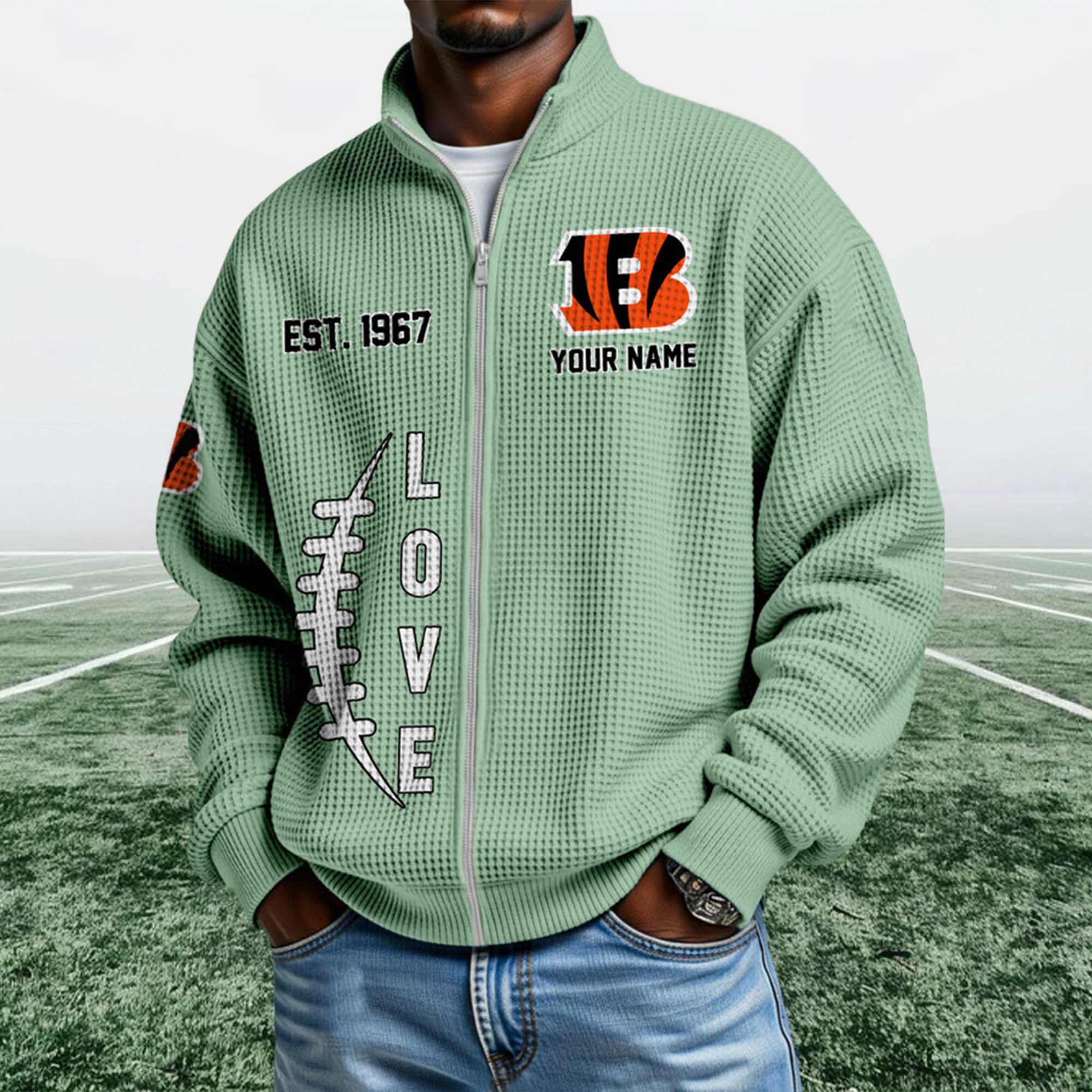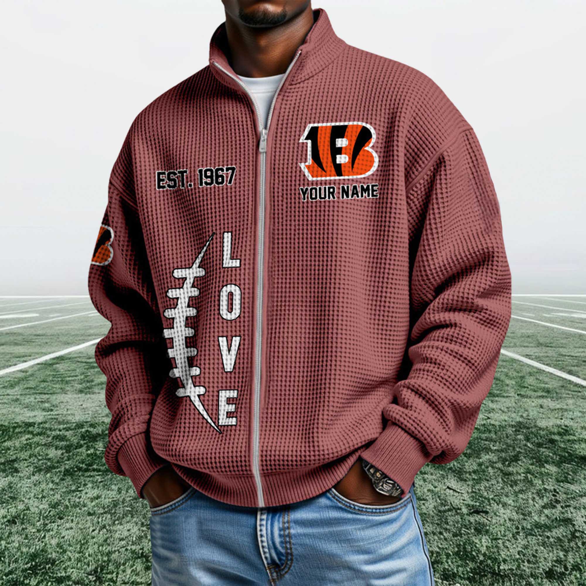 This design has very high collectible potential. Clothing that highlights the team’s founding year often holds lasting value for fans. Combined with the increasing popularity of honeycomb knit fabric and the classic ¼ zip style, this sweatshirt could become a sought-after item for Bengals fans who appreciate timeless designs tied to the team’s history.
