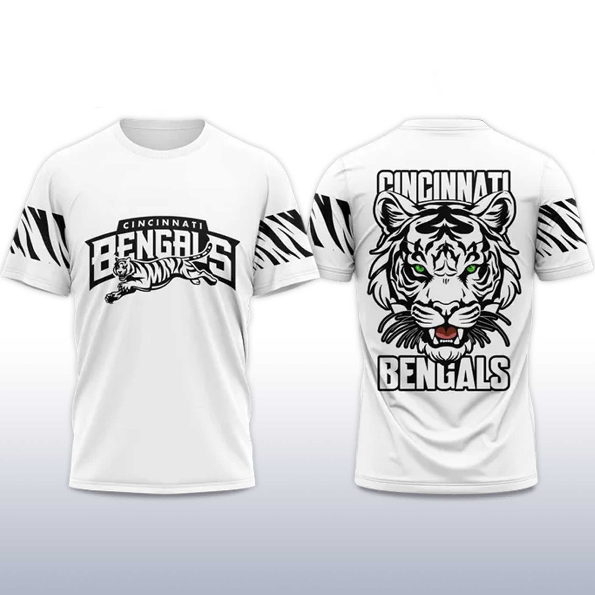 The “White Bengals” look has become a signature trend among fans and players alike. With its sophisticated aesthetic and high-contrast tiger print, it fits perfectly into the modern sportswear landscape. From locker rooms to streetwear collections, this design stands out as one of the must-have styles of 2025.