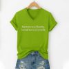 This shirt features a simple, clean design with the message displayed in an elegant font. The V-neck offers a modern silhouette that flatters a variety of body types, while the relaxed fit ensures all-day comfort. The simplicity of the design makes a bold statement without being too flashy, perfect for both casual outings and relaxed work environments where personality can shine.