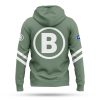 Prepare to be mesmerized by the hoodie’s striking olive green canvas, a bold tribute to Boston’s rich heritage. The front features “RED SOX” in crisp white lettering, while the back reveals a large, attention-grabbing “B” logo. Glossy white stripes run down the sleeves for a dynamic sporty look, and a subtle City Connect patch on the arm affirms a nod to tradition and innovation. It’s a visual masterpiece that blends history with modernity.