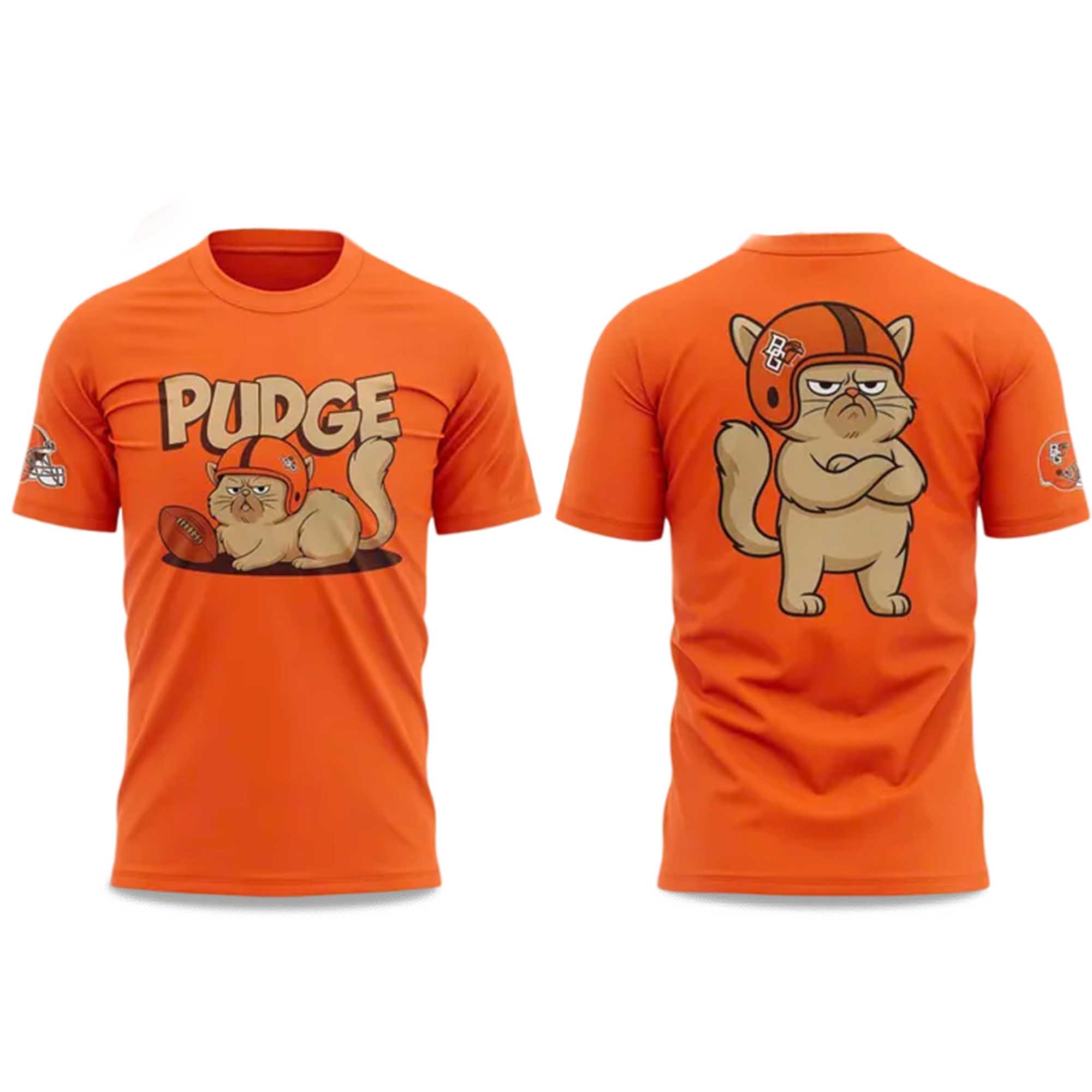 The Bowling Green State University Pudge The Cat Football Shirt celebrates school culture with a clever twist. Pudge the beloved grumpy cat mascot — takes center stage, wearing a football helmet and sporting a confident demeanor. It’s the perfect blend of playful energy and team spirit that’s sure to make BGSU fans smile at every game.