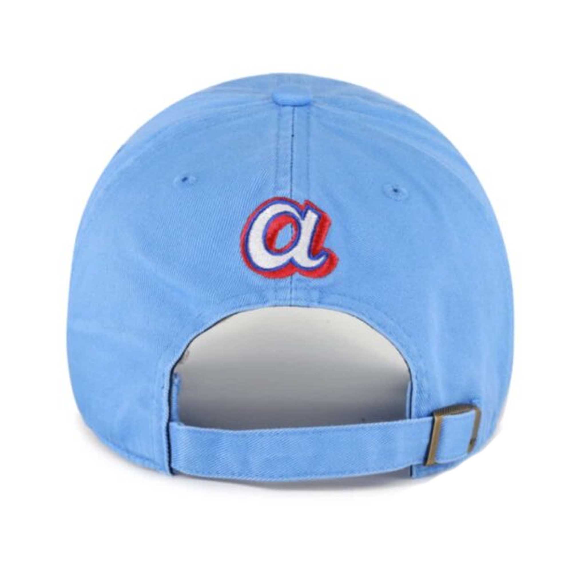 The hat features a light blue background color, giving it a fresh and eye-catching appearance. The front features a striking cream-colored helmet with playful color accents, creating an interesting contrast against a soft background. The subtle number 70 is reminiscent of the Braves’ heritage, adding depth to the design. On the back, the simple embroidered a logo keeps the team’s identity minimalist yet easily recognizable. The curved brim and sturdy crown create a balanced, modern look.