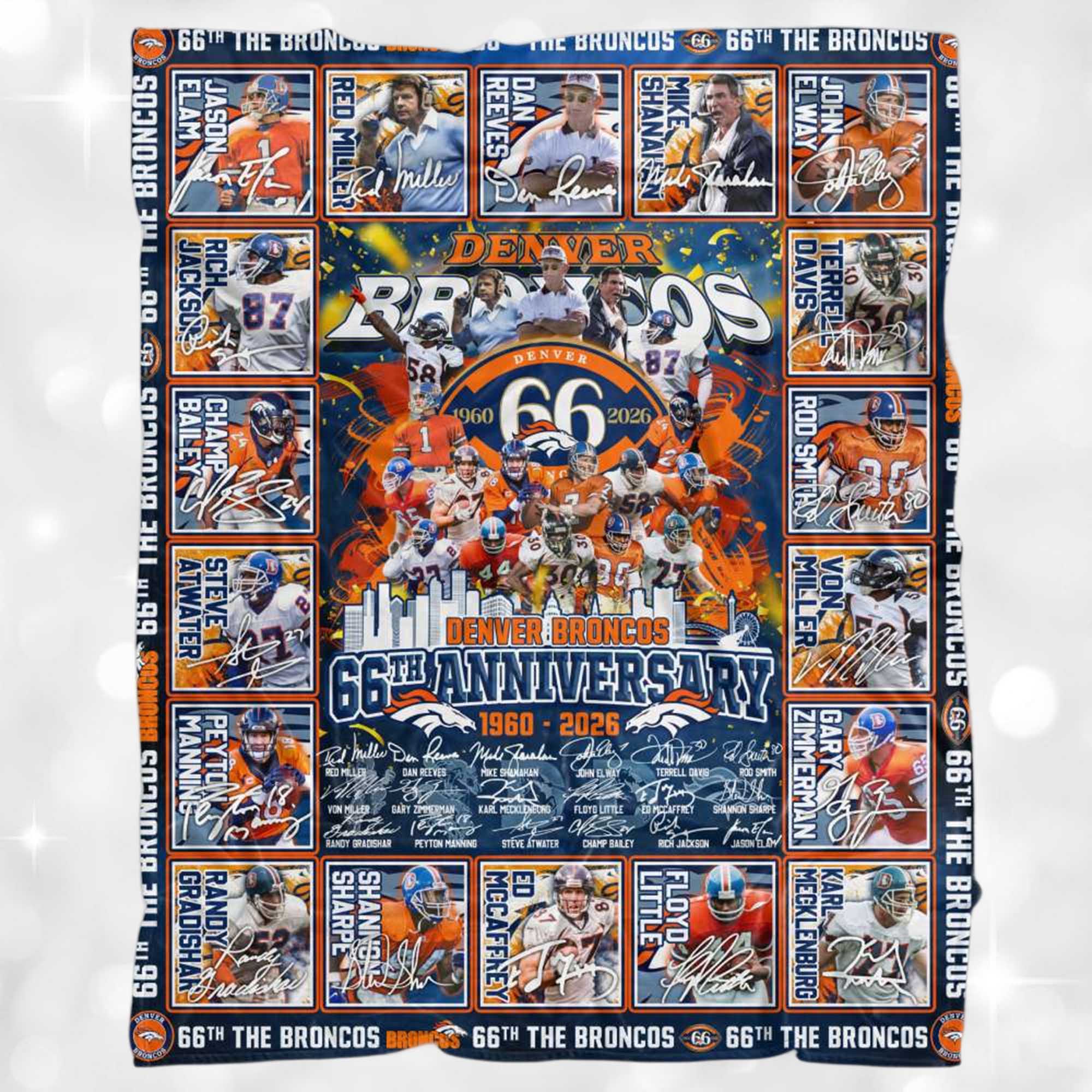 The Broncos 66th Anniversary 1960-2026 Fleece Blanket takes fans back to the unforgettable games, iconic lineups, and strong team spirit built since 1960. With bright colors and a dynamic design, the blanket serves as a warm reminder of every moment that has shaped Broncos history. It was created for fans who love to cheer year after year with true passion.