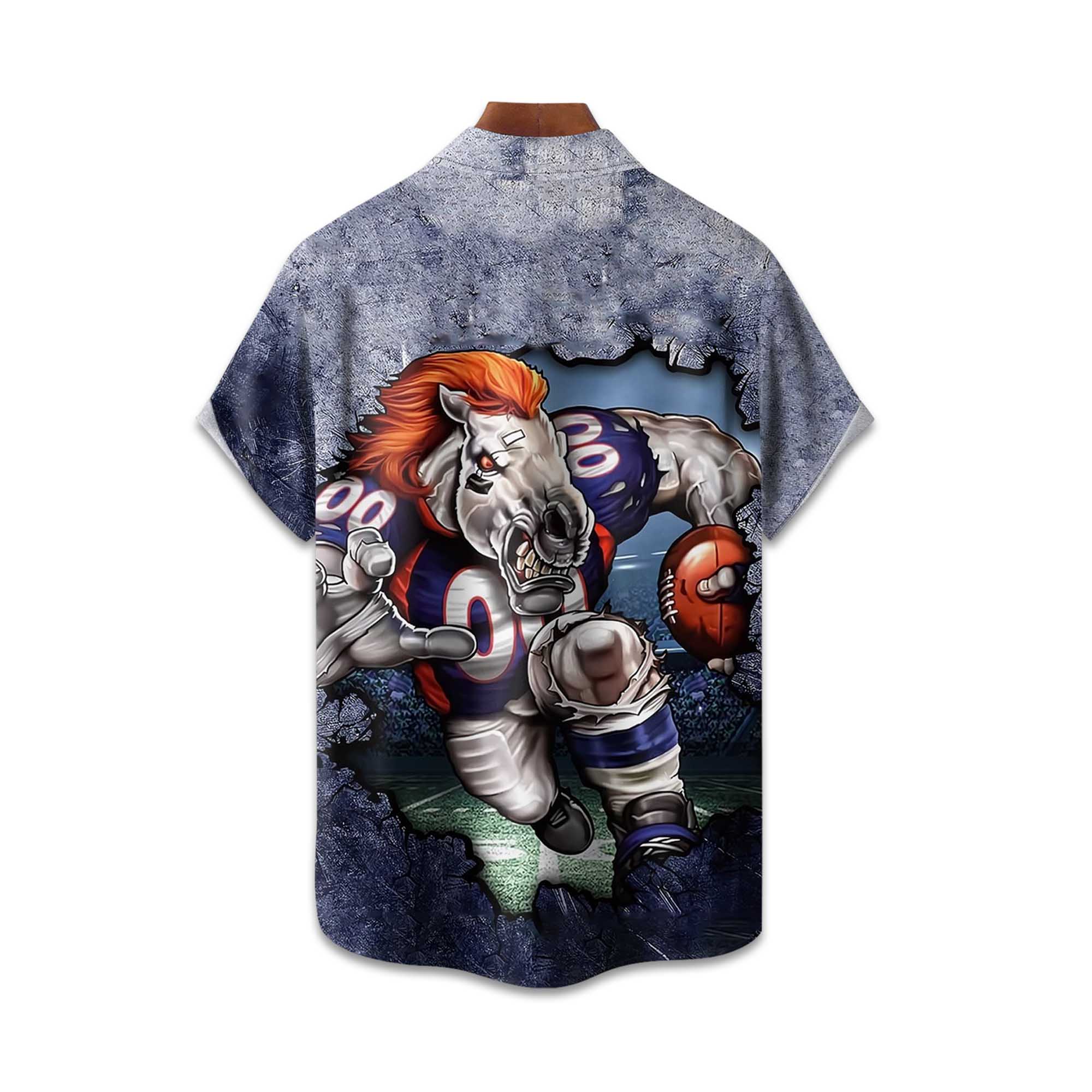 The design combines the powerful look of football with a classic Hawaiian style. Short sleeves, an open collar, and a lightweight construction provide all-day comfort. The striking Broncos-themed illustration creates a 3D visual effect, while reinforced stitching adds durability. The breathable material keeps you cool whether you’re cheering enthusiastically or relaxing on vacation.