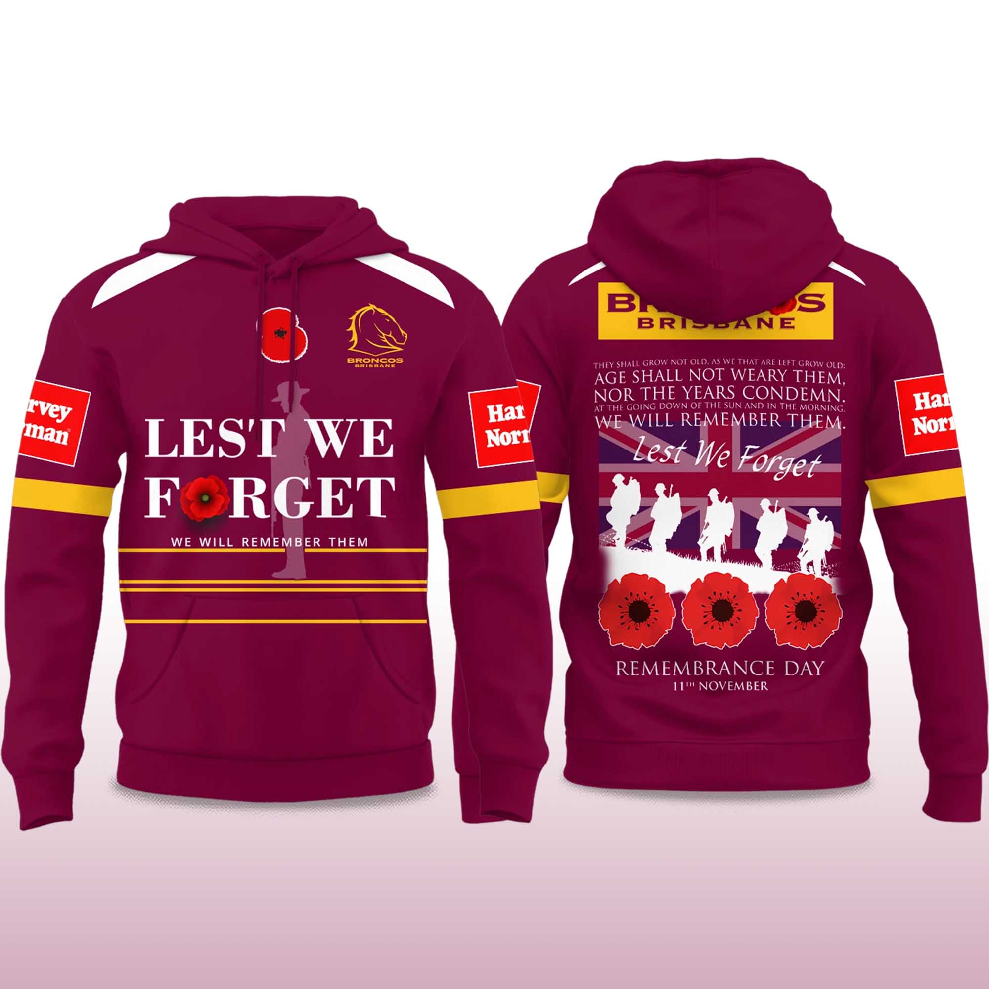 As 2025 approaches, fans have embraced designs that go beyond team spirit and carry deeper meaning. This Broncos Lest We Forget 2025 Hoodie connects sports culture with a heartfelt tribute to the tradition of remembrance. Poppy imagery, silhouettes, and respectful language allow fans to show their appreciation in a calm, thoughtful way while remaining true to Broncos style.