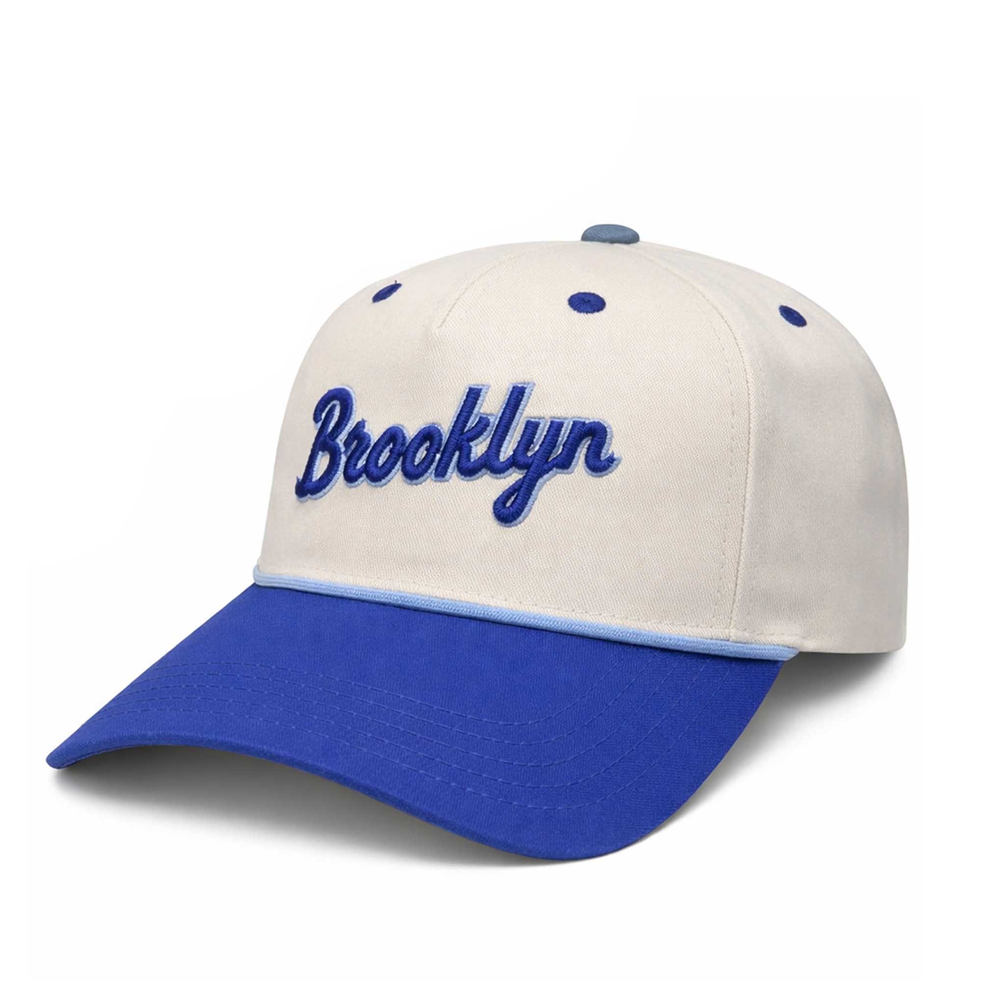 The raised embroidery of “Brooklyn” adds depth and a soft, sporty feel, drawing attention without being overly flashy. Maintains a neat shape while offering a snug and comfortable fit. Ventilation holes help maintain airflow, keeping you comfortable even after hours of wear. The cream and royal blue color combination offers a timeless Brooklyn look, easily paired with casual or sporty outfits.
