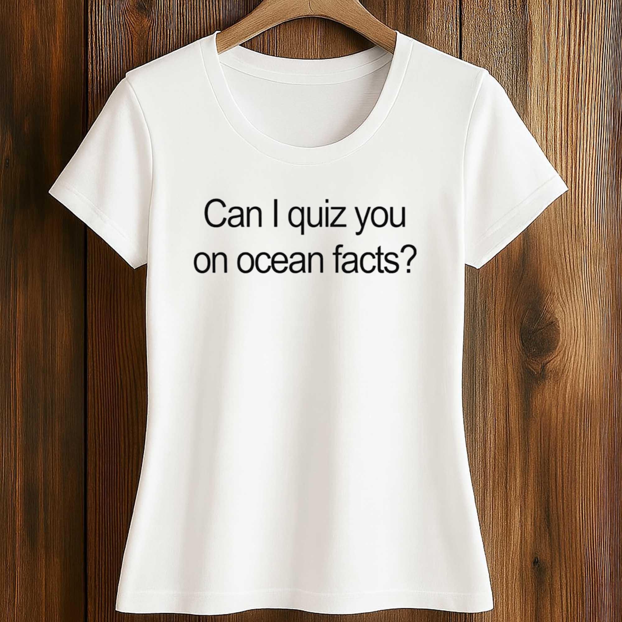 The Can I Quiz You On Ocean Facts Shirt is attracting attention from those who appreciate clever humor and an educational style. As minimalist quote T-shirts continue to trend, this design stands out by turning a simple sentence into a conversation starter. It perfectly fits the current preference for simple fashion, reflecting personal interests such as science, nature, and learning.