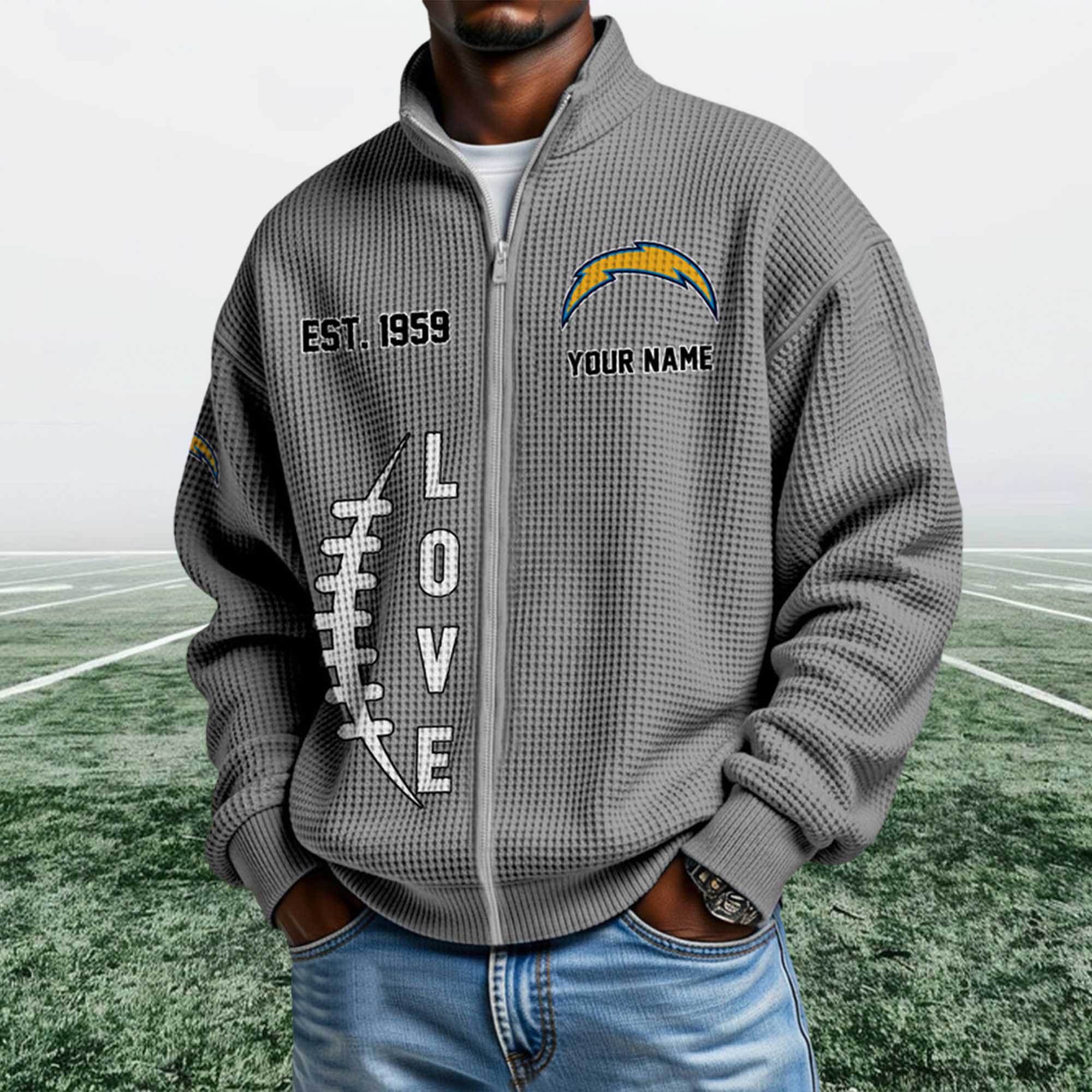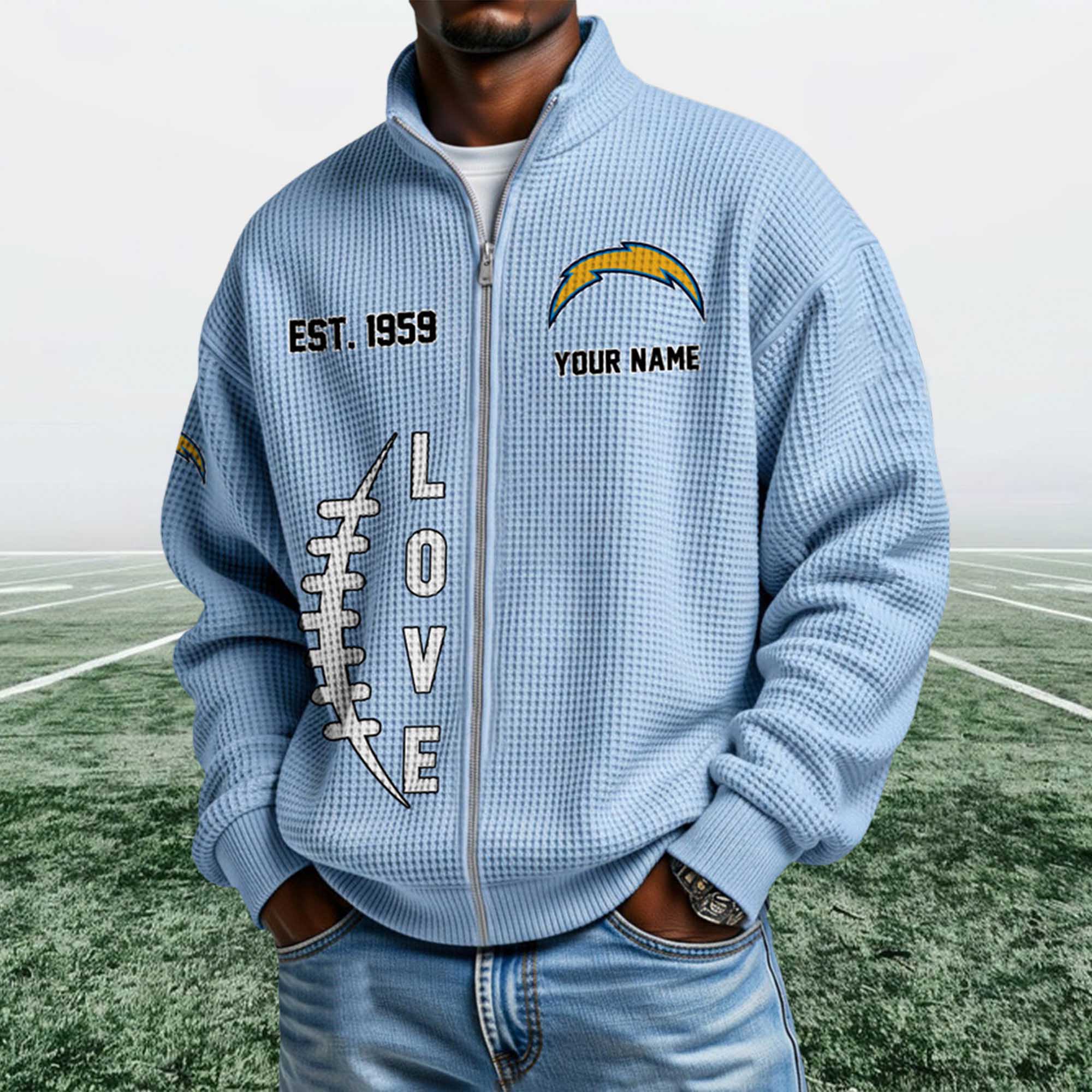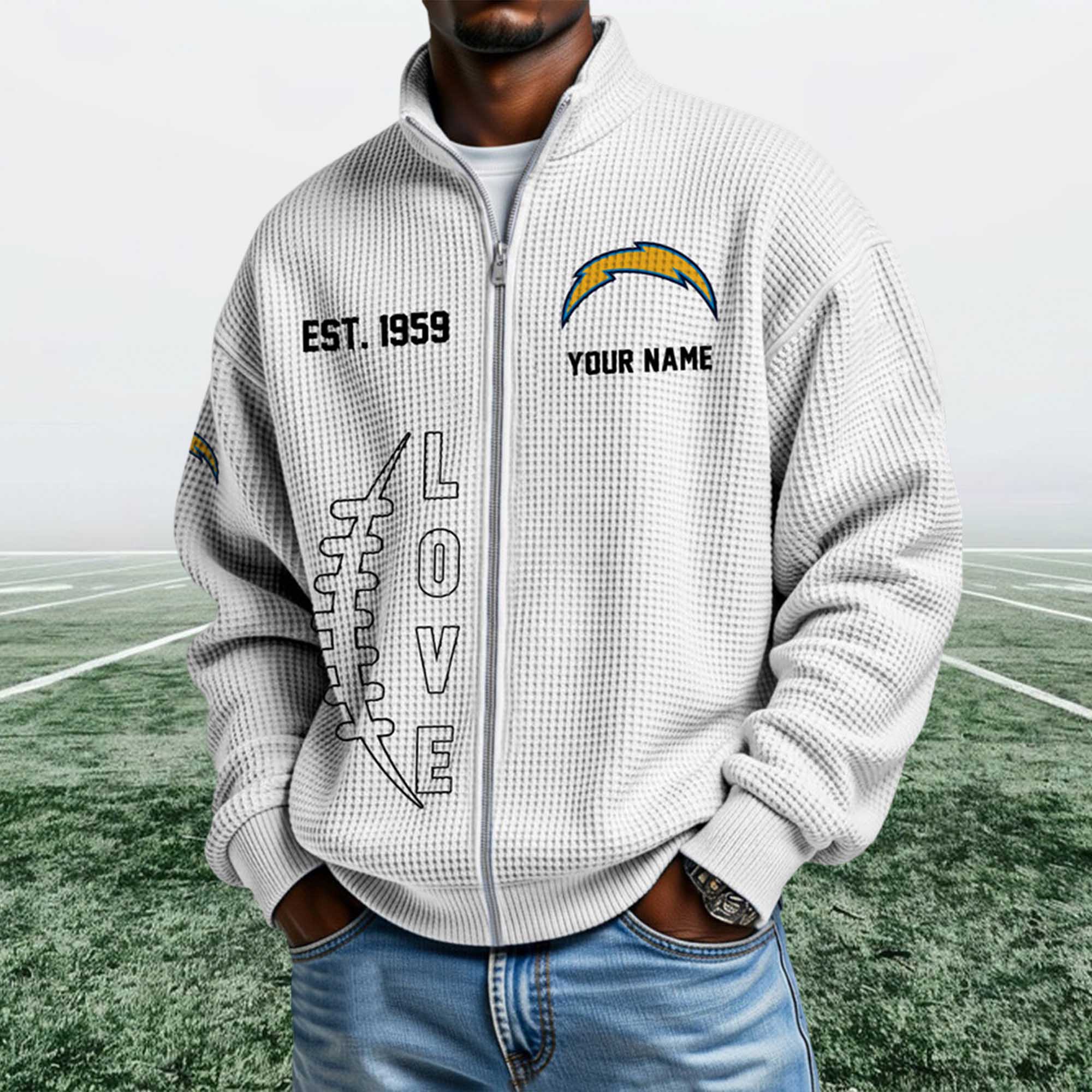 The Chargers EST 1959 Quarter Zip Waffle Sweatshirt reflects a strong shift in fan apparel toward heritage-focused designs that feel wearable every day. Fans are moving beyond basic hoodies and choosing textured, zip-neck sweatshirts that work across settings. This piece stands out with its waffle surface, founding-year detail, and clean Chargers lightning bolt logo.