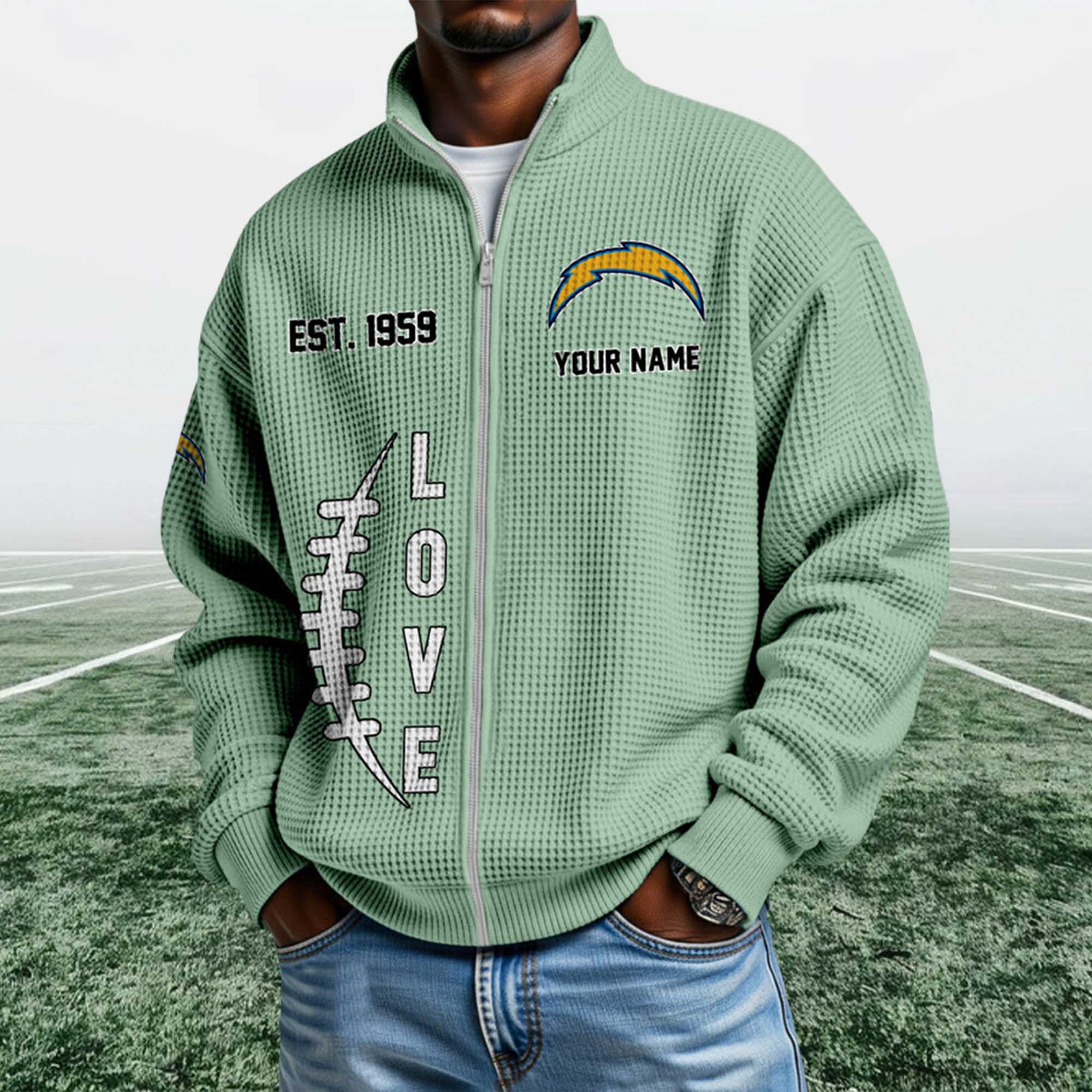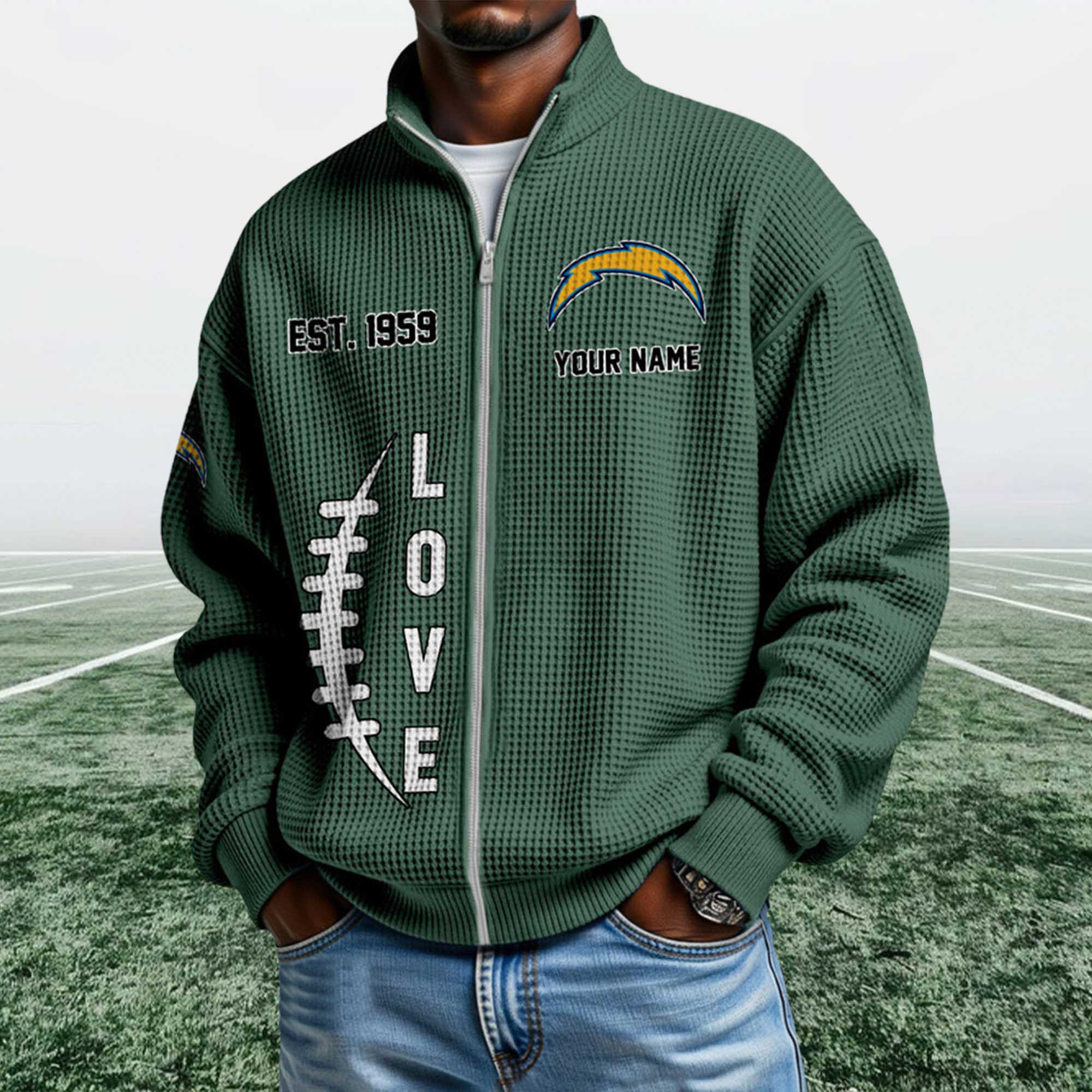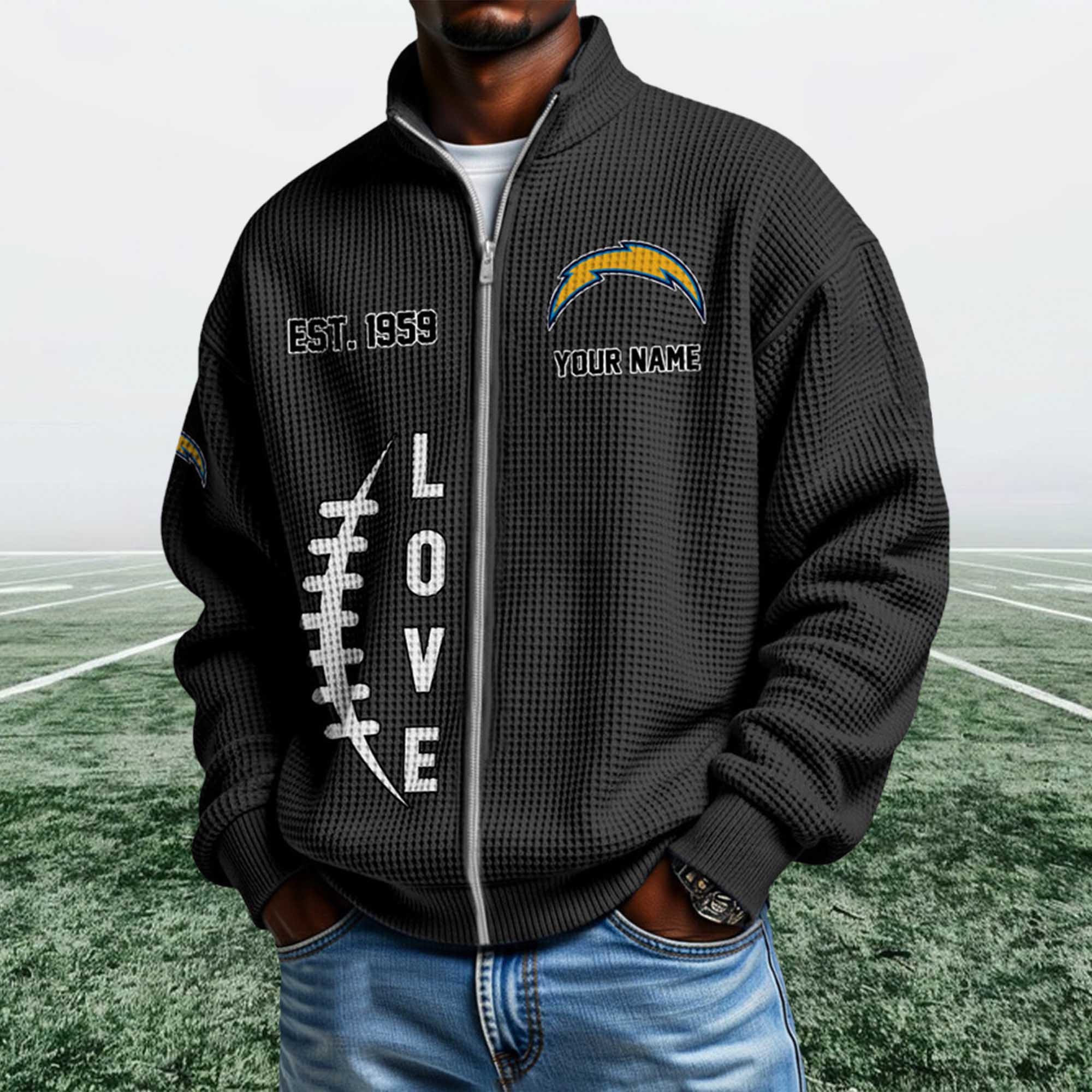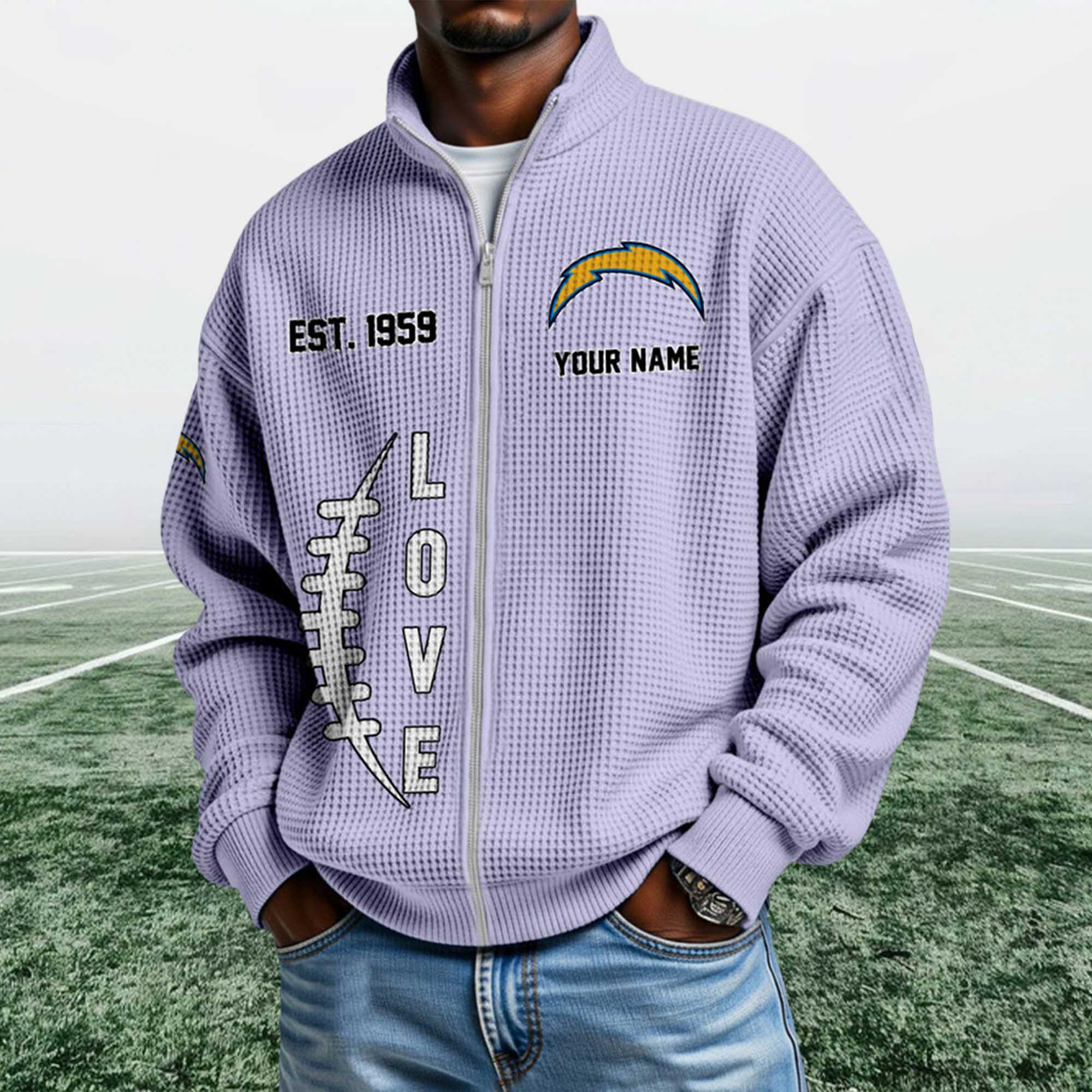 The Chargers EST 1959 Quarter Zip Waffle Sweatshirt reflects a strong shift in fan apparel toward heritage-focused designs that feel wearable every day. Fans are moving beyond basic hoodies and choosing textured, zip-neck sweatshirts that work across settings. This piece stands out with its waffle surface, founding-year detail, and clean Chargers lightning bolt logo.