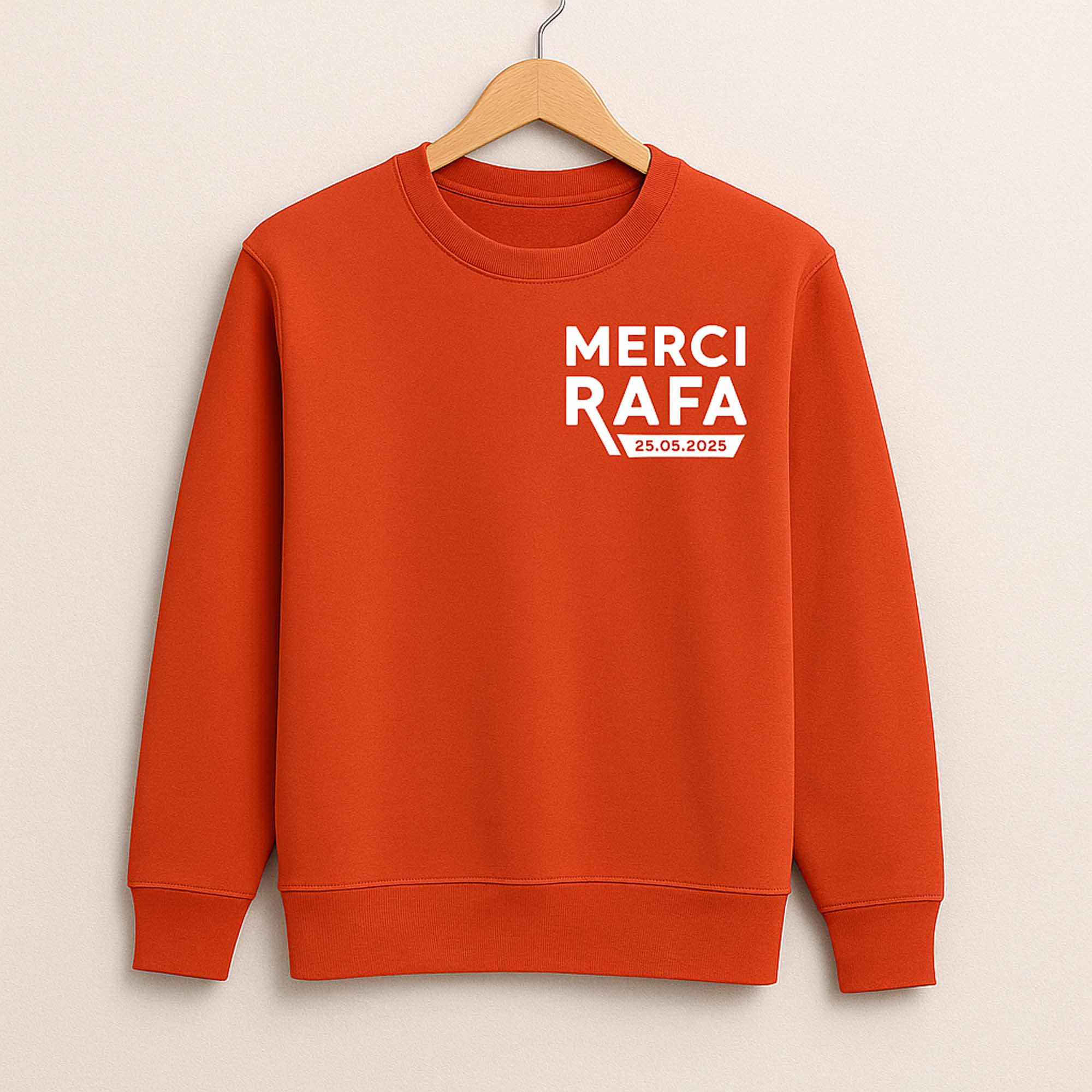 Prepare to be mesmerized by the bold orange canvas of the Chatrier Merci Rafa T-Shirt, which is printed with bold white text “MERCI RAFA” and the important date “25.05.2025” in a futuristic font. Elegantly placed on the left chest, this design attracts attention with its elegant lines and dynamic composition. This exciting beauty captures Nadal’s relentless spirit and the thrill of his farewell, making it a must-have for anyone craving a standout addition to their wardrobe.