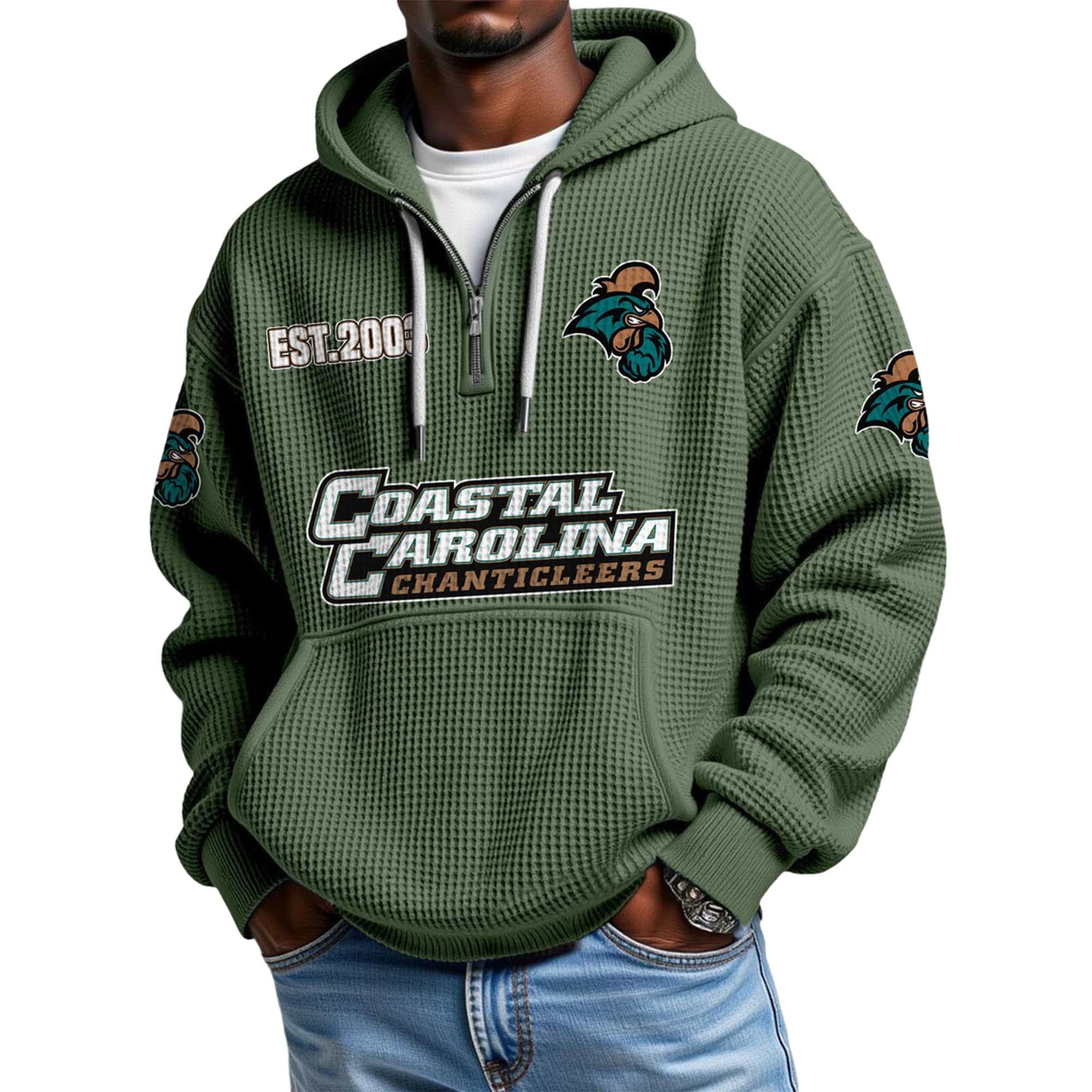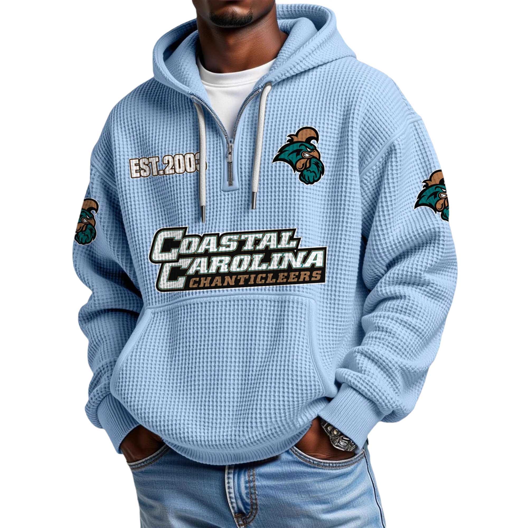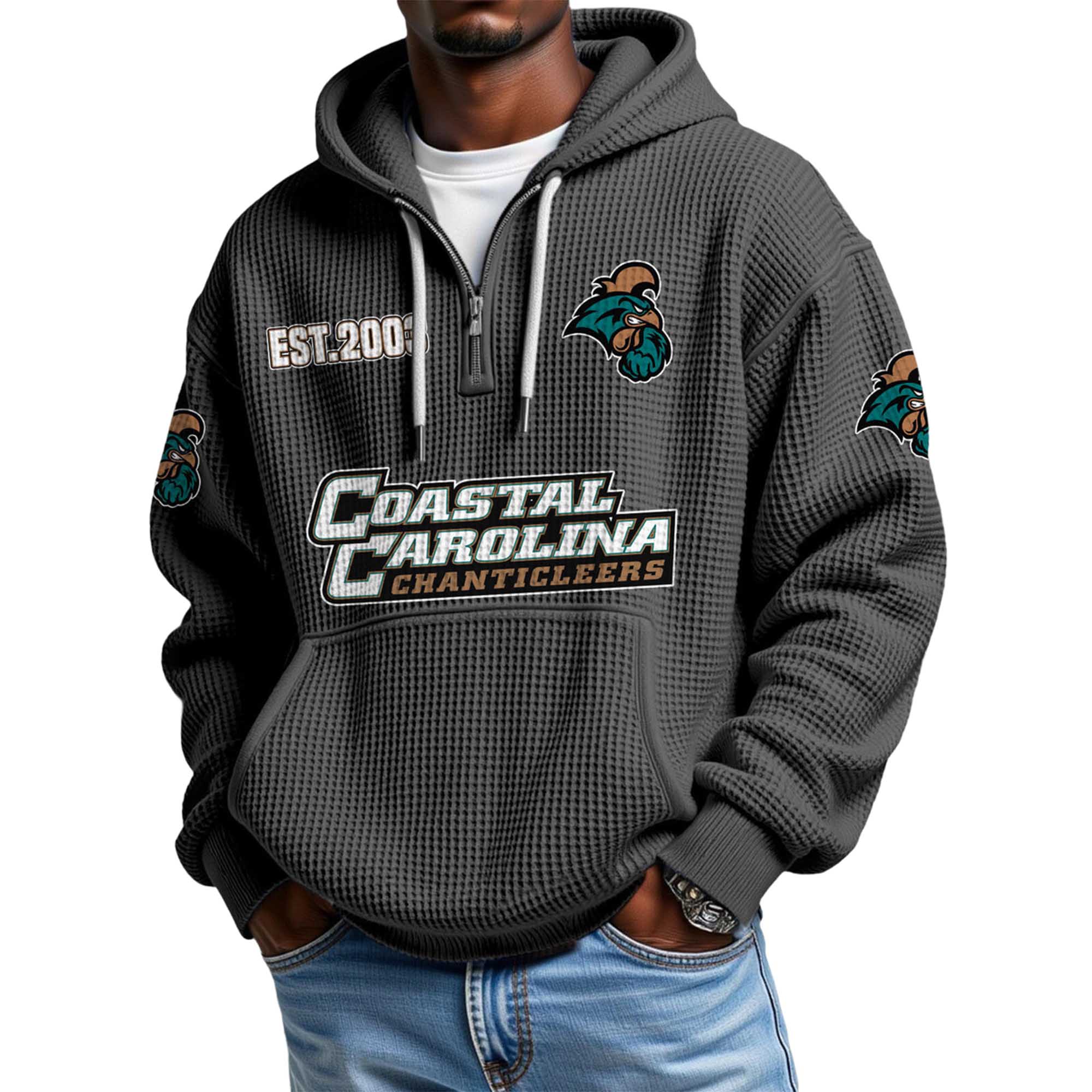 As Coastal Carolina University continues to thrive in the field of sports, apparel that reflects the university’s identity could attract lasting interest. The EST 2003 detail marks a specific era, while the waffle fabric and ¼ zip design give this hoodie lasting appeal. For fans and alumni, it has the potential to become a memorable item associated with school pride and the evolving campus culture.