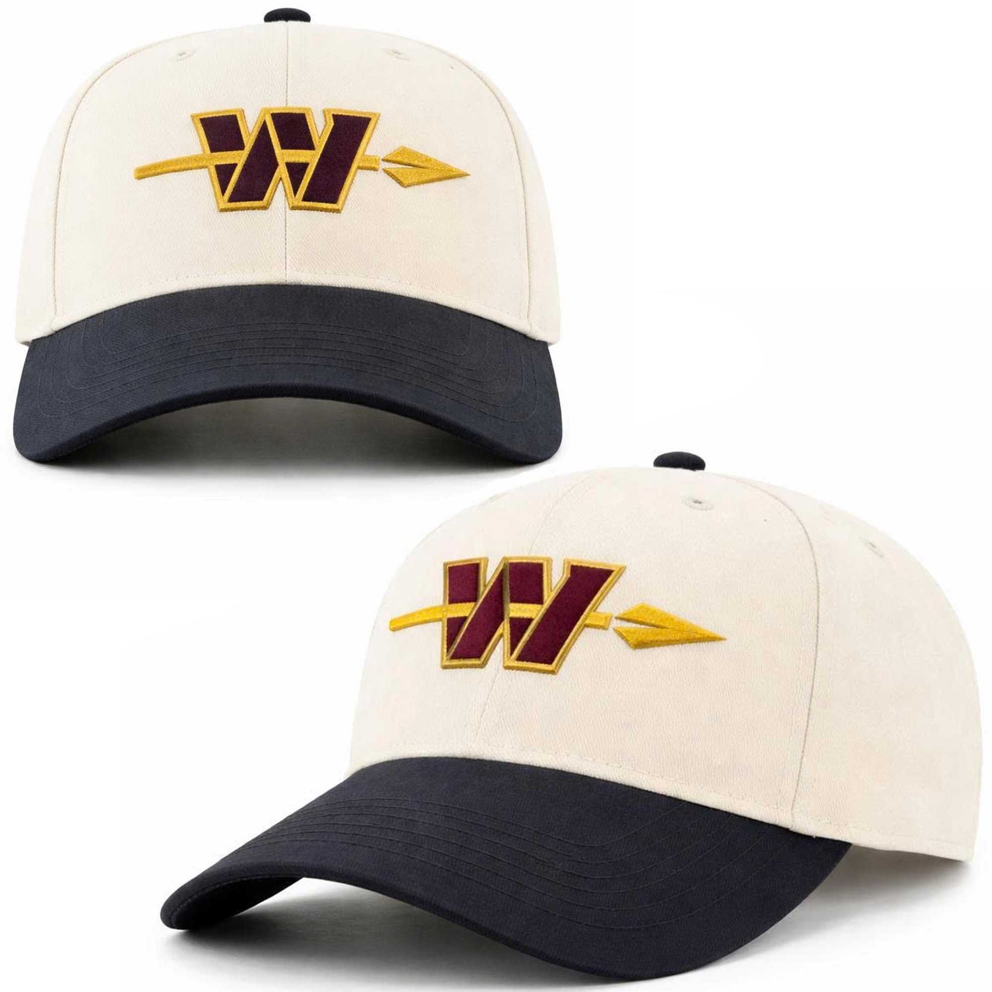 This cap stands out with its sophisticated color palette and sharp details. The cream-colored top offers a fresh, easy-to-match look, while the darker brim adds contrast and durability. The embroidered Commanders W logo, combined with the arrow detail, creates a strong visual identity. The curved brim provides sun protection, and the sturdy front design ensures the hat stays neat and stylish even after frequent use.