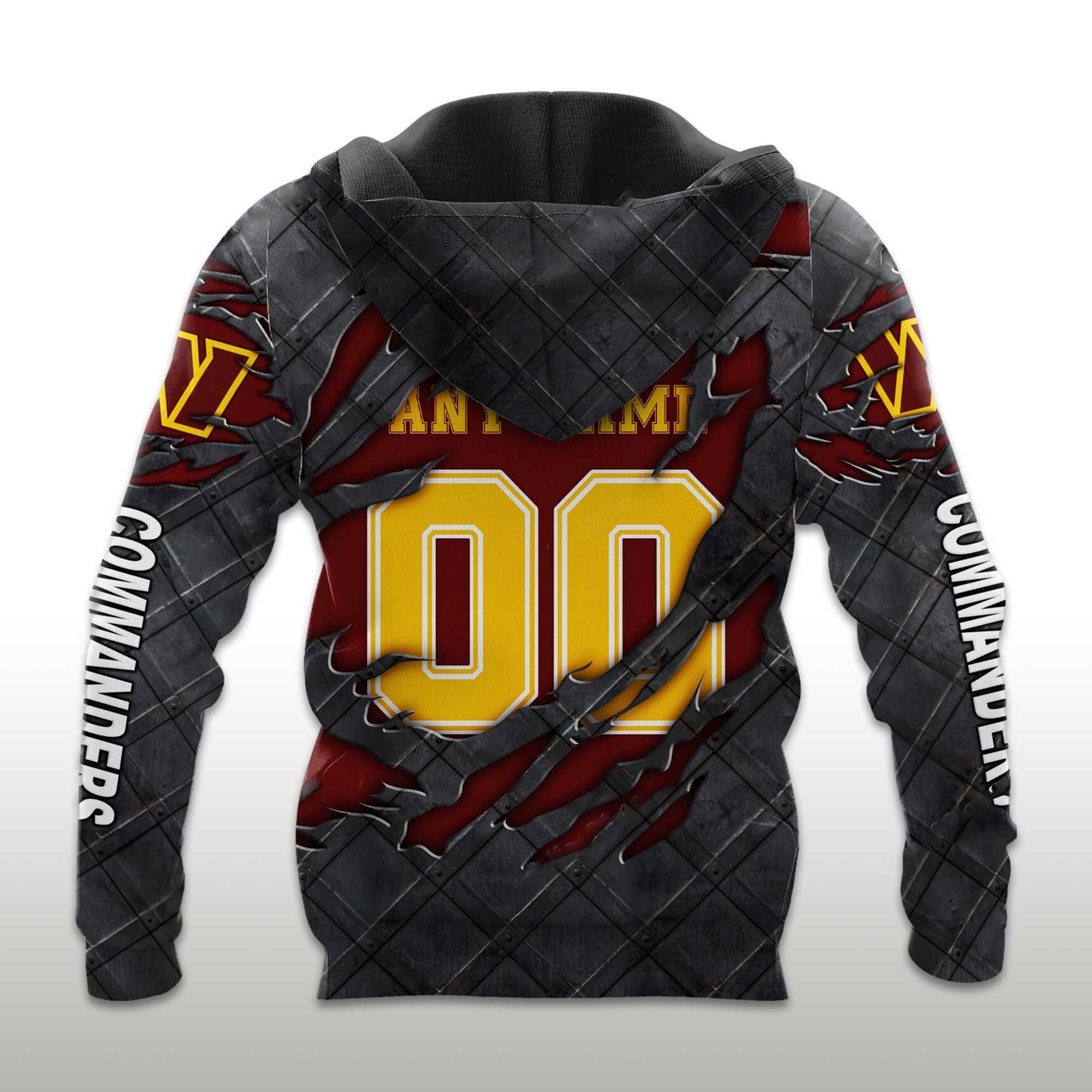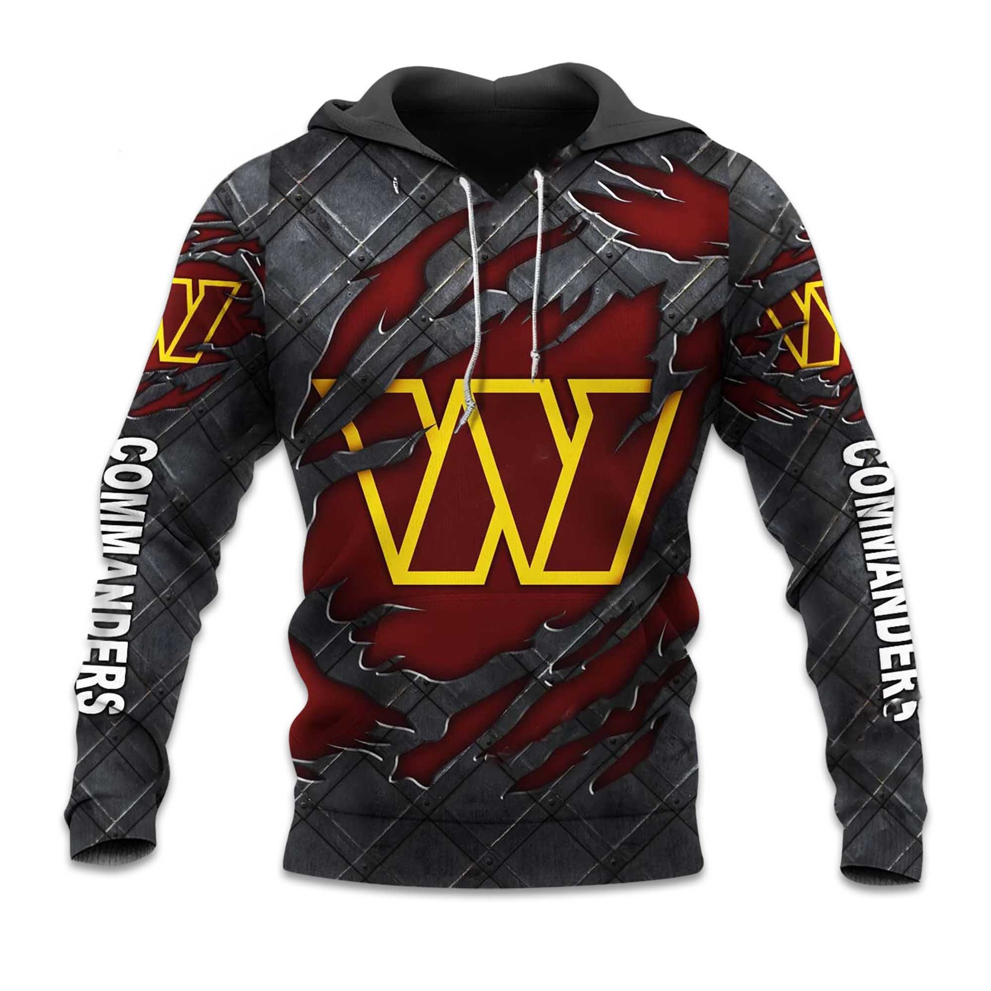The Commanders Black Metal Texture Hoodie is gaining significant attention thanks to its striking visual design. Inspired by cracked metal surfaces and industrial motifs, the design highlights strength and pride. Dark tones combined with red and gold details reflect power and determination, perfectly aligning with the current trend favoring fan apparel that expresses individuality and fearlessness.