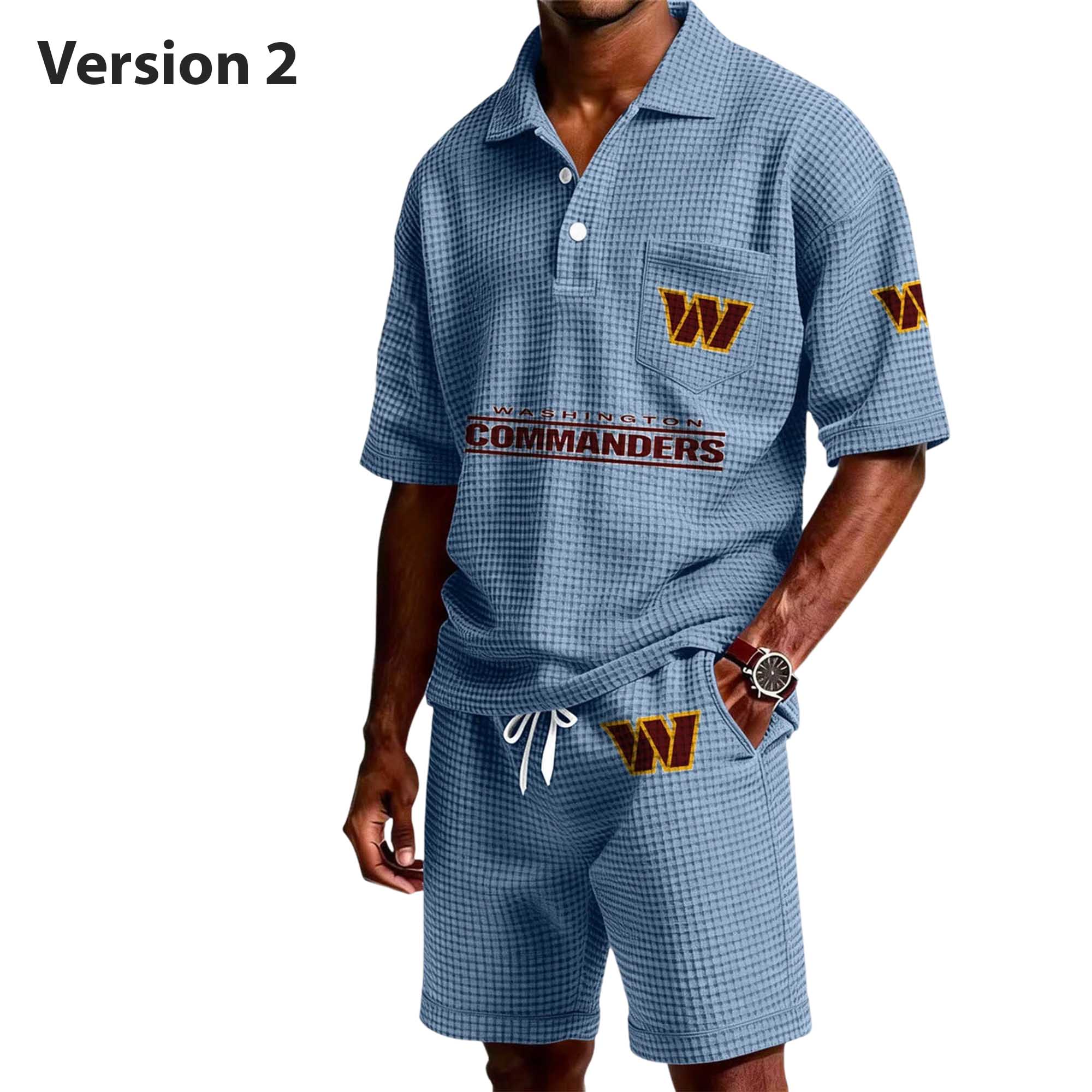 The Commanders EST 1932 Waffle Shirt Set offers a comfortable, breathable feel thanks to its waffle-textured fabric. The polo shirt creates a neat, slightly structured look, while the adjustable drawstring shorts offer a comfortable and versatile fit. Lightweight and easy to wear, this outfit keeps you cool on warmer days and comfortable in everyday moments, making it a reliable choice for daily wear.