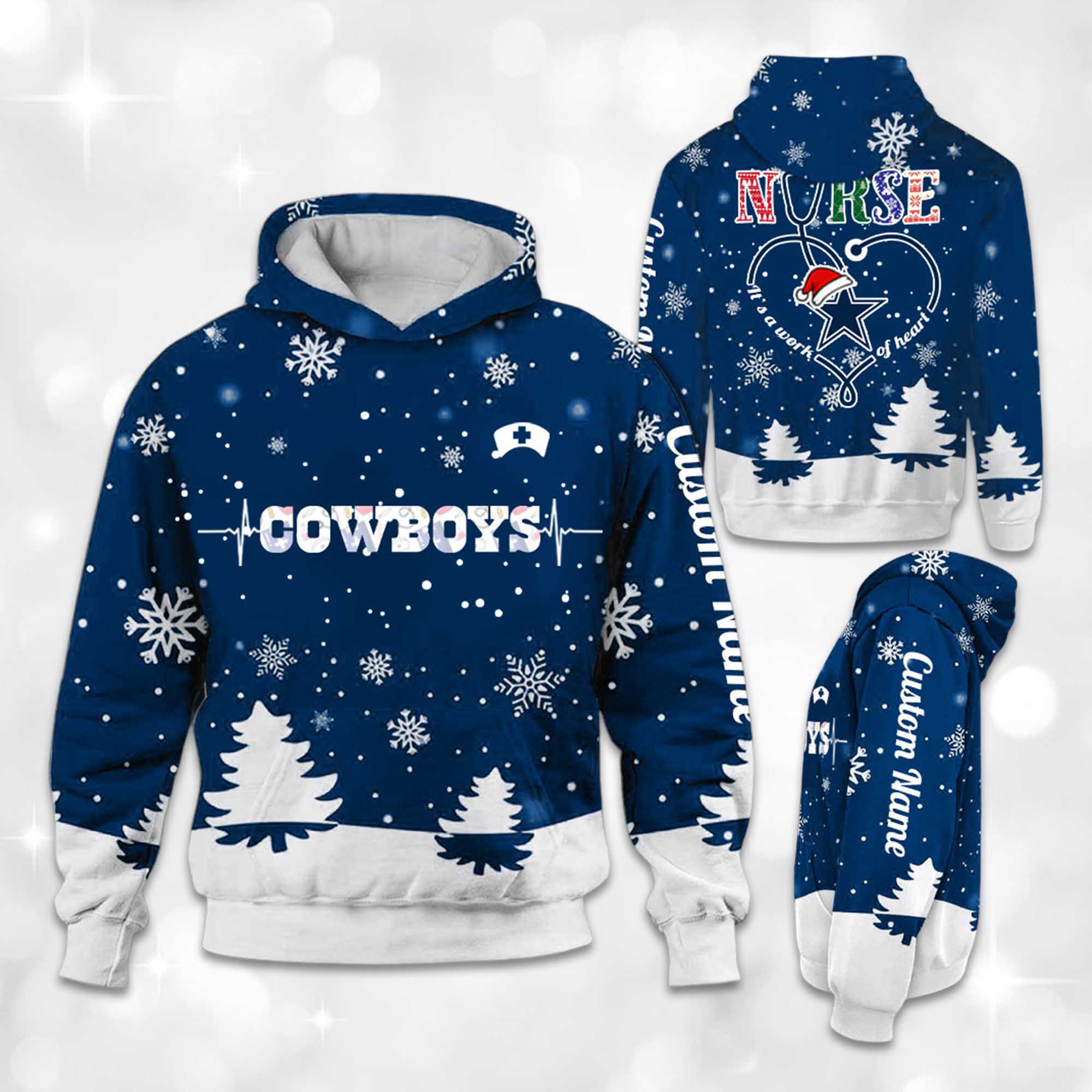 Cowboys x Nurse Christmas Football Hoodie – Where Holiday Joy Meets Team Pride