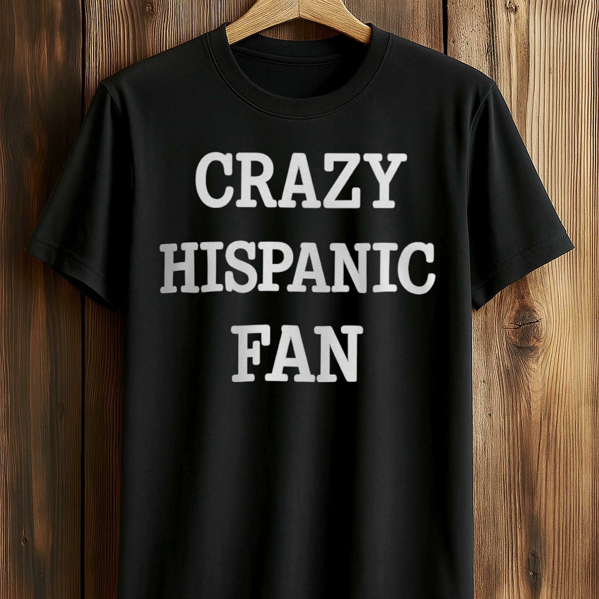 Recently, the phrase Crazy Hispanic Fan has been trending on social media and in the streetwear community. It’s a phrase that blends humor, pride, and confidence in a genuine and relatable way. The Crazy Hispanic Fan Shirt in the image keeps things simple with bold white lettering on a black background, easy to see and easy to wear. It’s becoming a top choice for fashion lovers who want to express their individuality.