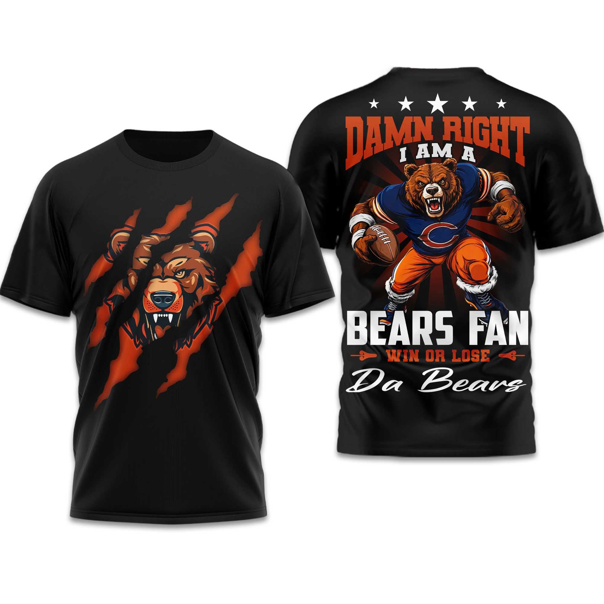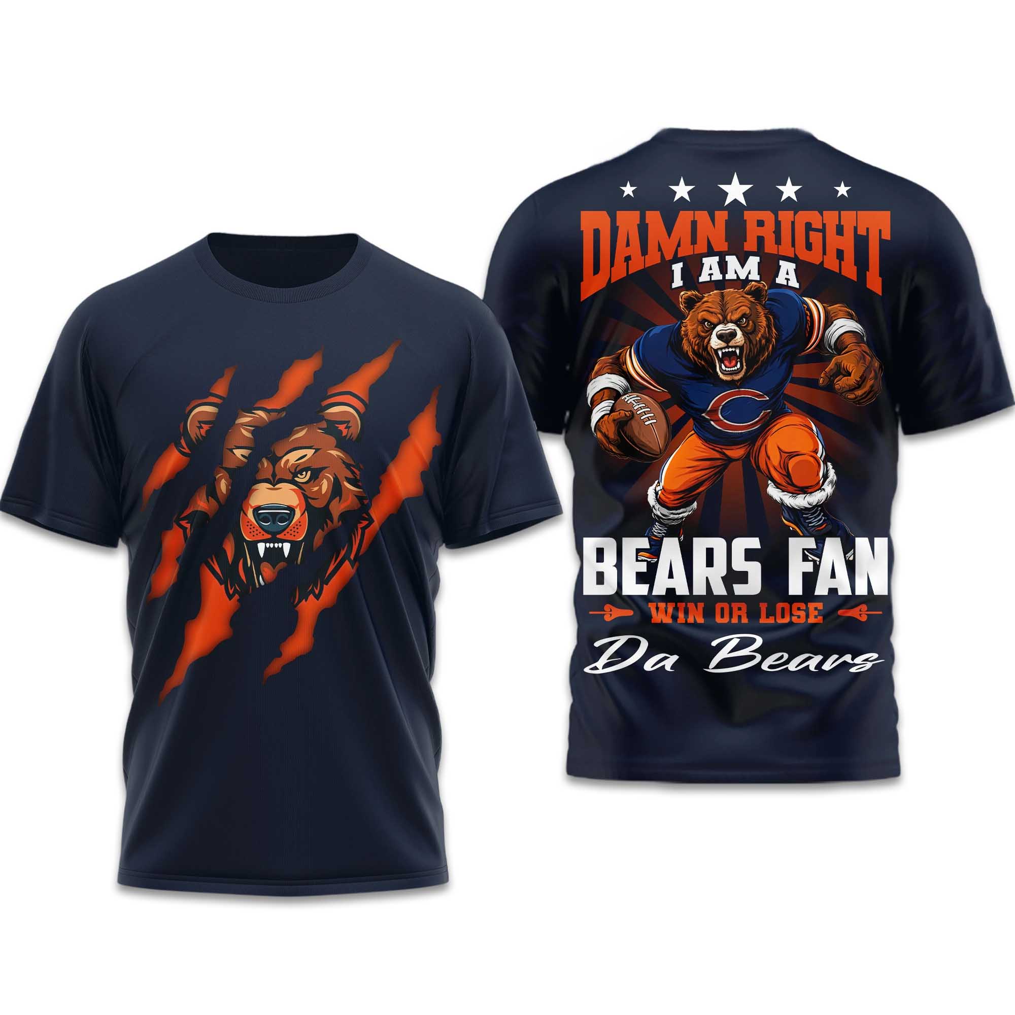 “Damn Right I Am A Bears Fan Win Or Lose Da Bears” T-shirt – Show your loyalty proudly