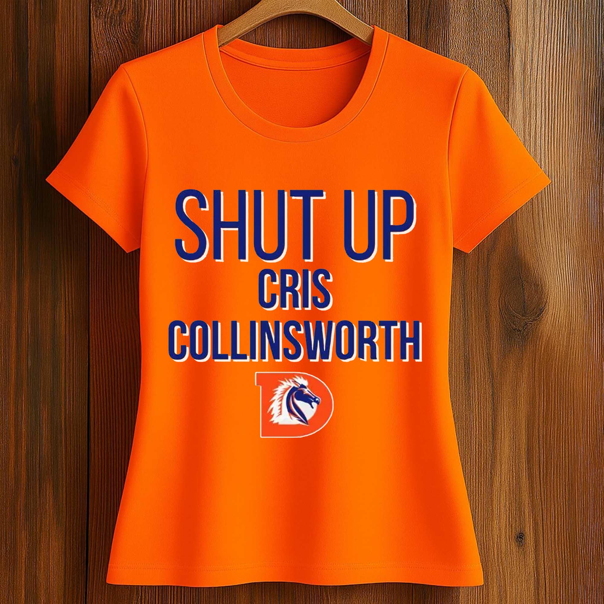 The Denver Shut Up Cris Collinsworth Shirt is gaining traction as Broncos supporters look for a fun, easygoing way to express their passion. The phrase has become a running joke among fans who love to react to memorable moments of discovery. Paired with Denver’s vibrant orange and bold typography, the Shirt stands out as a fun and energetic choice for gameday attire.
