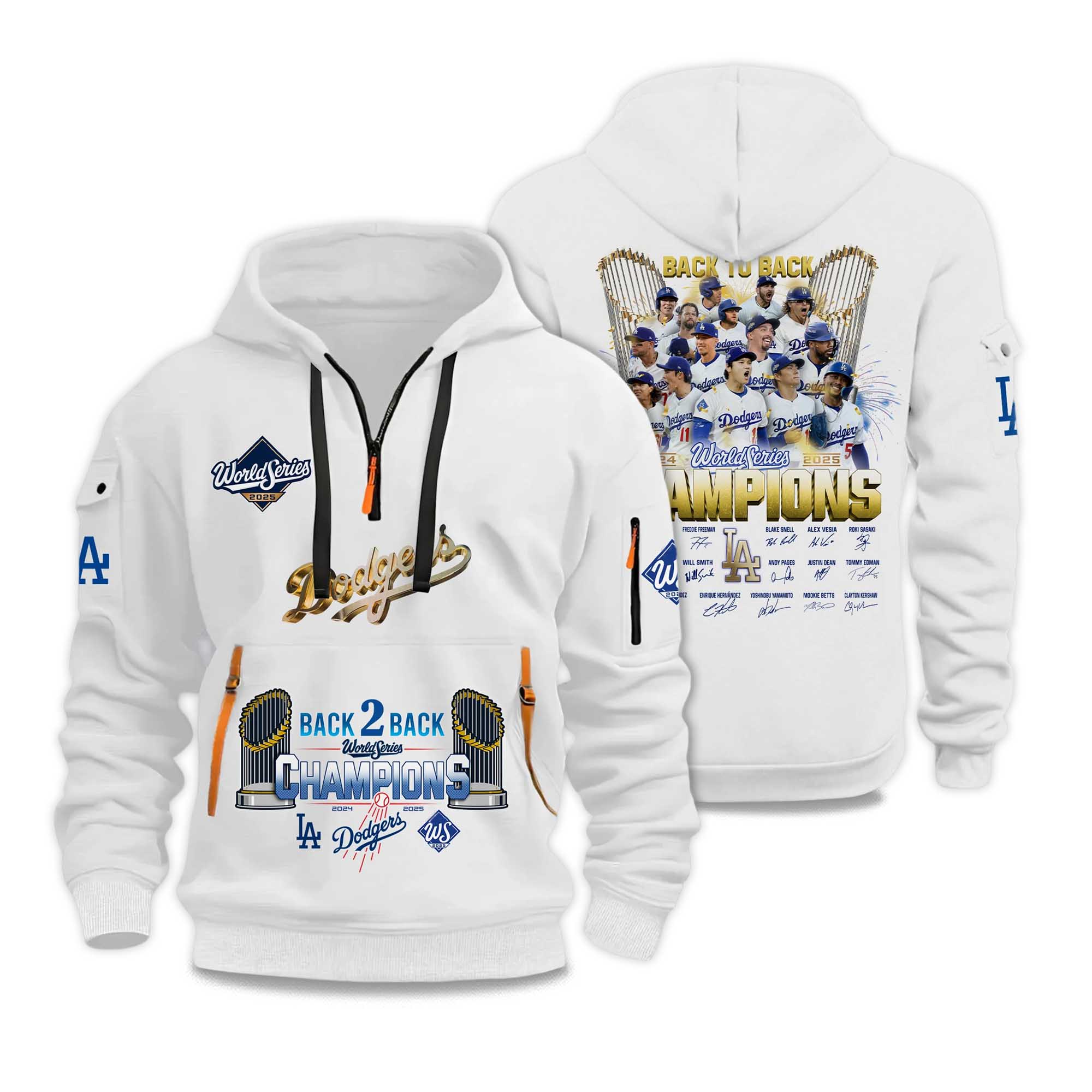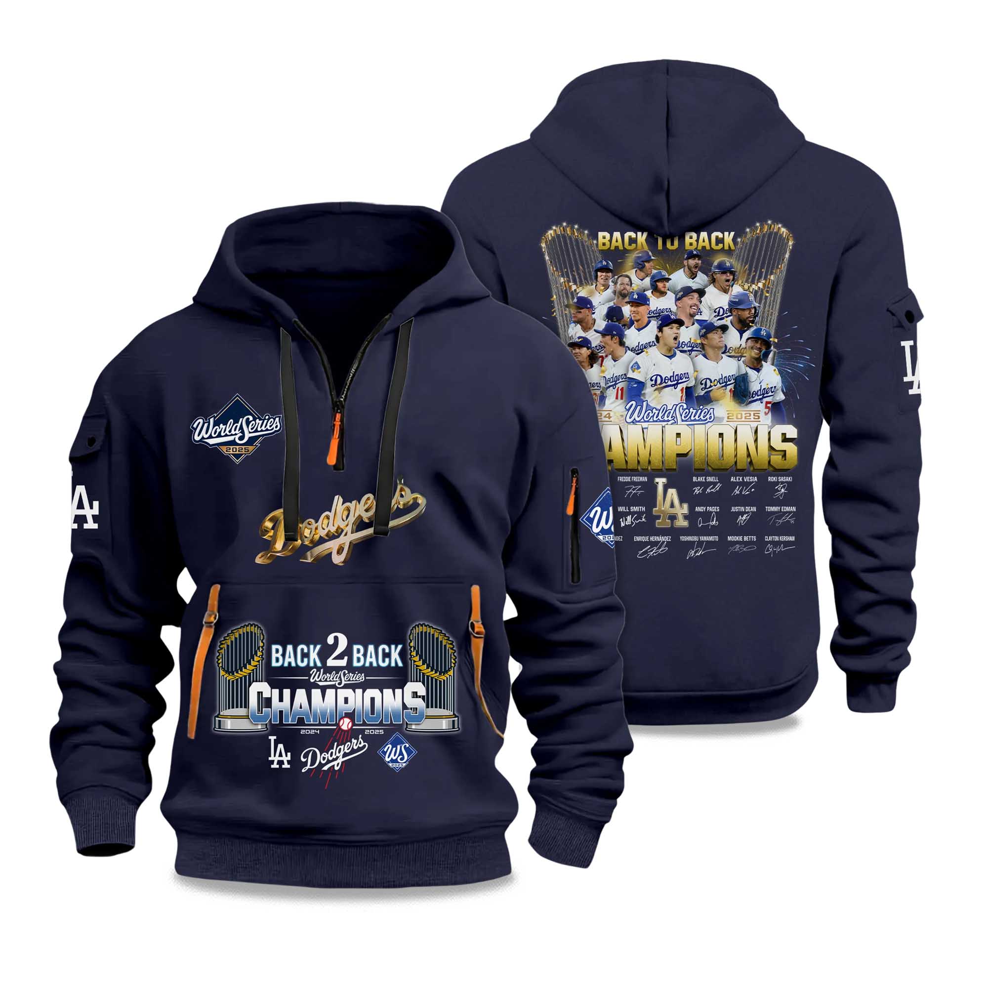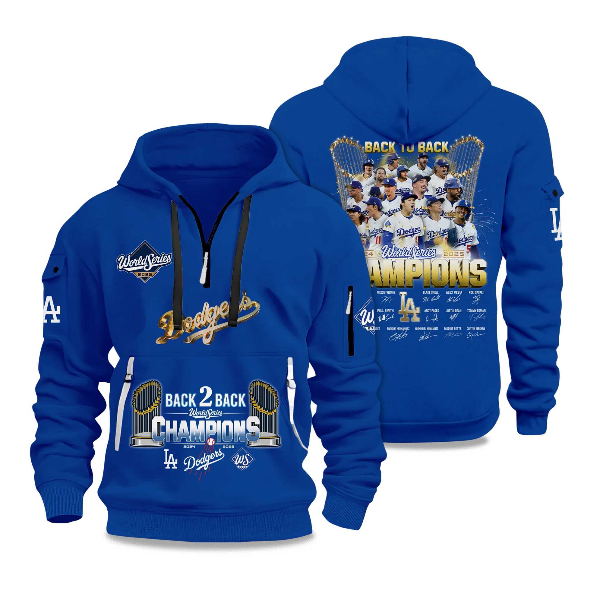 Dodgers Back To Back World Series Champions 2025 Quarter Zip Hoodie marks two years of absolute dominance. After historic victories in 2024 and 2025, the Dodgers once again showed why they were built for greatness. This hoodie is designed to capture that unstoppable energy bold graphics, championship details, and unmistakable Los Angeles pride. Every time you zip it up, you’ll remember that legends wear blue.