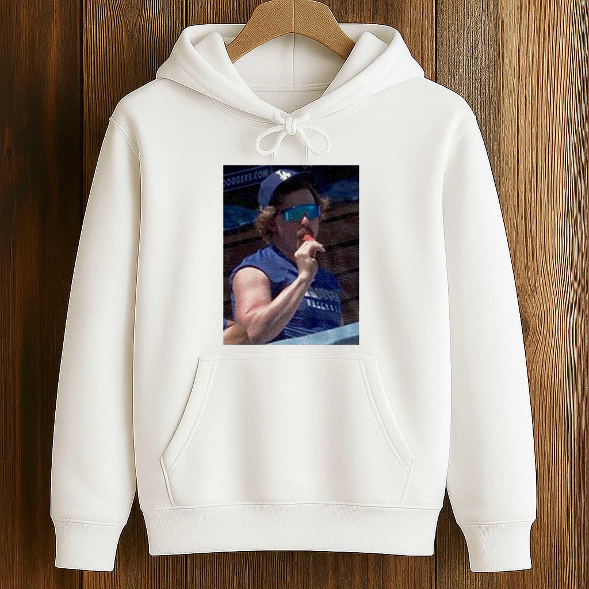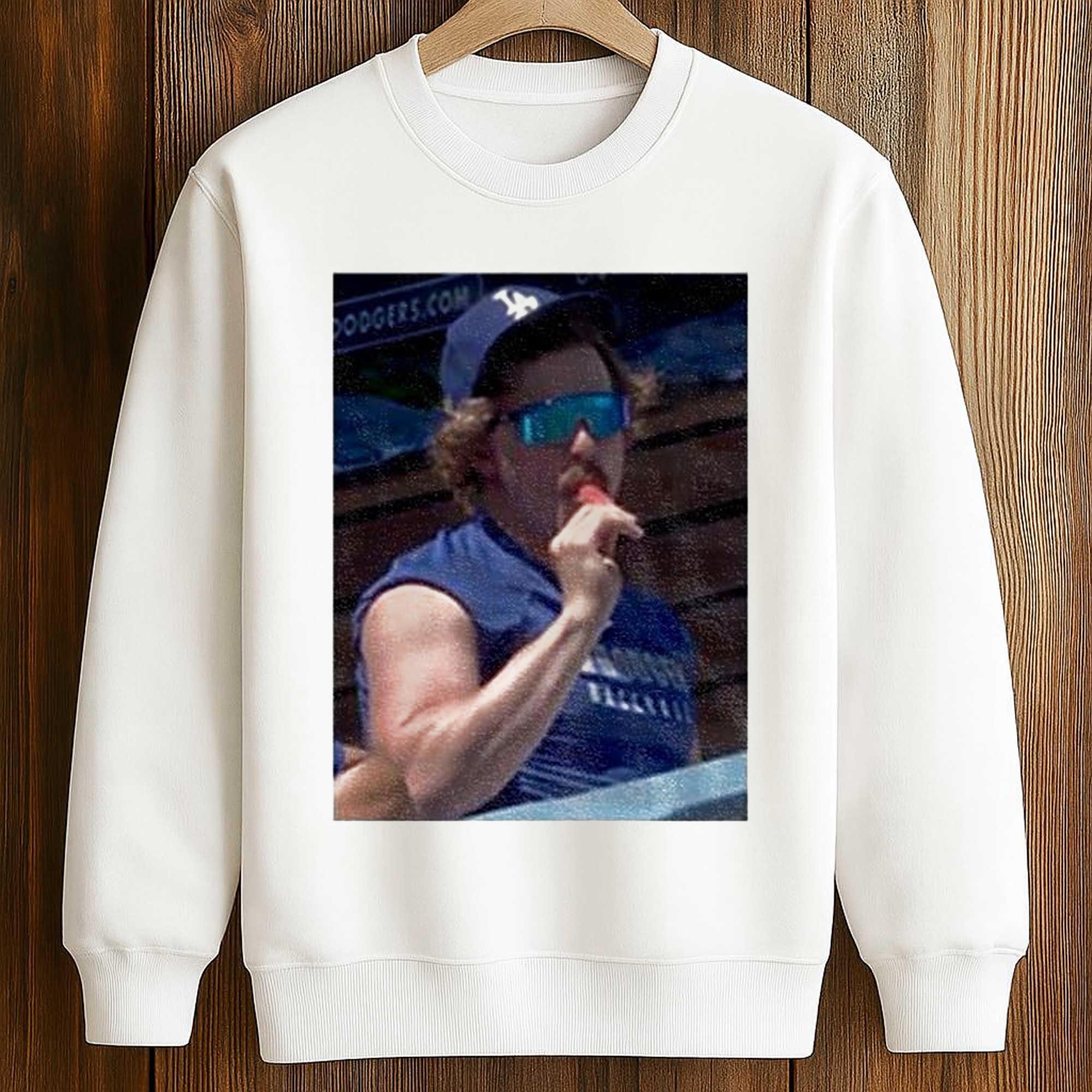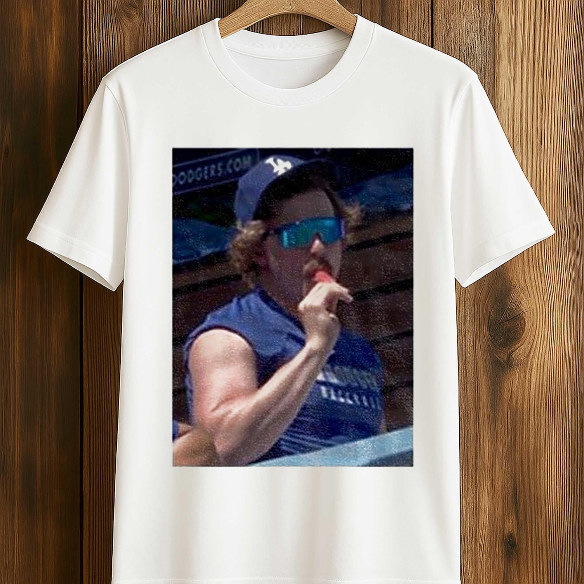 The Dodgers Kike Hernandez Popsicle Shirt features a humorous image in the dugout, with a player enjoying an ice cream cone, turning a simple moment into an iconic image. The image exudes summer charm, easygoing confidence, and team spirit – perfect for fans who love the fun side of baseball culture.