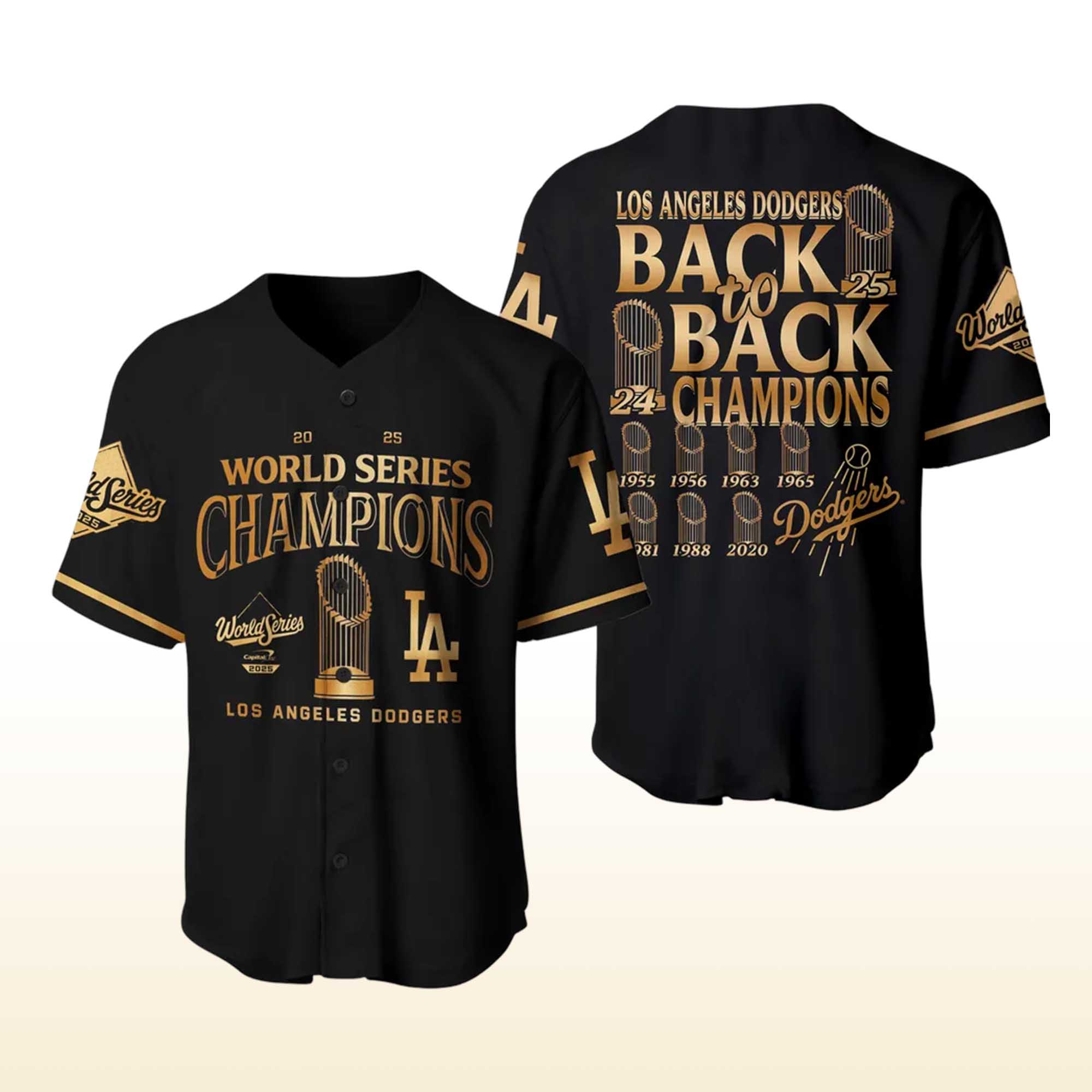 The Dodgers capped off a memorable 2025 postseason run with their second consecutive World Series championship defeating the Toronto Blue Jays in a classic Game 7, 5-4 in overtime. That victory made the club the first to win back-to-back championships since 2000 and propelled the team to new heights. This Dodgers World Series Champions 2025 Gold Baseball Jersey celebrates that moment: a way for fans to bring the energy, pride, and memories of that season into their everyday wear.