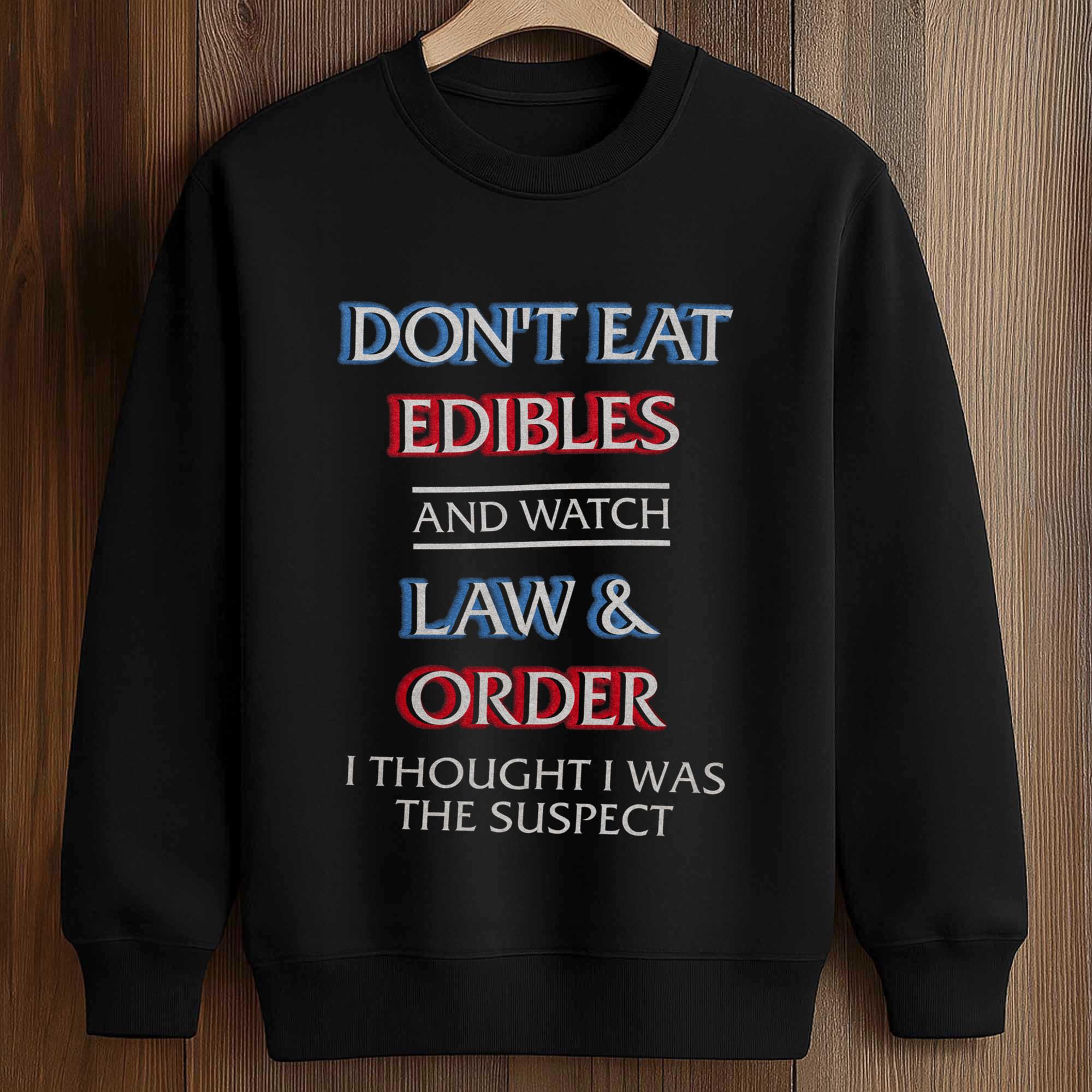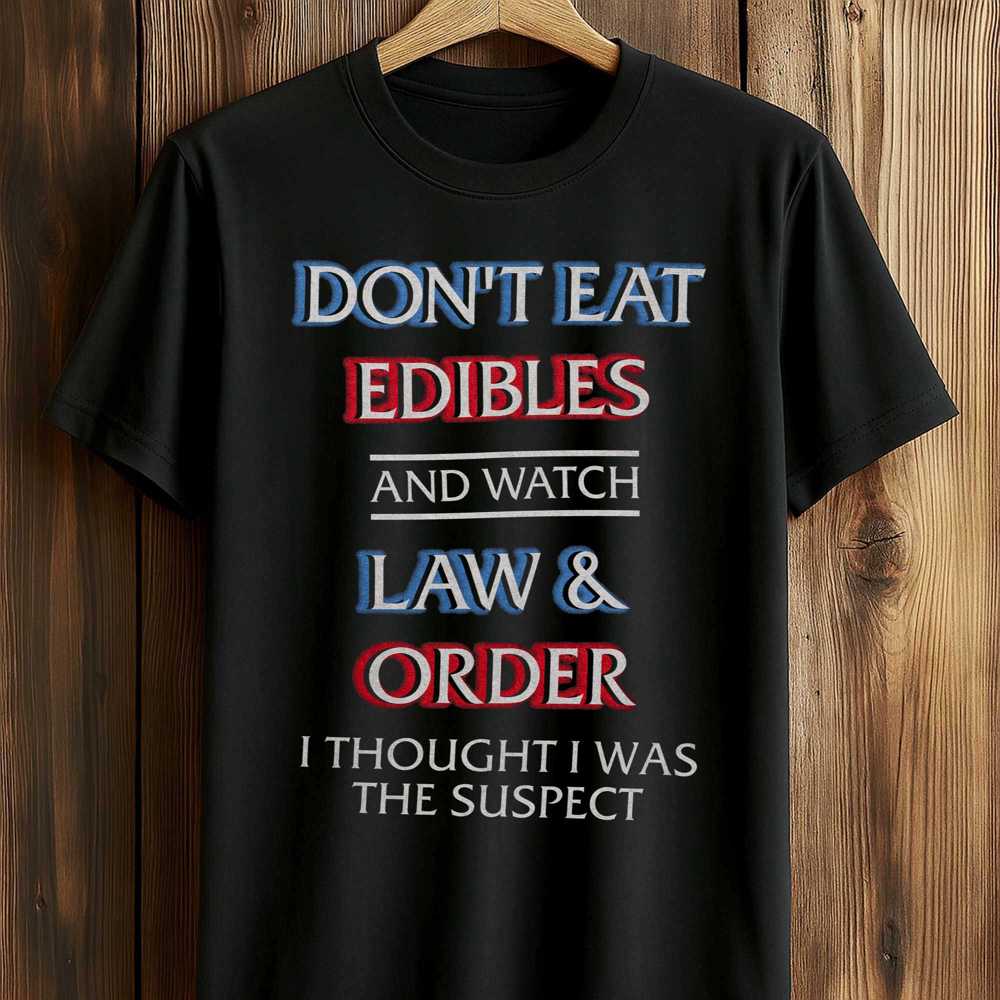 T-shirt “Don’t Eat Marijuana and Watch Law Order – I Thought I Was the Suspect” – Hilarious T-shirt for crime movie fans