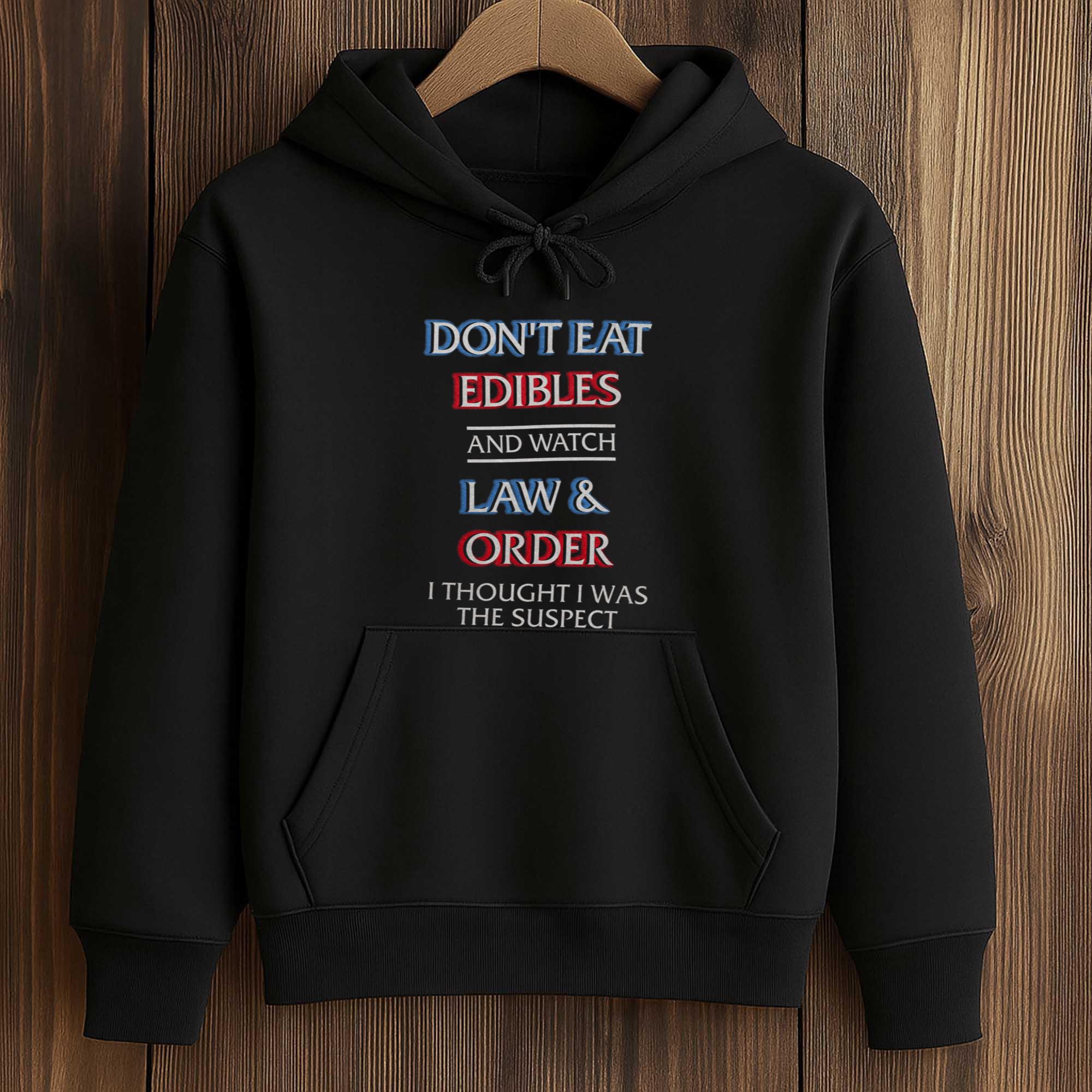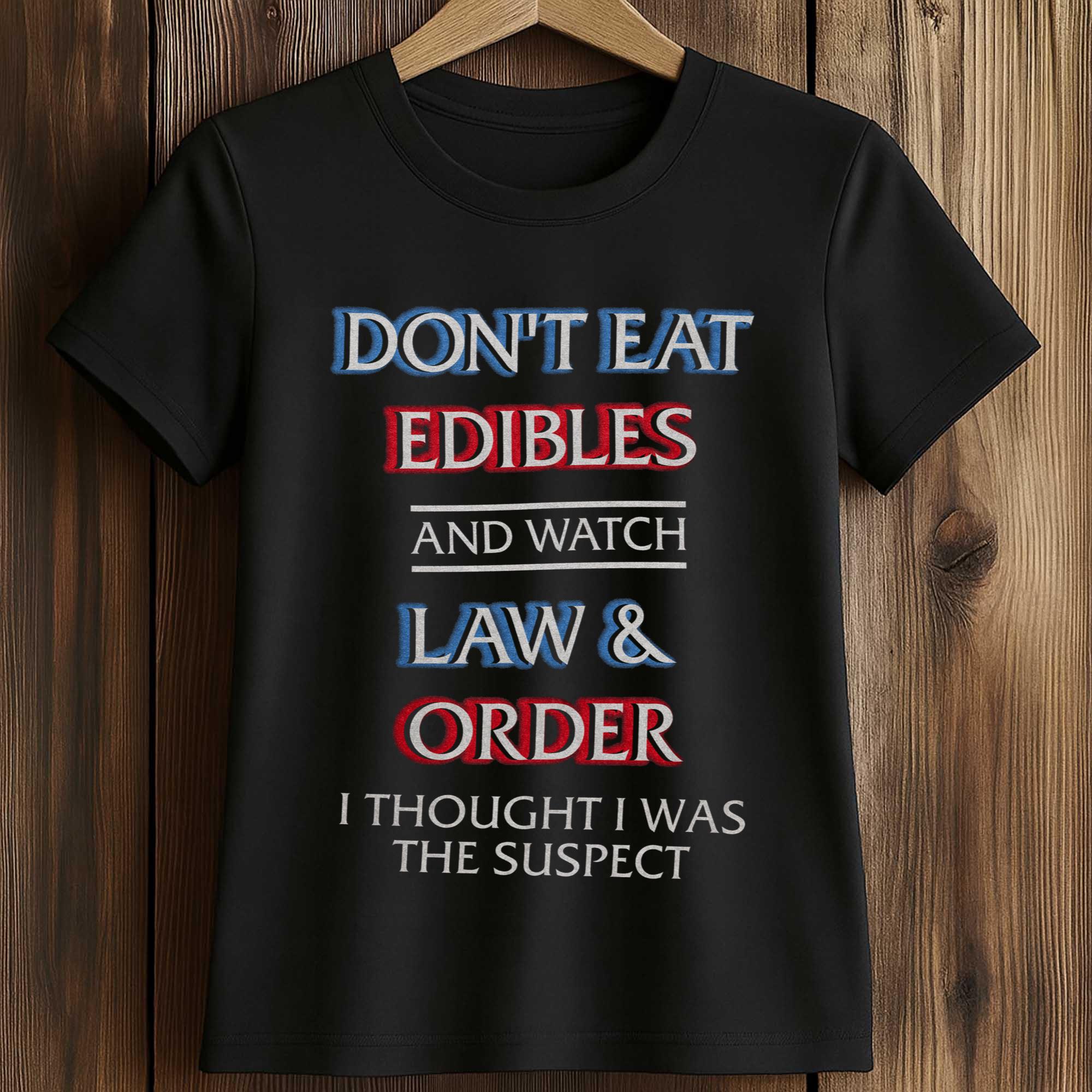The Don’t Eat Edibles And Watch Law Order I Thought I Was The Suspect Shirt captures a moment that many crime movie fans can relate to. Watching thrilling detective stories can make viewers feel like they are part of the investigation, and this witty quote turns that feeling into a clever joke. With its bold typography and striking style, this shirt quickly grabs attention and sparks conversation among friends who enjoy humor and classic crime films.