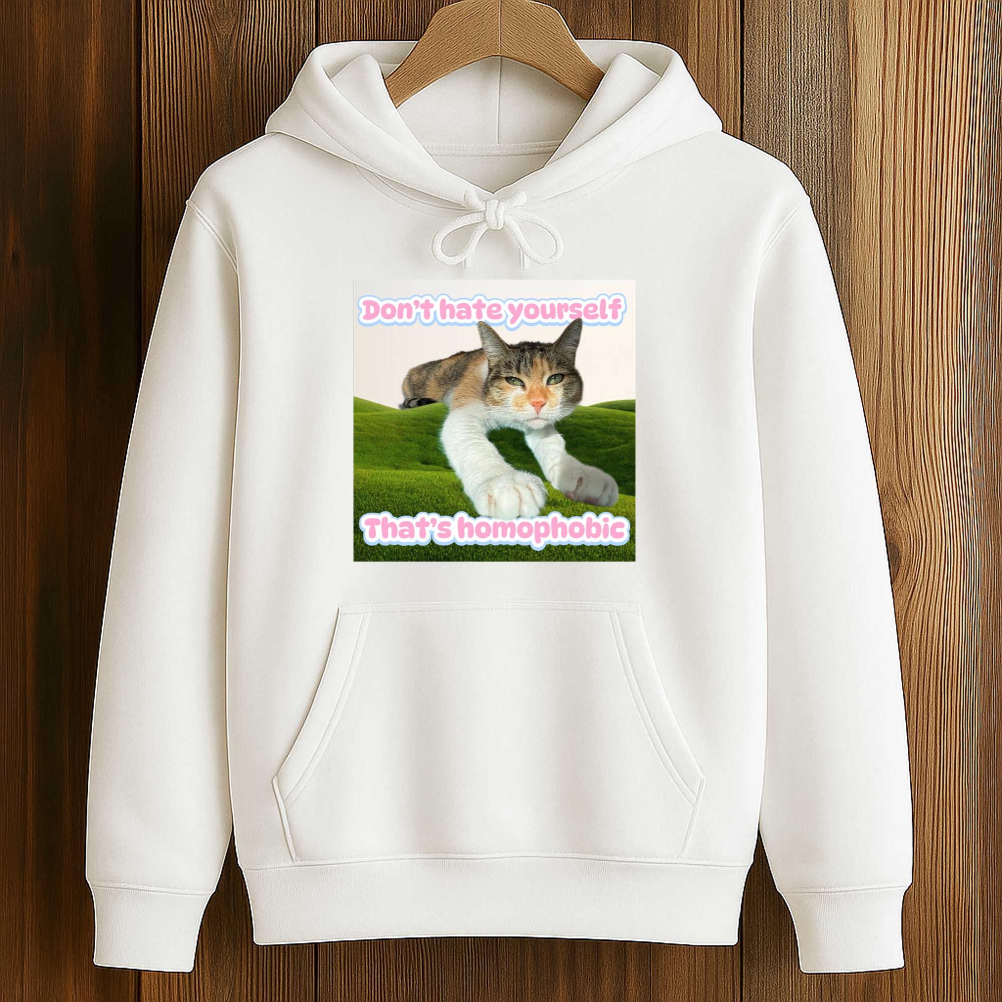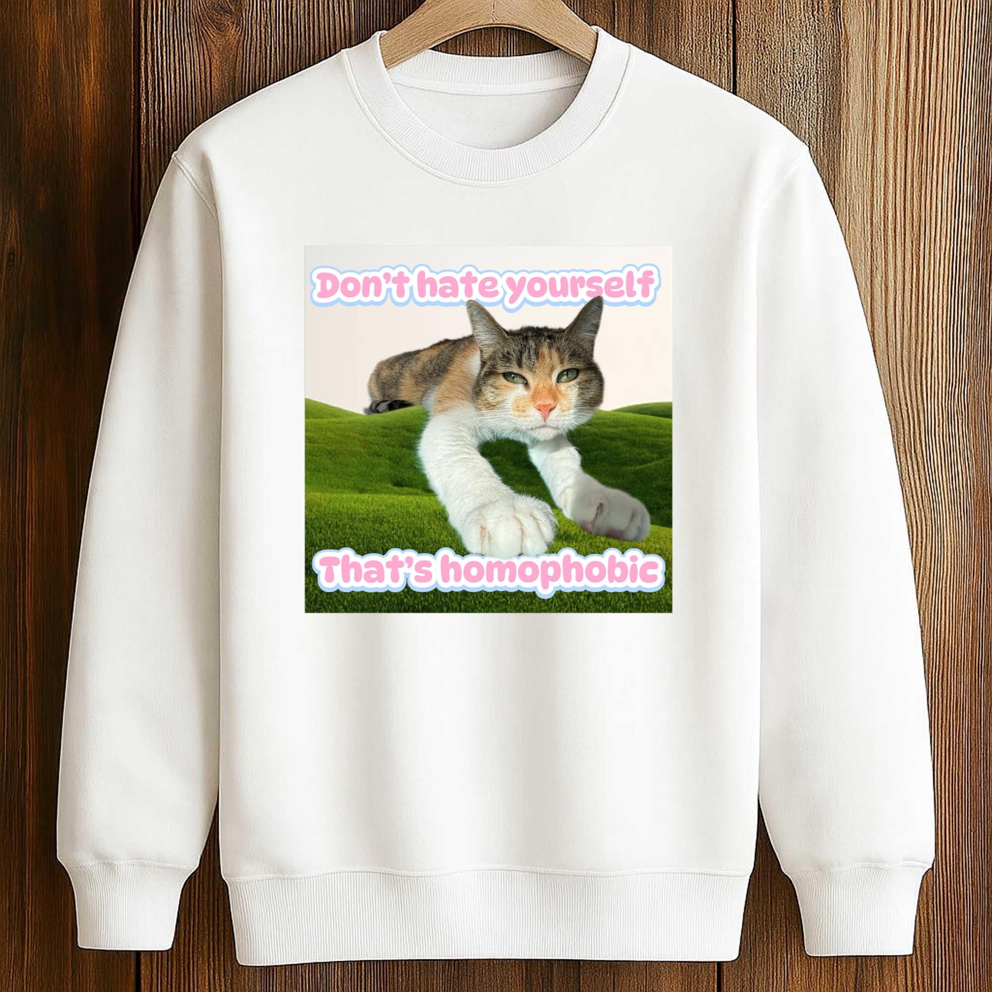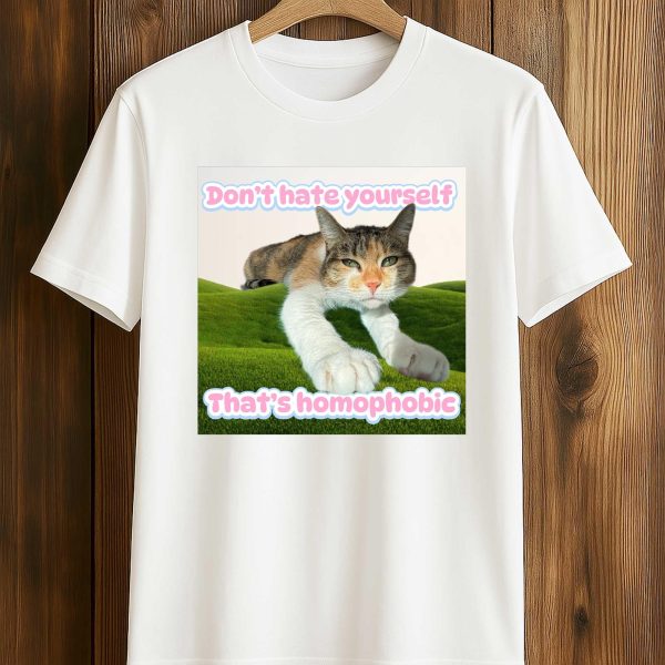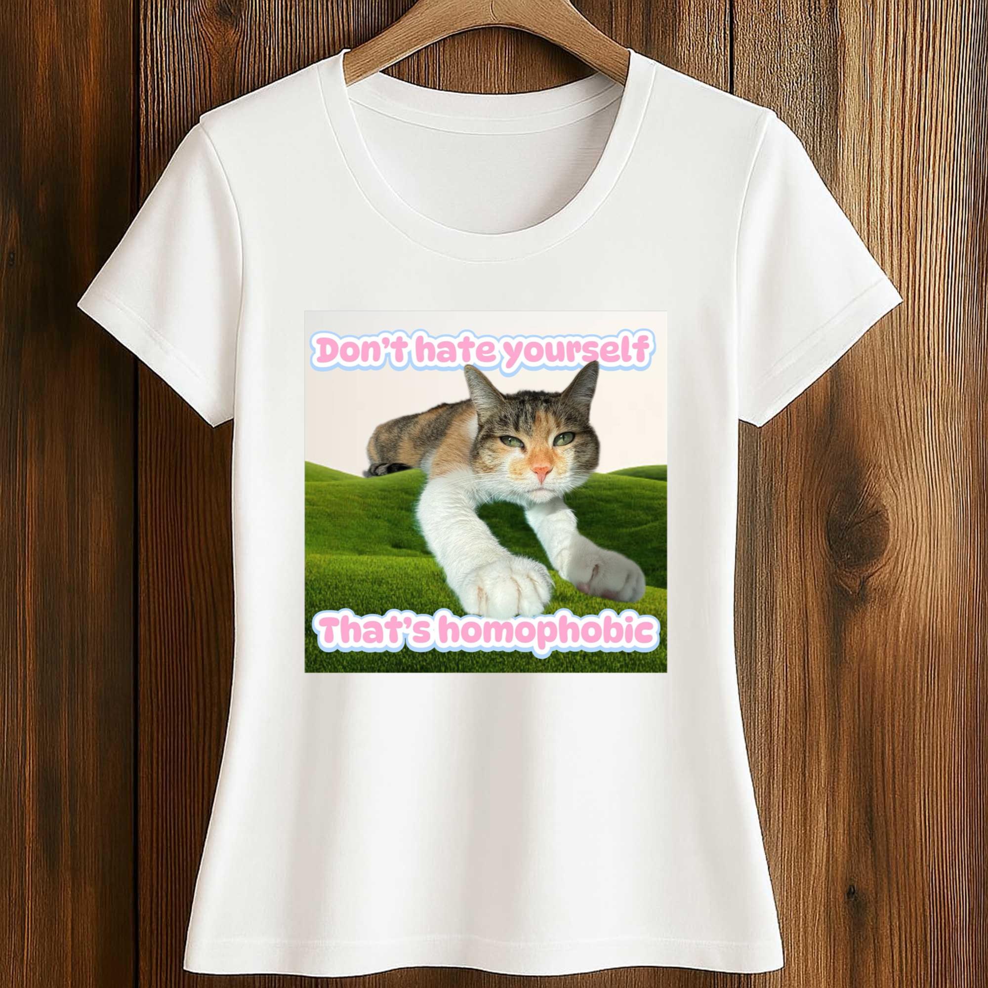 Don’t Hate Yourself That’s Homophobic T-Shirt – Humor, Positivity, and Cat Energy in One Shirt