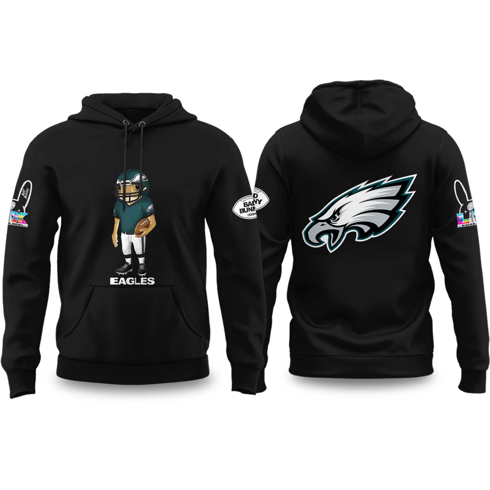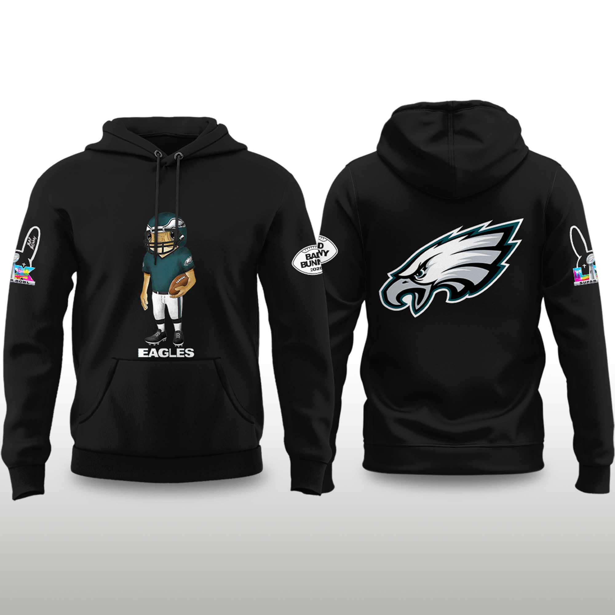 The Eagles Bad Bunny 2026 Super Bowl Concho Football Hoodie features a clean black background that lets the graphic stand out. The character-style soccer graphic on the front adds personality, while the iconic Eagles logo on the back showcases the team’s unmistakable pride. Designed for comfort and ease of movement, this hoodie naturally fits into soccer season activities and everyday street style.