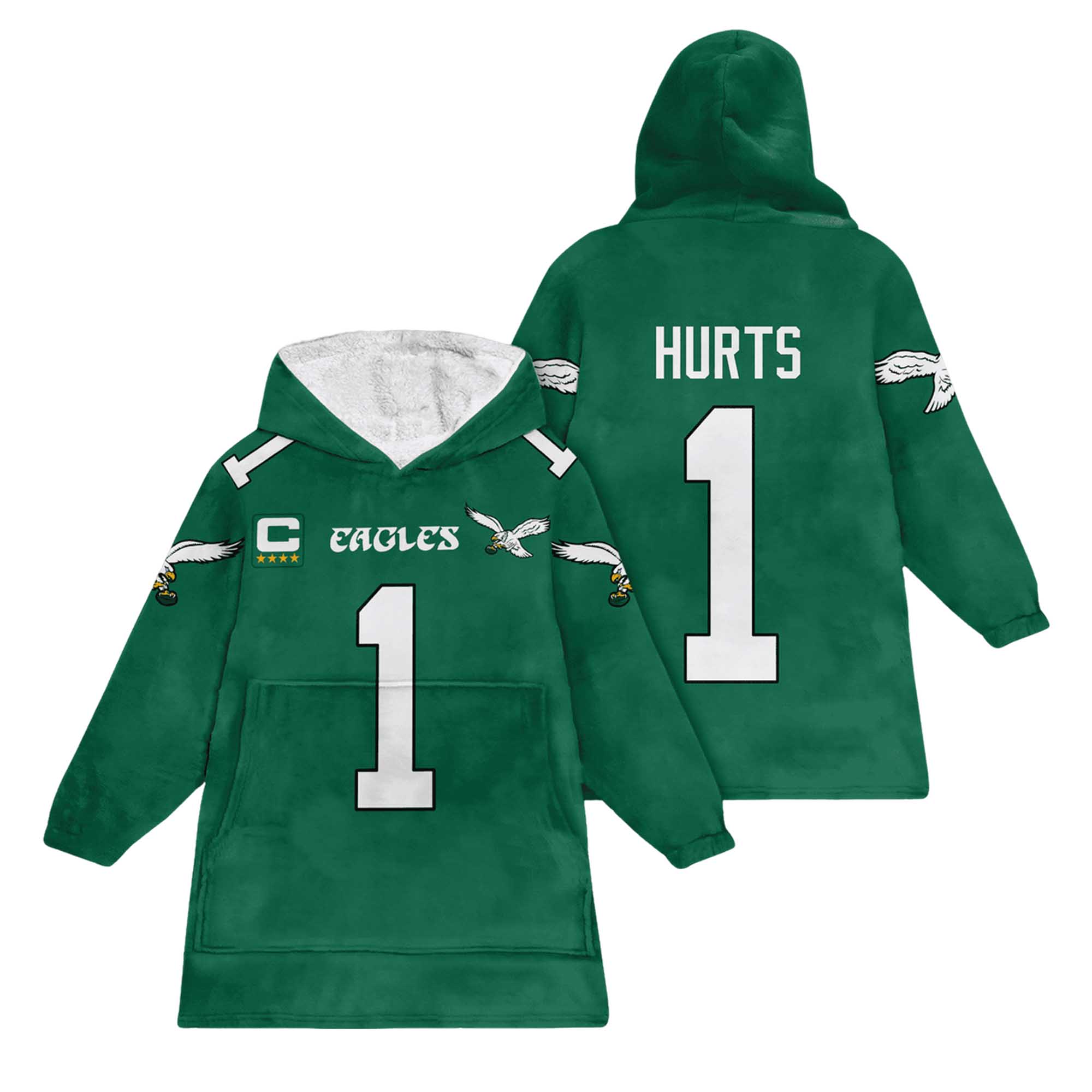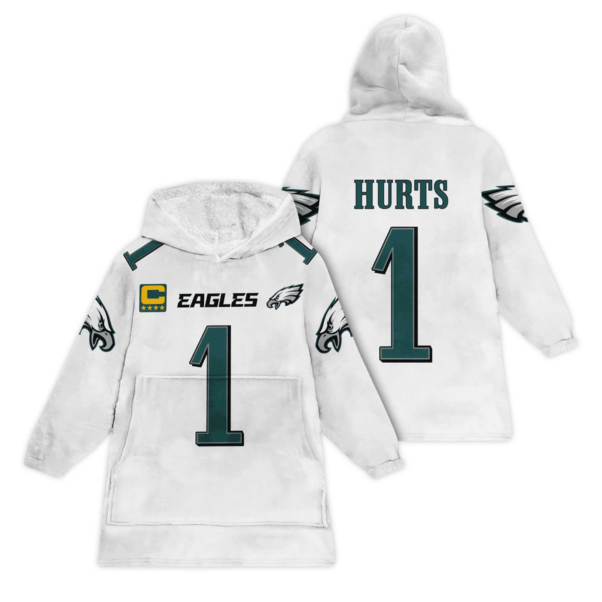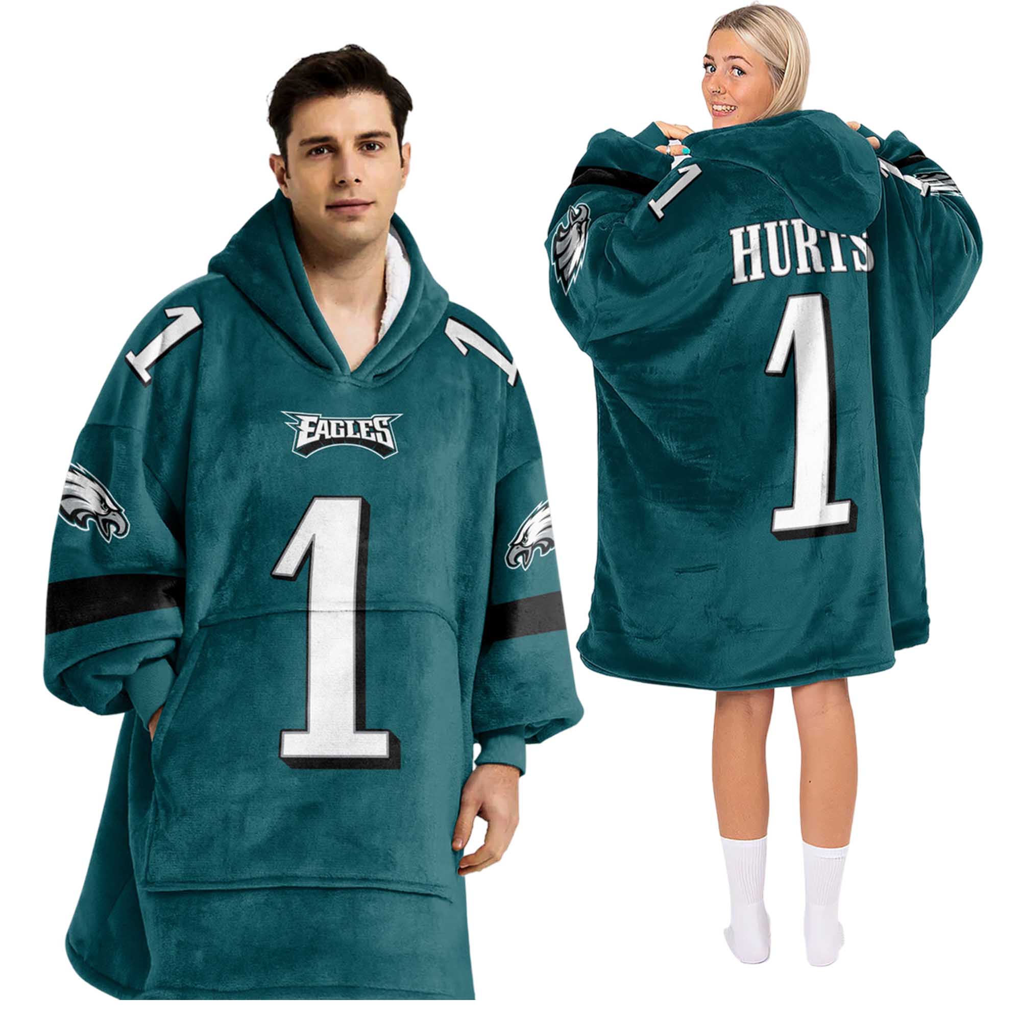 The latest fan-favorite fleece Eagles Jalen Hurts 1 Football Blanket Hoodie, inspired by Jalen Hurts, has been a standout this season. With an upgraded inner fleece, crisp stitching, team colors, and improved durability, this version delivers comfort and team pride. Fans are praising its warmth during chilly outdoor barbecues and its eye-catching Eagles graphics that reflect the energy on the field.