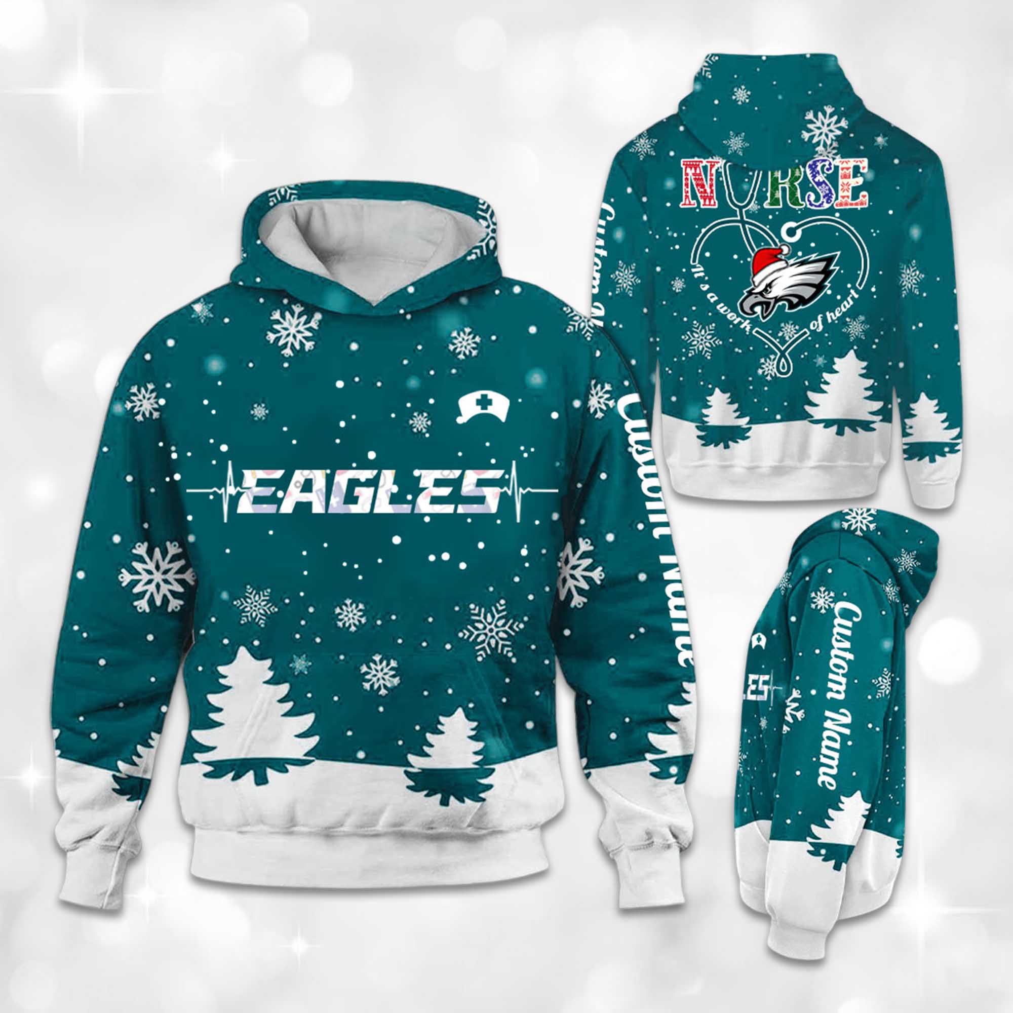 Eagles x Nurse Christmas Soccer Hoodie – Holiday Spirit with Heart and Team Pride
