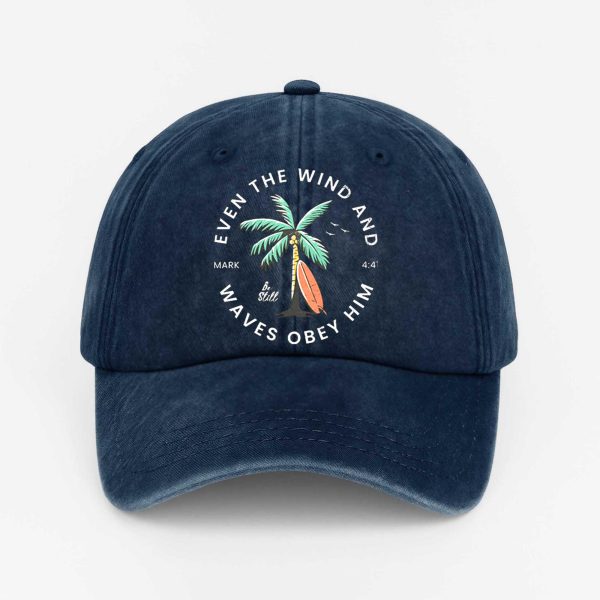 The Even The Wind And Waves Obey Him Hat is a trendy accessory that embodies the spirit of the ocean. As shown in the picture, this black hat features a beach-inspired design, making it a favorite among surfers, beachgoers, and anyone who loves a laid-back, spiritual feel.