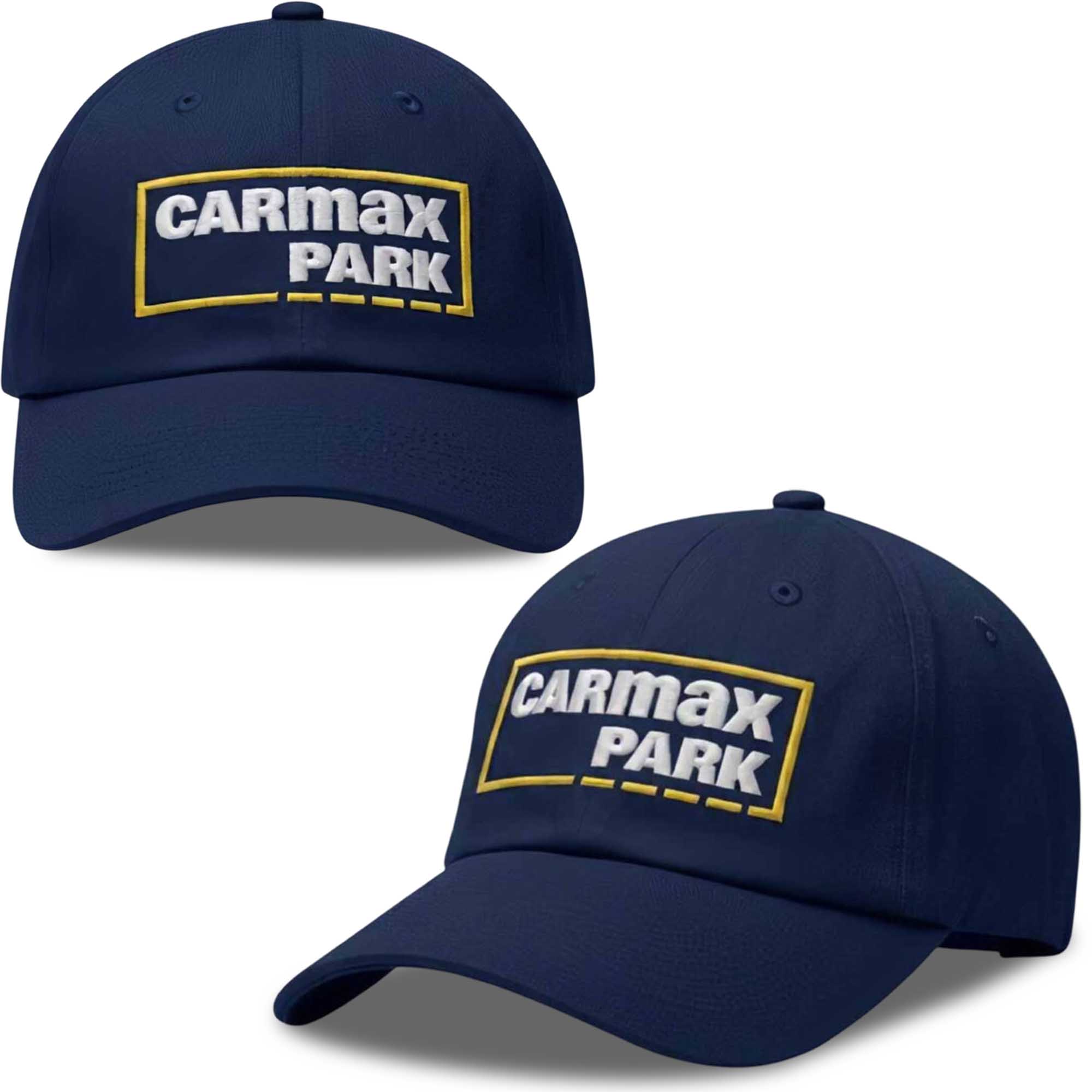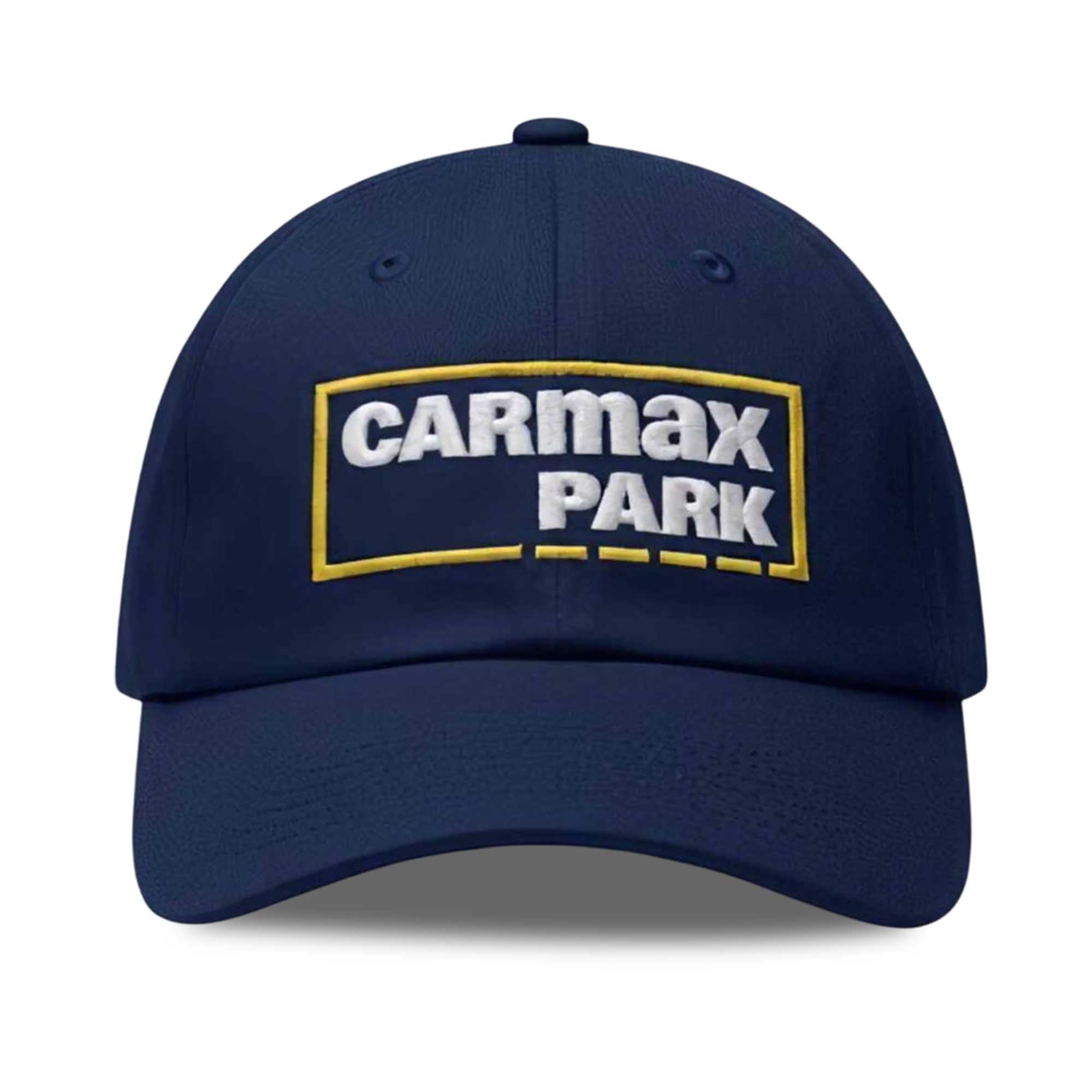 The cap features a dark navy background, creating a clean and classic look. On the front, the CARMAX PARK lettering is boldly printed in a rectangular frame, creating a strong visual impact associated with the new stadium. The contrast between the lettering and the background makes the design easy to read and eye-catching. The crown maintains a sharp shape, while the curved brim gives it a timeless baseball look, suitable for both fans and everyday use.