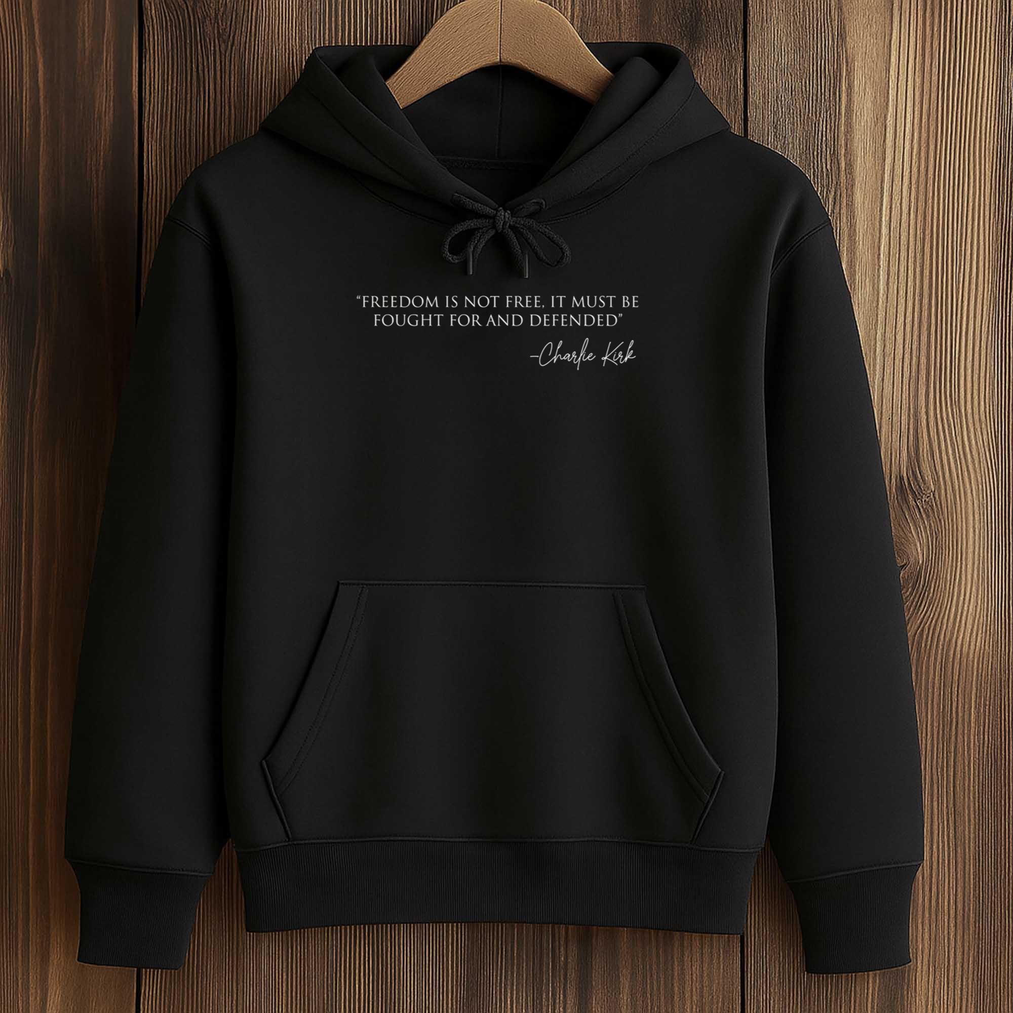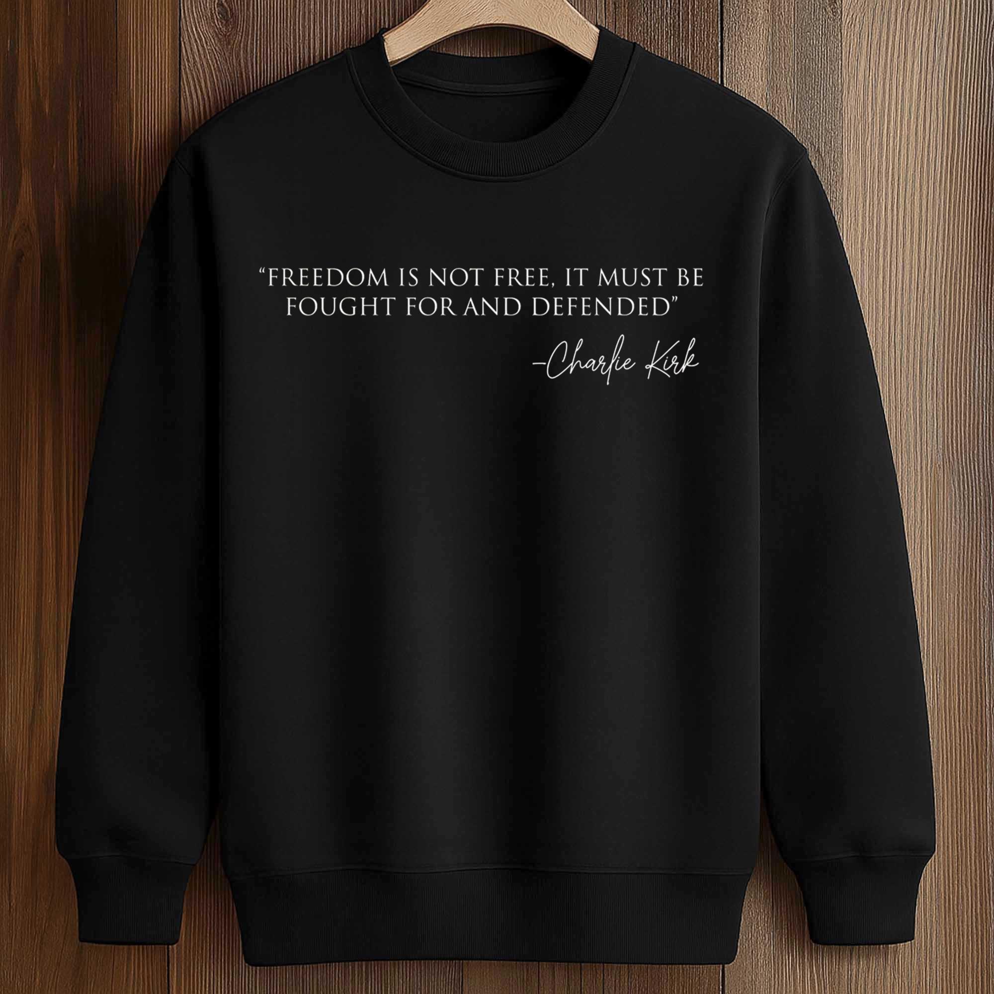The Freedom Is Not Free It Must Be Fought For And Defended Charlie Kirk Shirt represents patriotism and enduring sacrifice. Inspired by a saying that reminds us that freedom always comes at a price, this shirt combines simplicity with strength. It’s designed for those who believe in standing up for what they value—a timeless piece that transcends style and directly communicates faith, resilience, and pride.