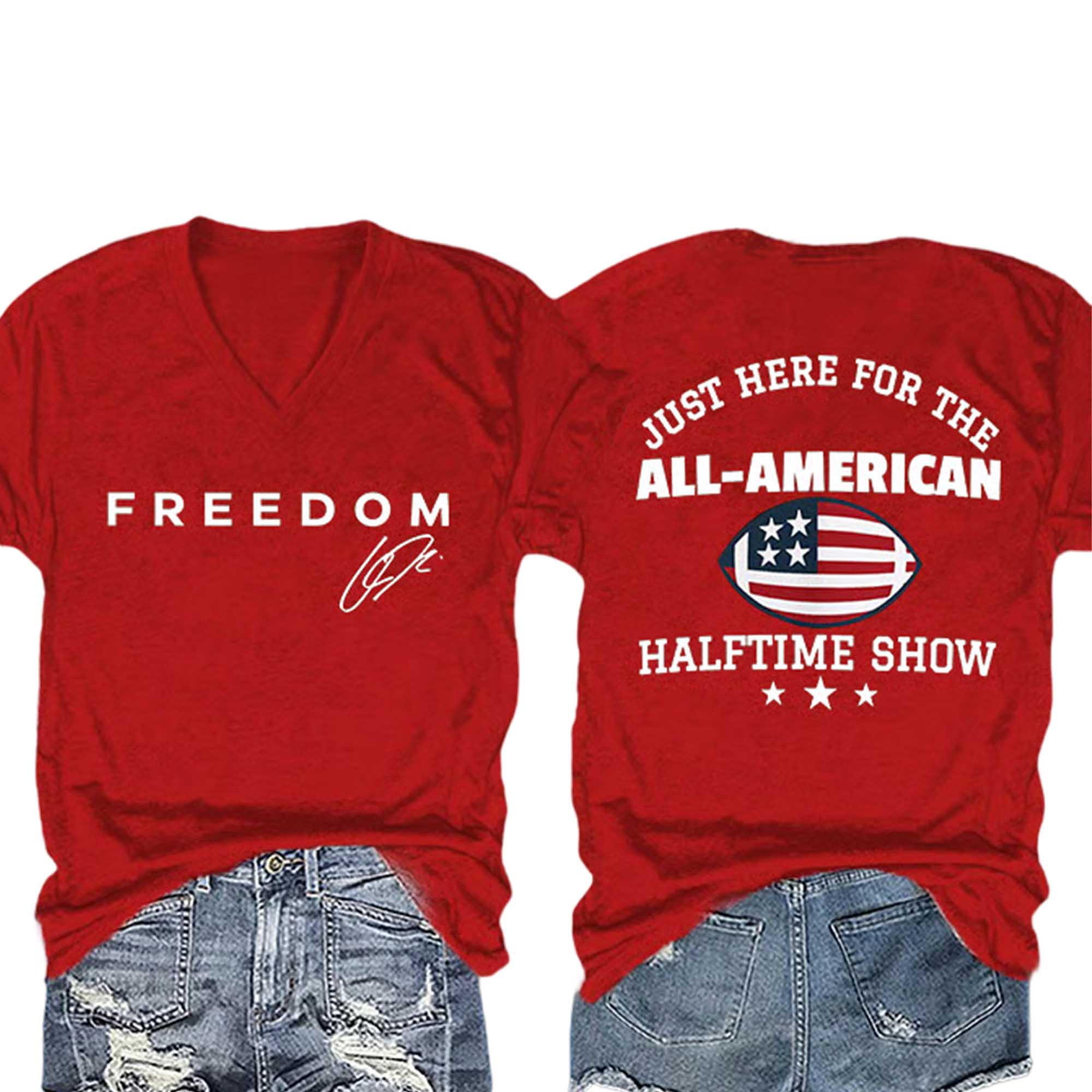 The Freedom Just Here For The All American Halftime Show Shirt is gaining popularity as fans gravitate towards clothing that expresses personality and conveys a message. With major sporting events and halftime shows becoming cultural moments, this shirt reflects a growing interest in playful patriotism combined with witty commentary on modern fan culture.