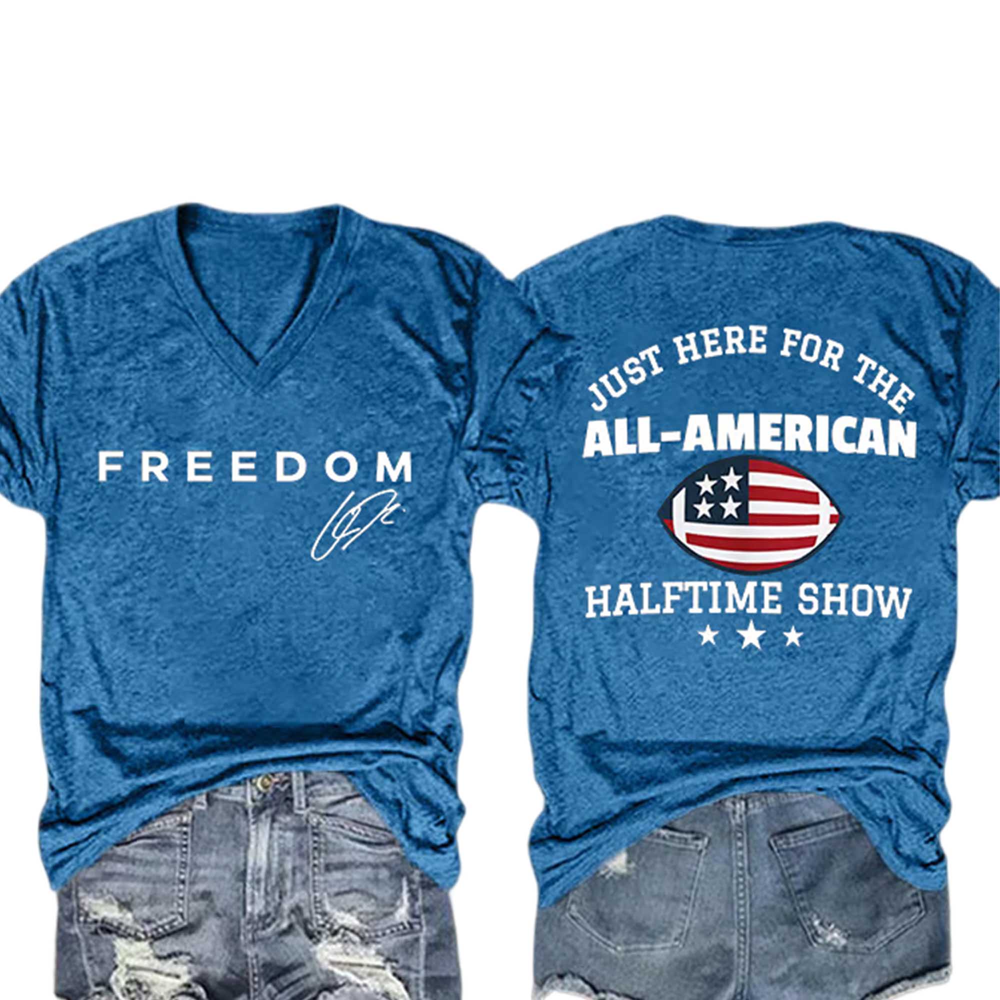Freedom Just Here For The All-American Halftime Show T-Shirt – A patriotic shirt with humor, personality, and the energy of the modern fan