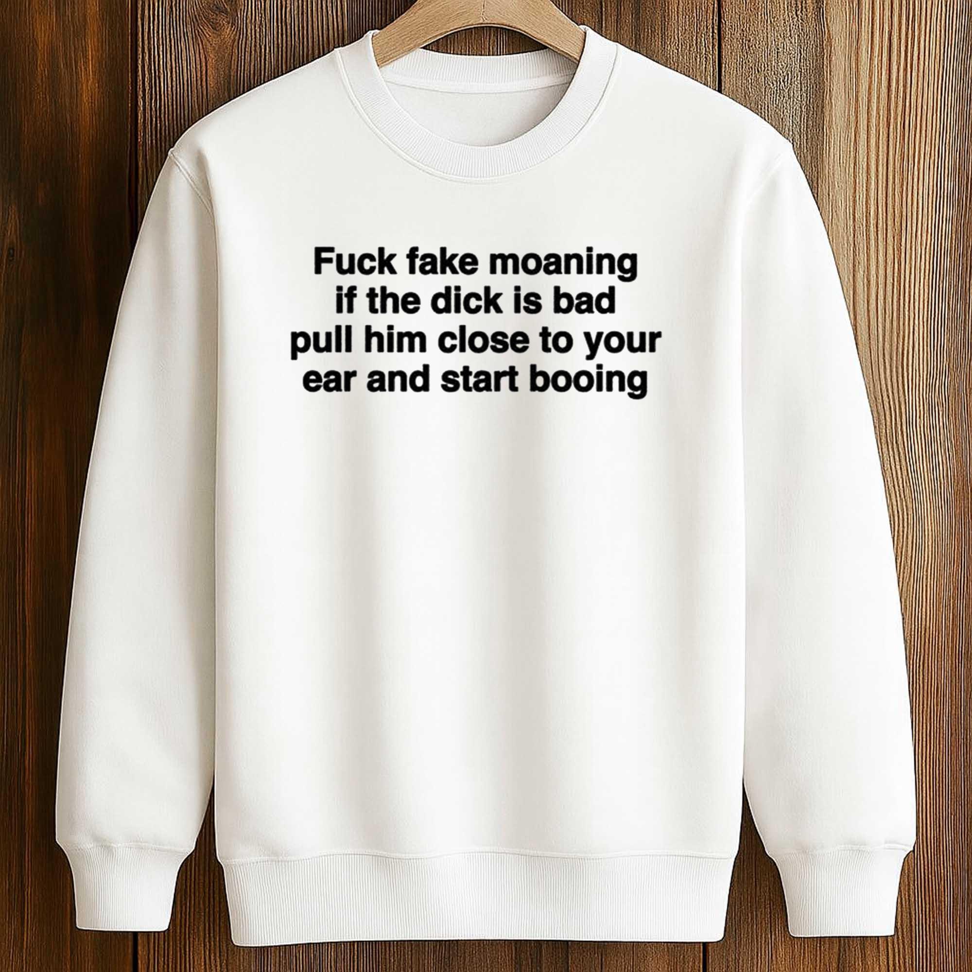 This Fuck Fake Moaning If The Dick Is Bad Pull Him Close To Your Ear And Start Booing Shirt says it all: “Don’t pretend to moan, if your ‘little guy’ is bad, lean in and yell.” It’s the hilarious meme that’s been going viral on social media in 2025. Made from super soft cotton, with bold black lettering on a white background. Comfortable all day long, fits sizes S to 5XL, and colorfast after multiple washes. Wear it out with friends, to parties, or just to laugh it off it lifts your mood and breaks the ice.
