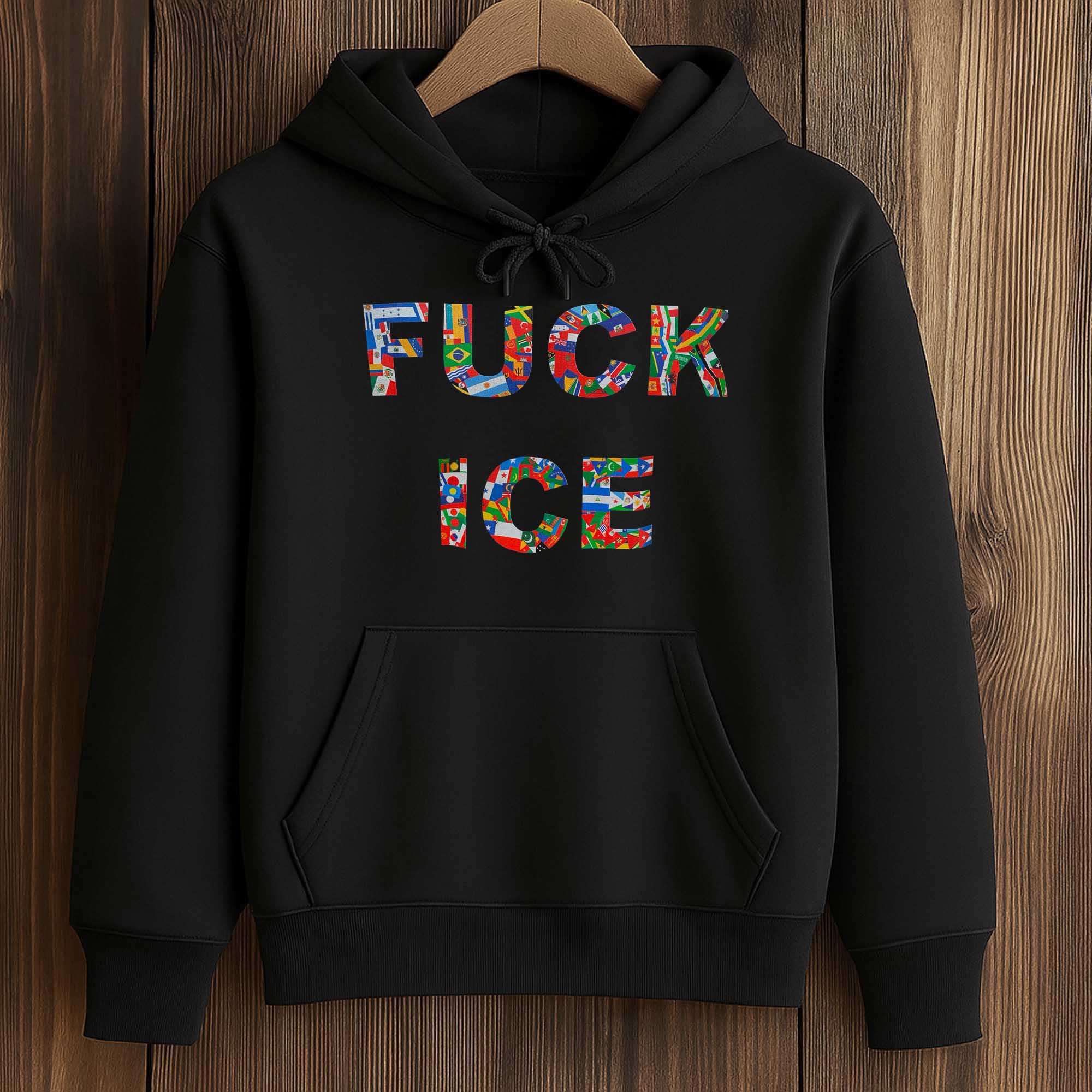 FUCK ICE Hoodie with Multi-Nation Flags – A Global Message in Modern Streetwear