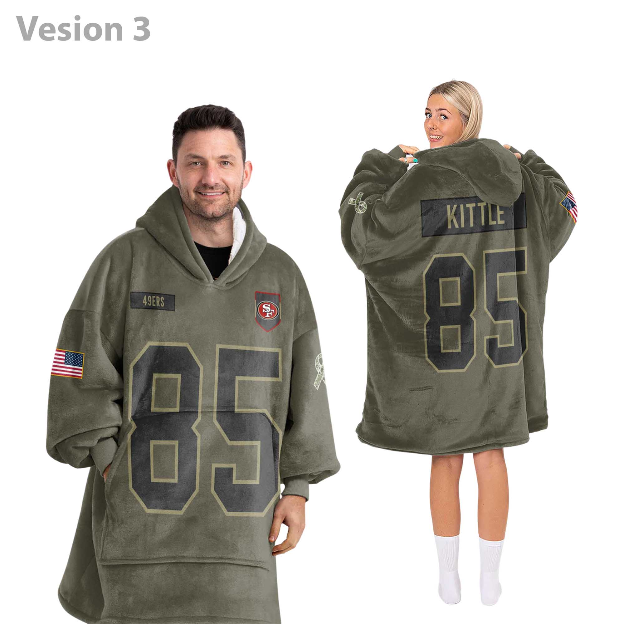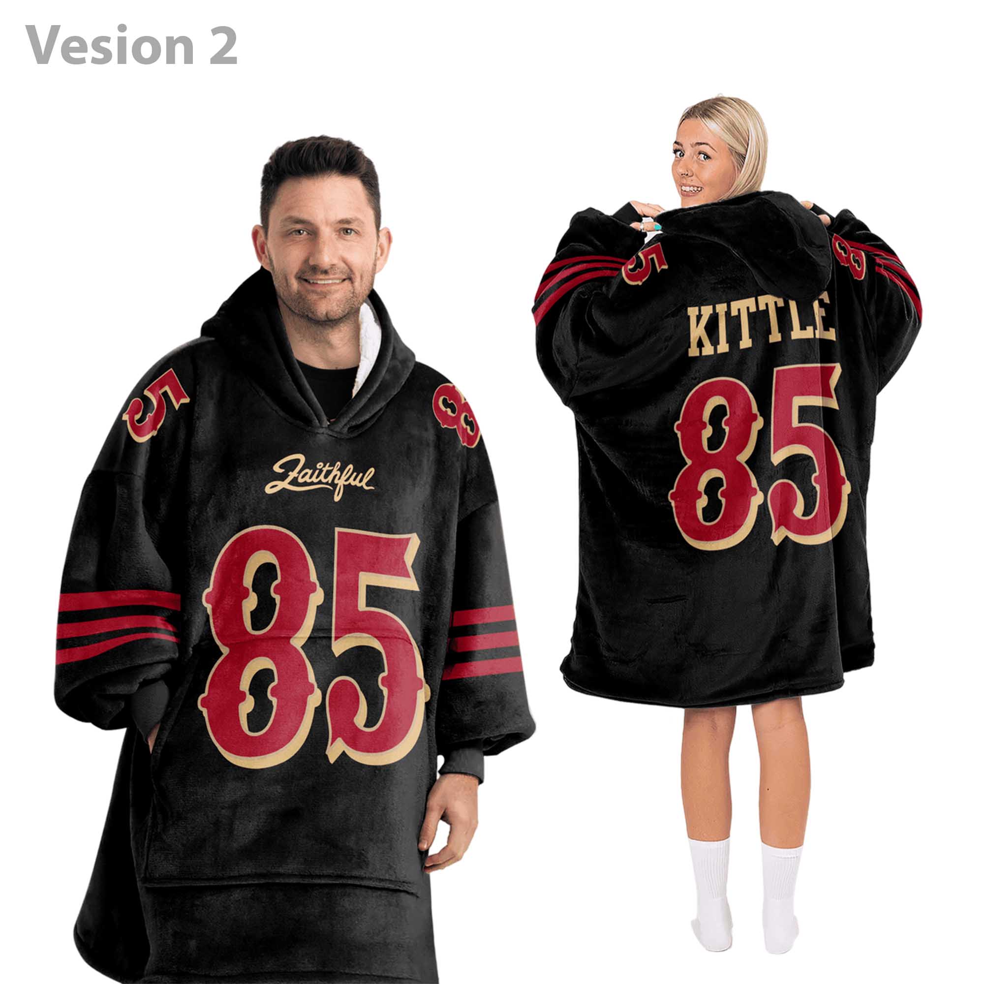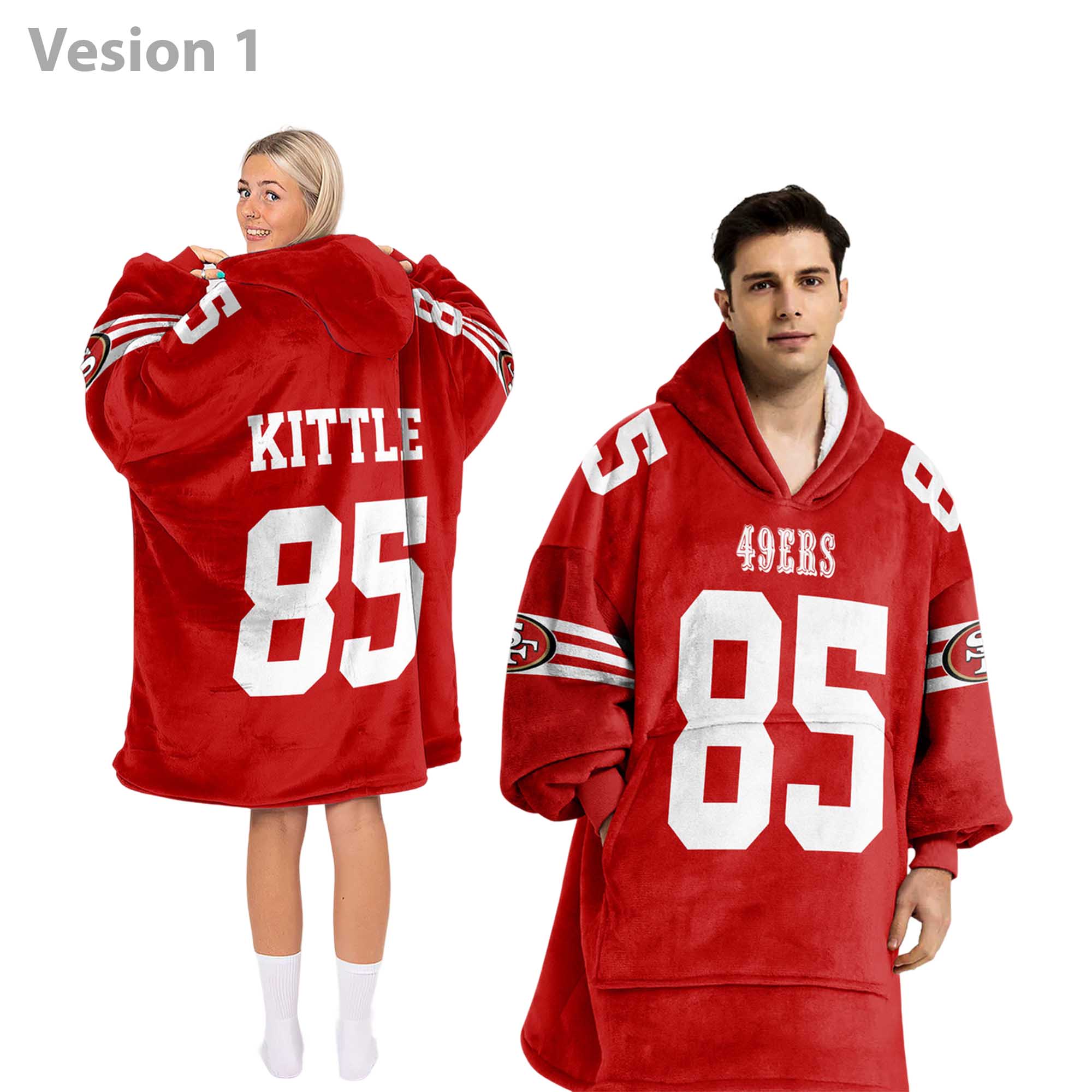 The George Kittle 85 49ers Football Unisex Blanket Hoodie wraps fans in ultra-soft fleece for superior warmth. Featuring bold 49ers red, Kittle iconic 85, and a roomy hood, this hoodie is perfect for chilly game nights, relaxing at home, traveling, or giving as a gift. A cozy blend of style, comfort, and team passion for every Niners fan.