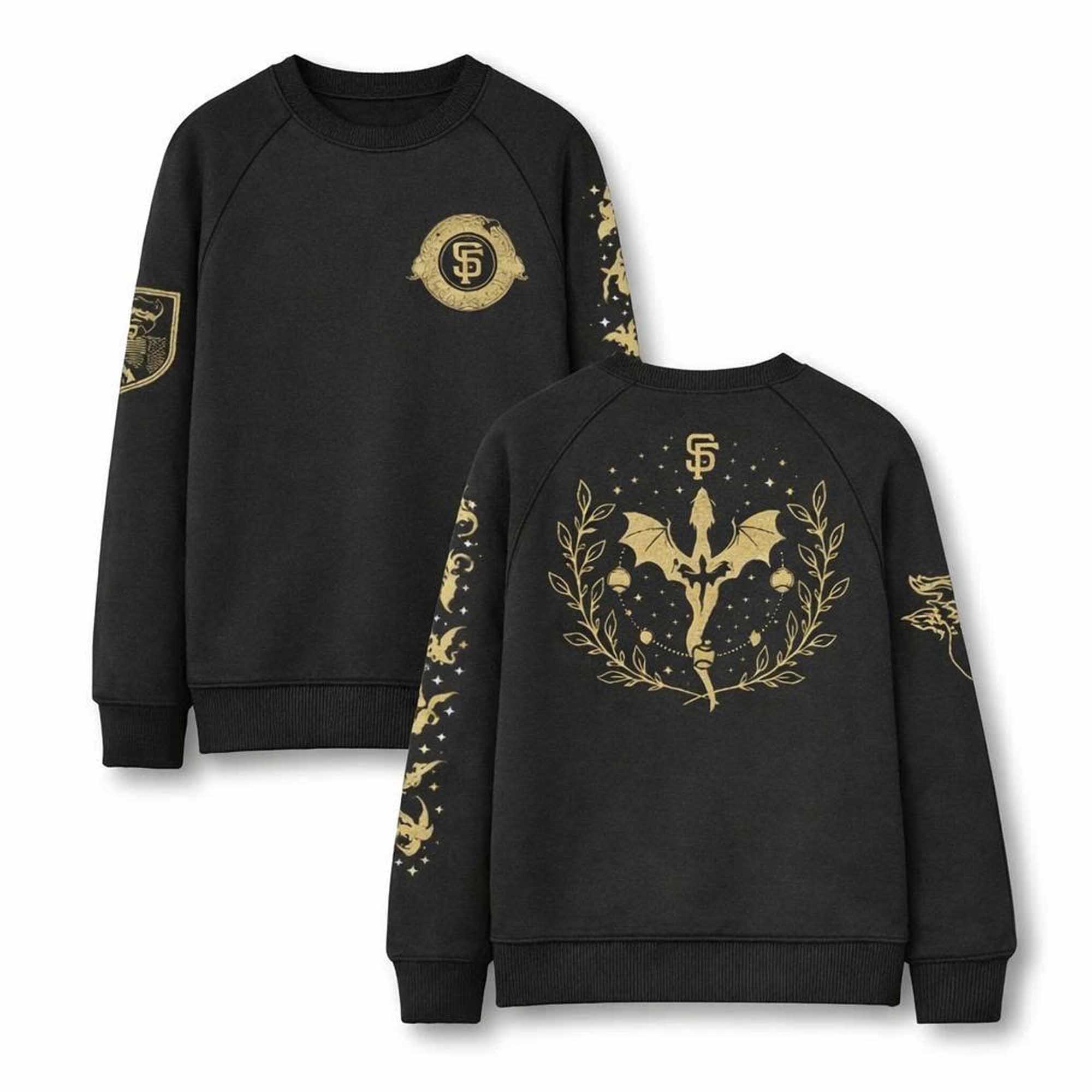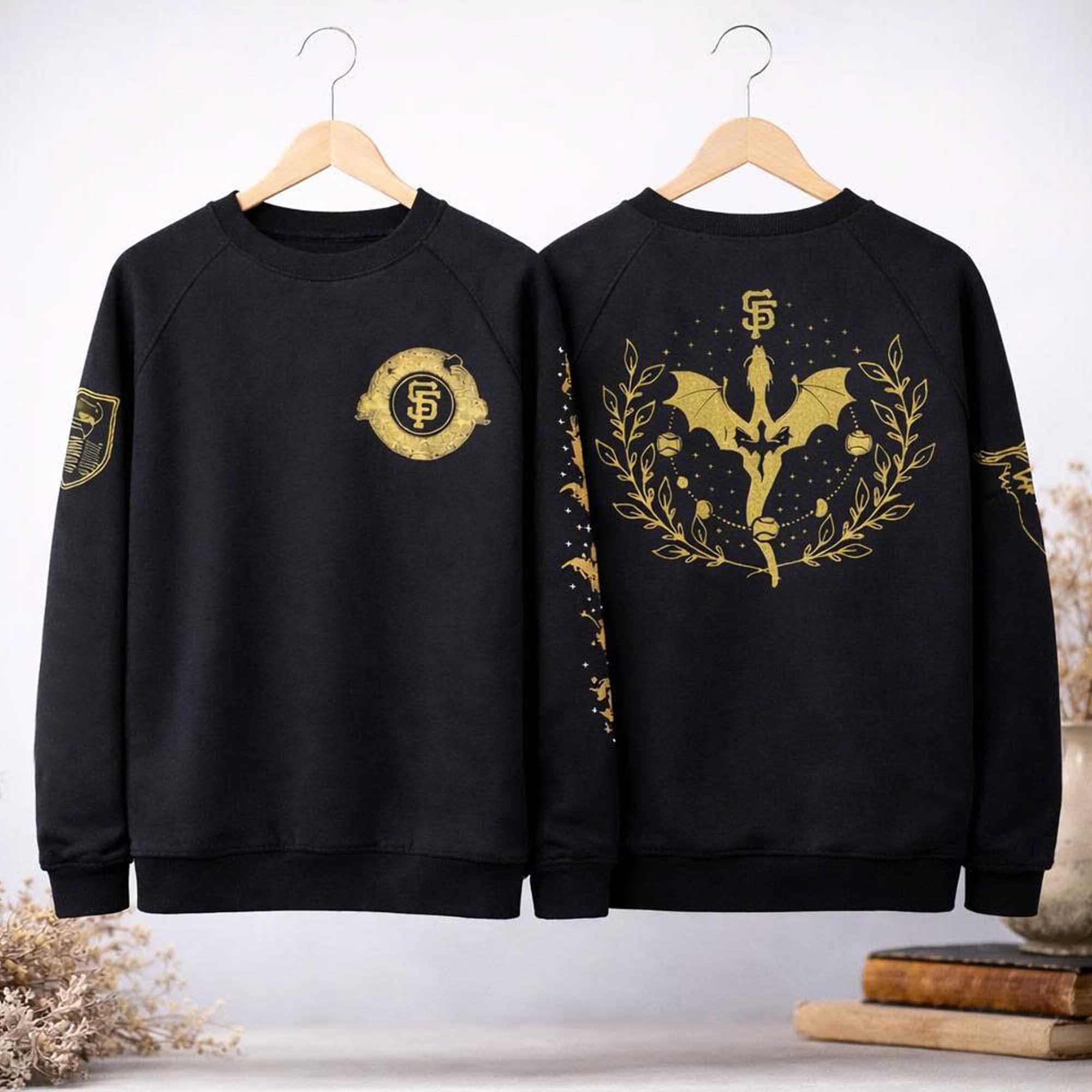The Giants Fourth Wing Sweatshirt 2026 Giveaway continues the trend of creative fan apparel associated with special stadium events. In 2026, teams are moving beyond basic logos and bringing deeper themes, connecting with storytelling and visual identity. This sweatshirt stands out with its dark background and gold accents, creating a strong contrast that is both bold and sophisticated. The design leans towards a fantasy style, combining the San Francisco Giants’ identity with wing imagery and detailed patterns.