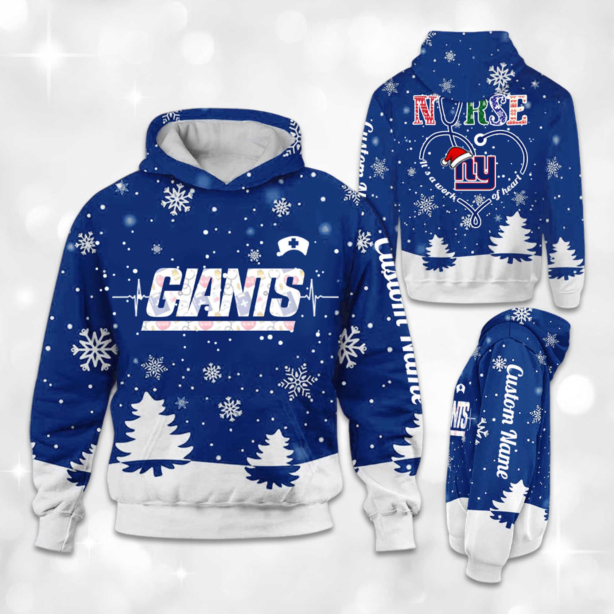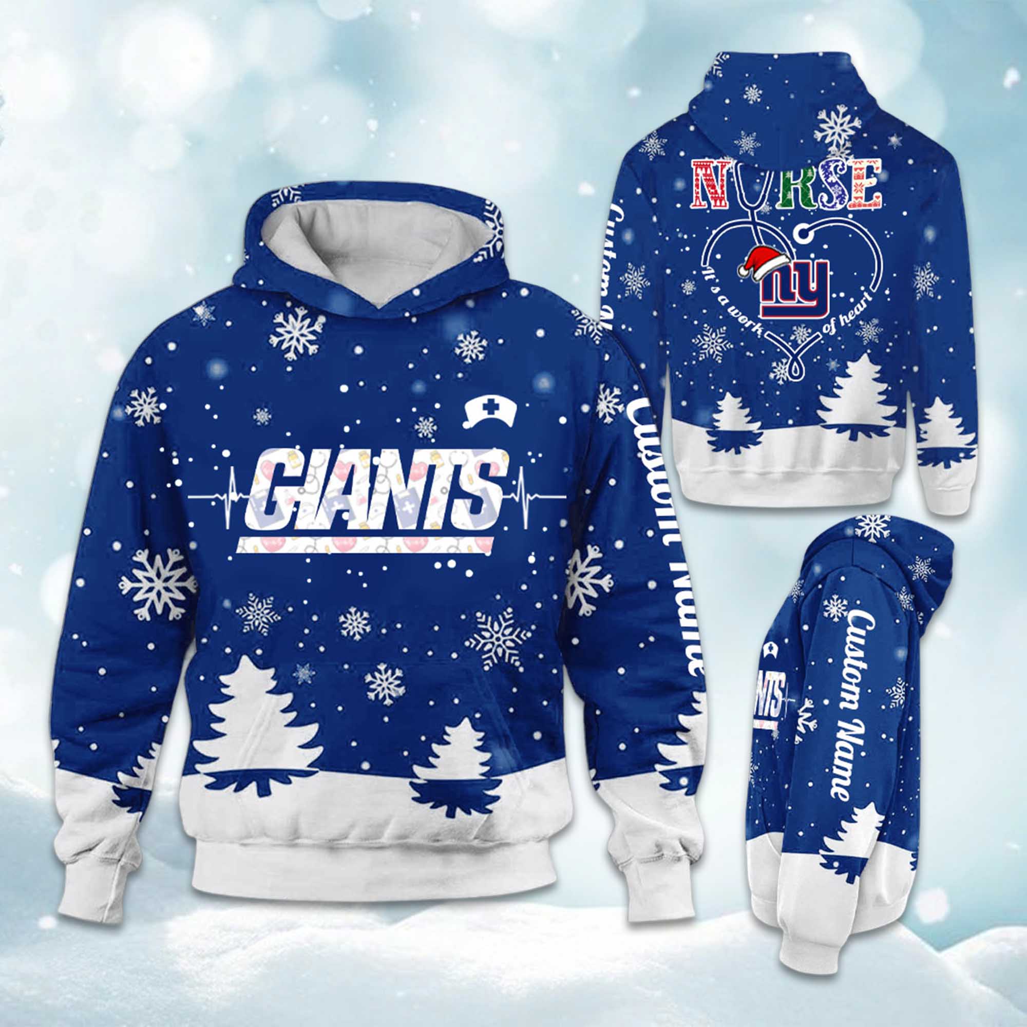 Giants x Nurse Christmas Soccer Hoodie – Winter Pride with a Big Blue Spirit