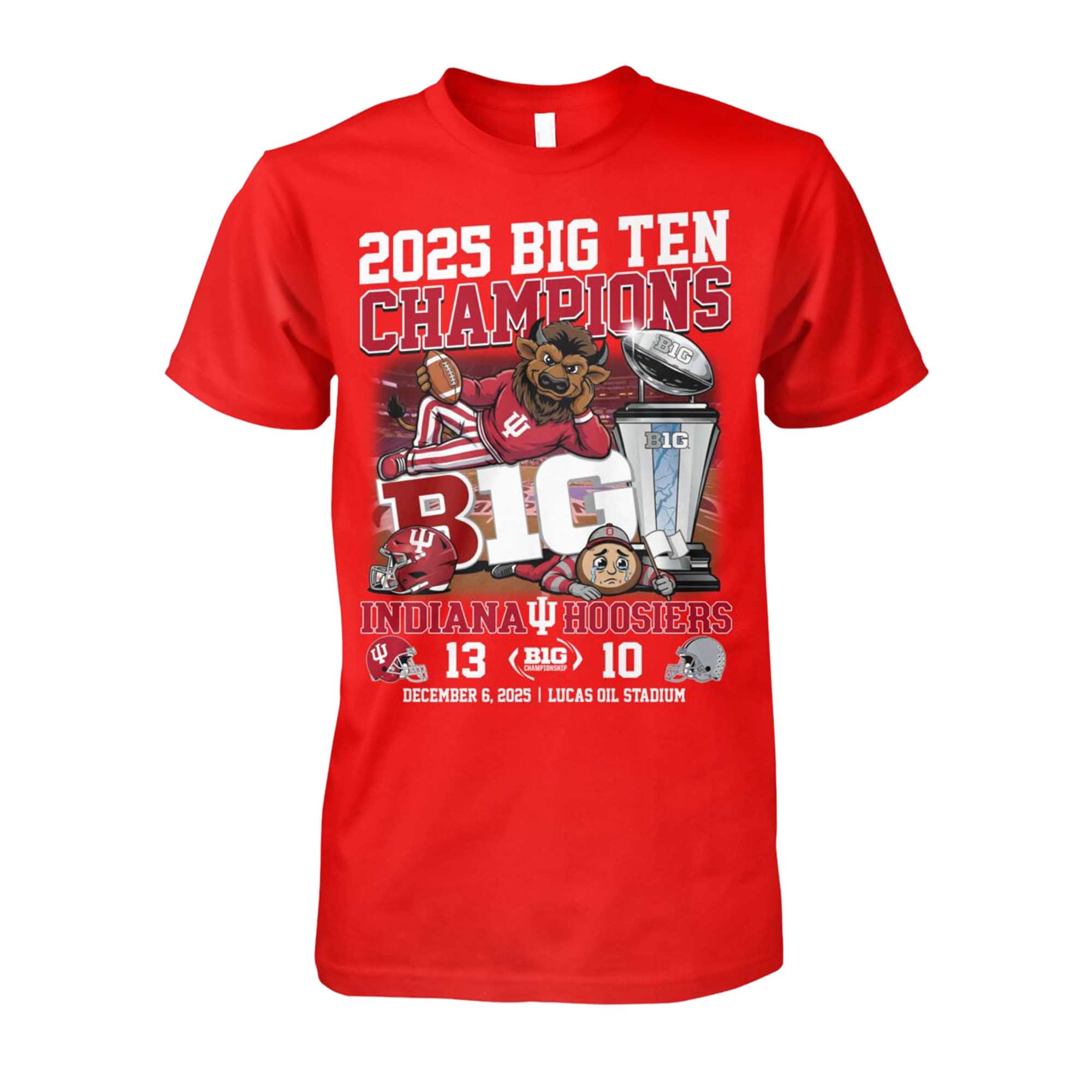 The Hoosiers 2025 Big Ten Champions Shirt showcases the energy of this championship journey with a bold and striking design. This shirt features eye-catching graphics, a clear championship slogan, and visual elements that reflect the drama of the Big Ten tournament. Comfortable for everyday wear, it’s perfect for game days, game shows, campus life, or casual outings, allowing fans to relive the winning moments anytime.
