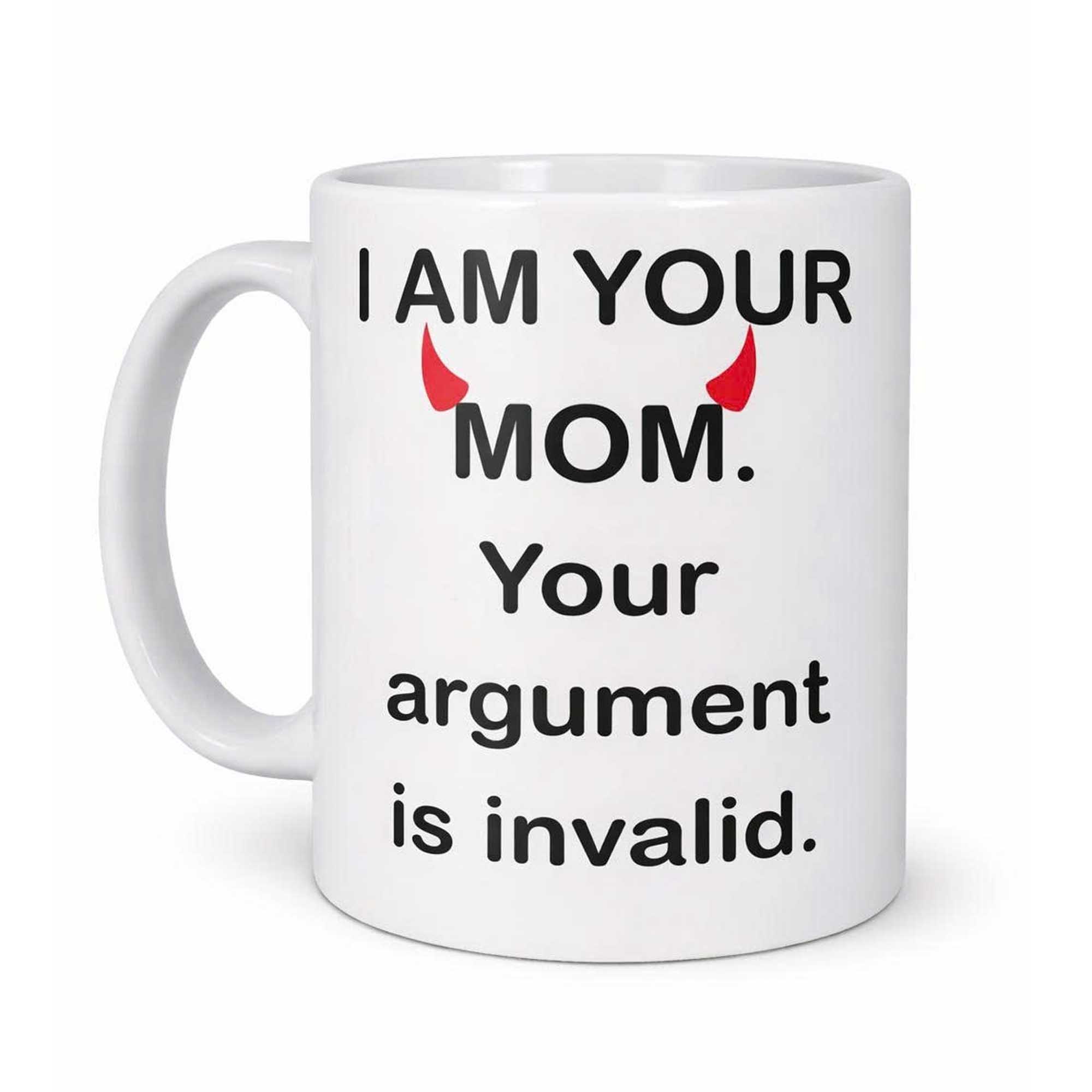 The I Am Your Mom Your Argument Is Invalid Mug is gaining popularity thanks to its witty humor and bold message. Designs like this are trending as people seek everyday items that reflect personality and bring a smile. With its witty message and simple layout, this mug stands out as a fun addition to any kitchen or workspace.