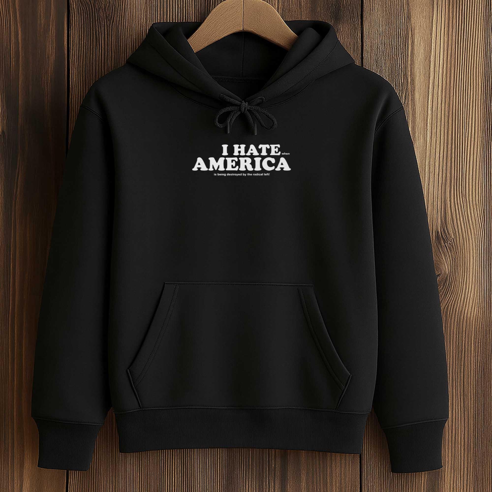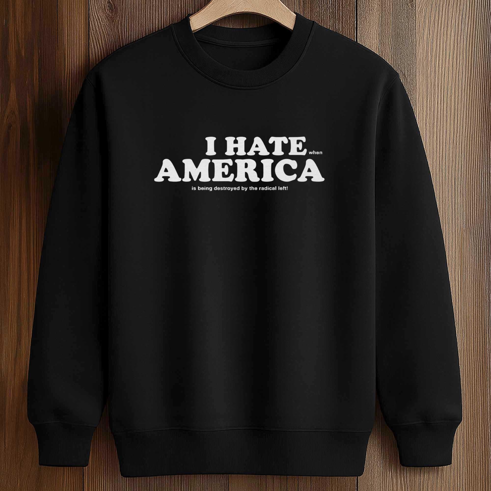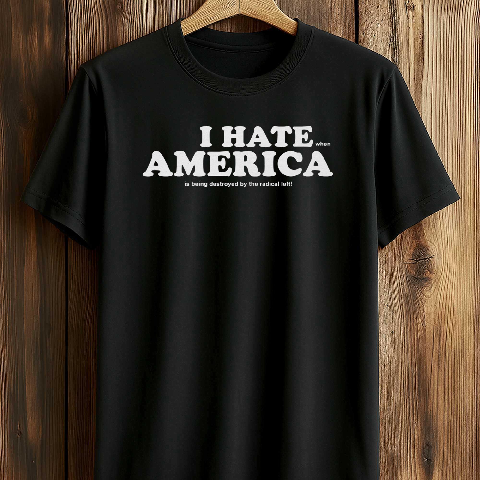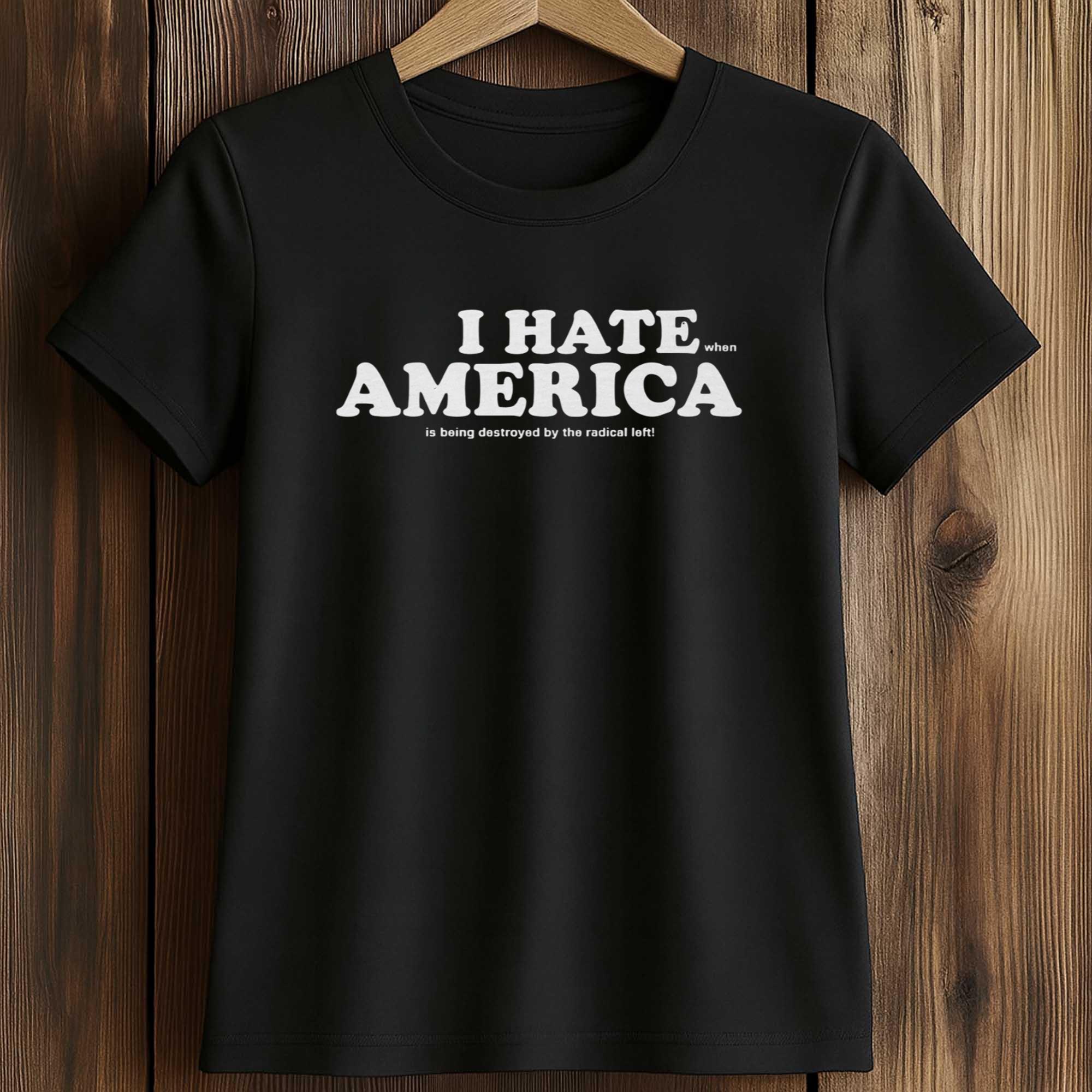 Political t-shirts with text continue to appear in everyday fashion as people opt for simple words instead of complex images. This trend favors high-contrast typography that conveys the message immediately. The I Hate When America Is Being Destroyed By The Radical Left Shirt follows this trend, relying on clear expression and classic color choices to convey its viewpoint without overwhelming the viewer.