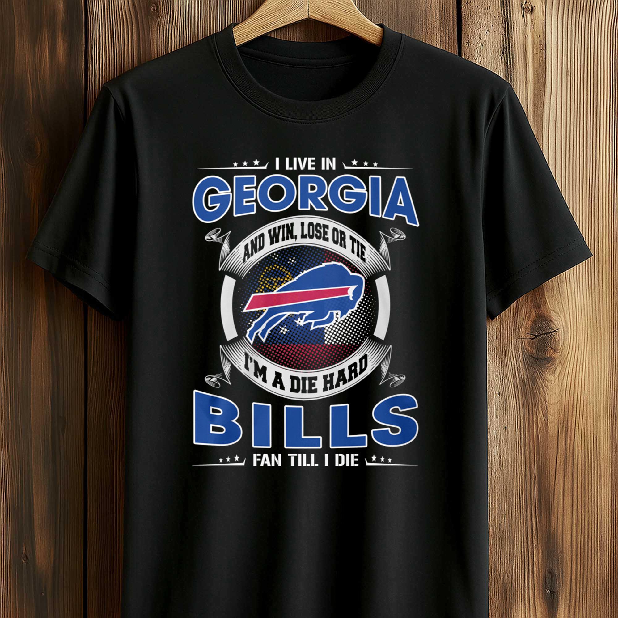 T-shirt “I Live in Georgia And Win, Lose, or Draw I’m Still a Bills Fan Until I Die” – Loyalty Transcends State Boundaries