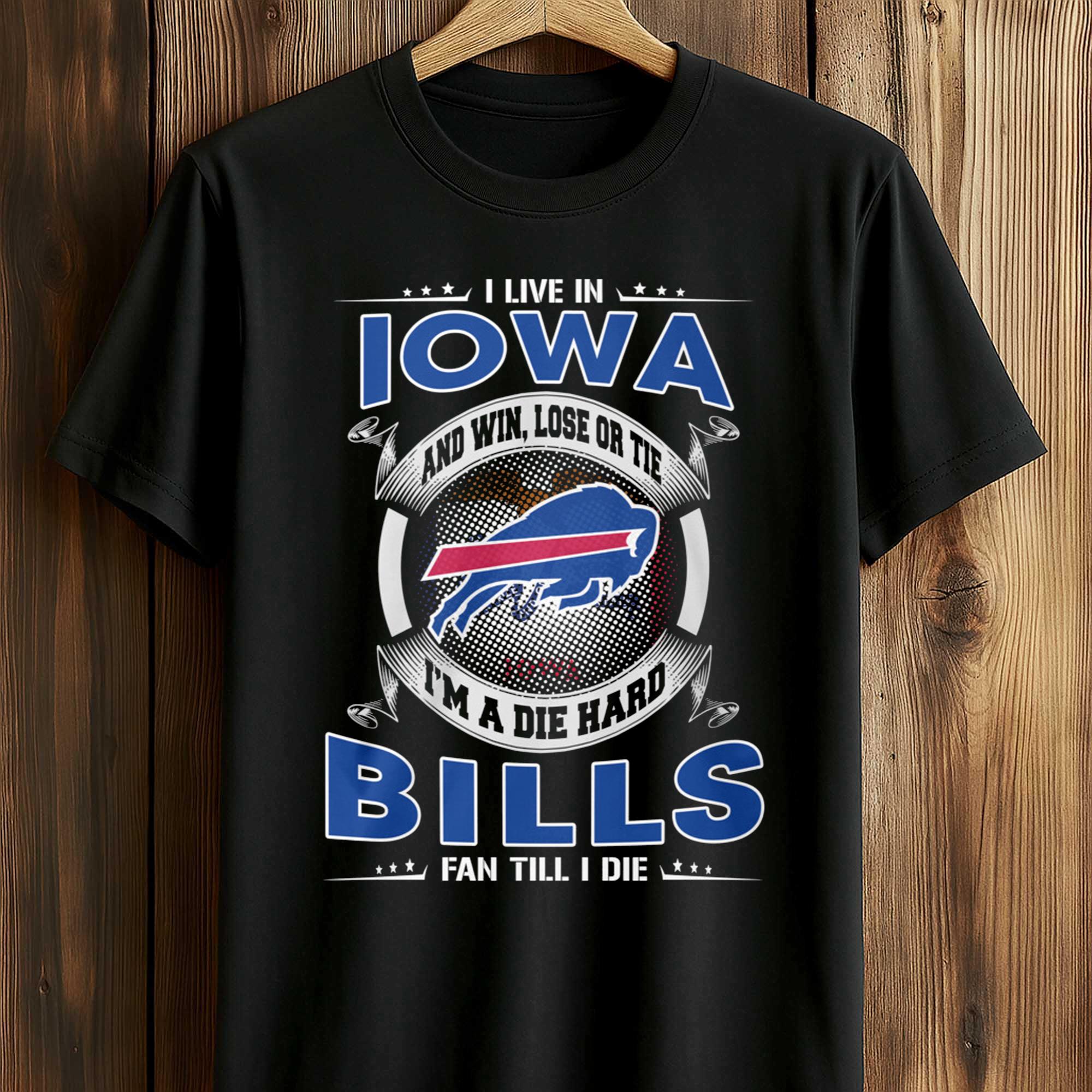 T-shirt “I Live in Iowa And Win, Lose, or Draw, I’m Still a Bills Fan to the Death” – Unwavering Loyalty