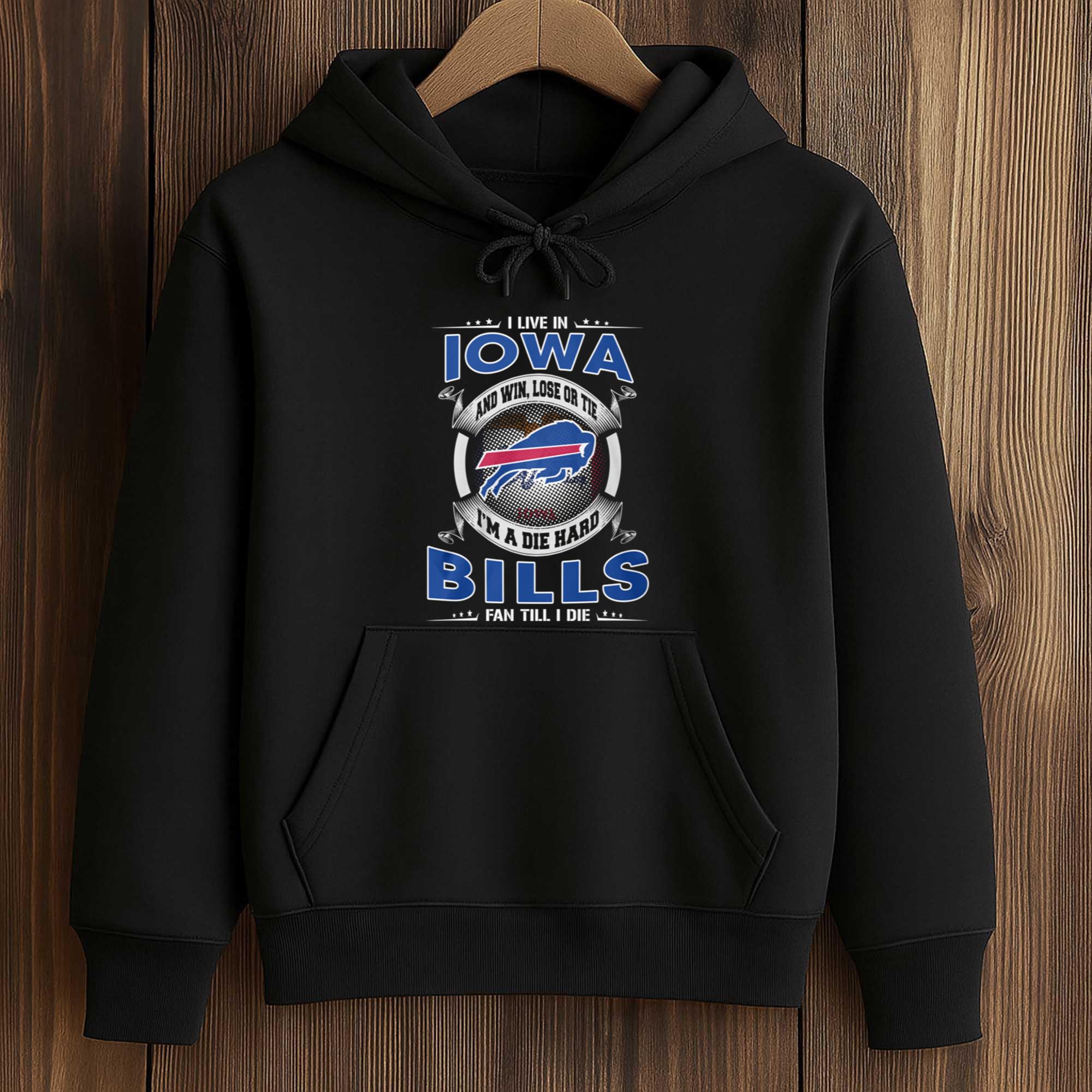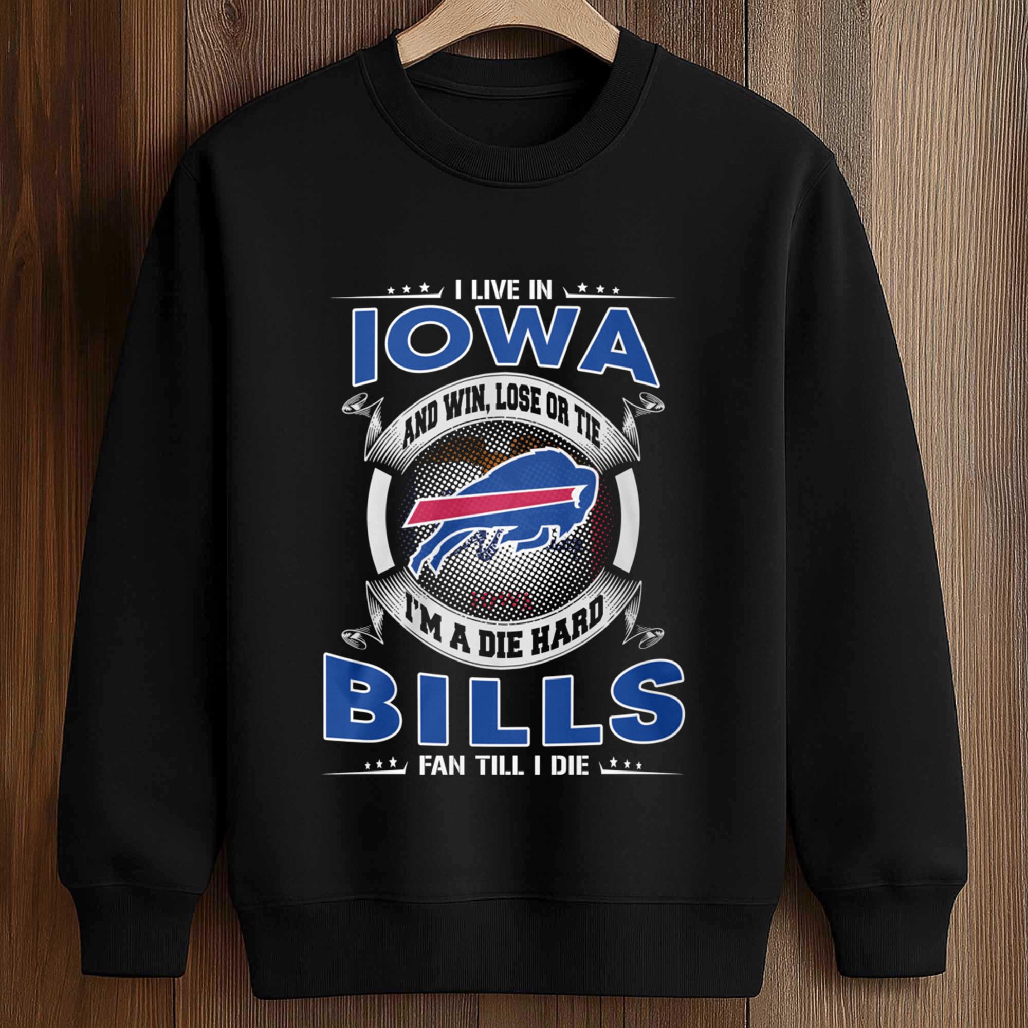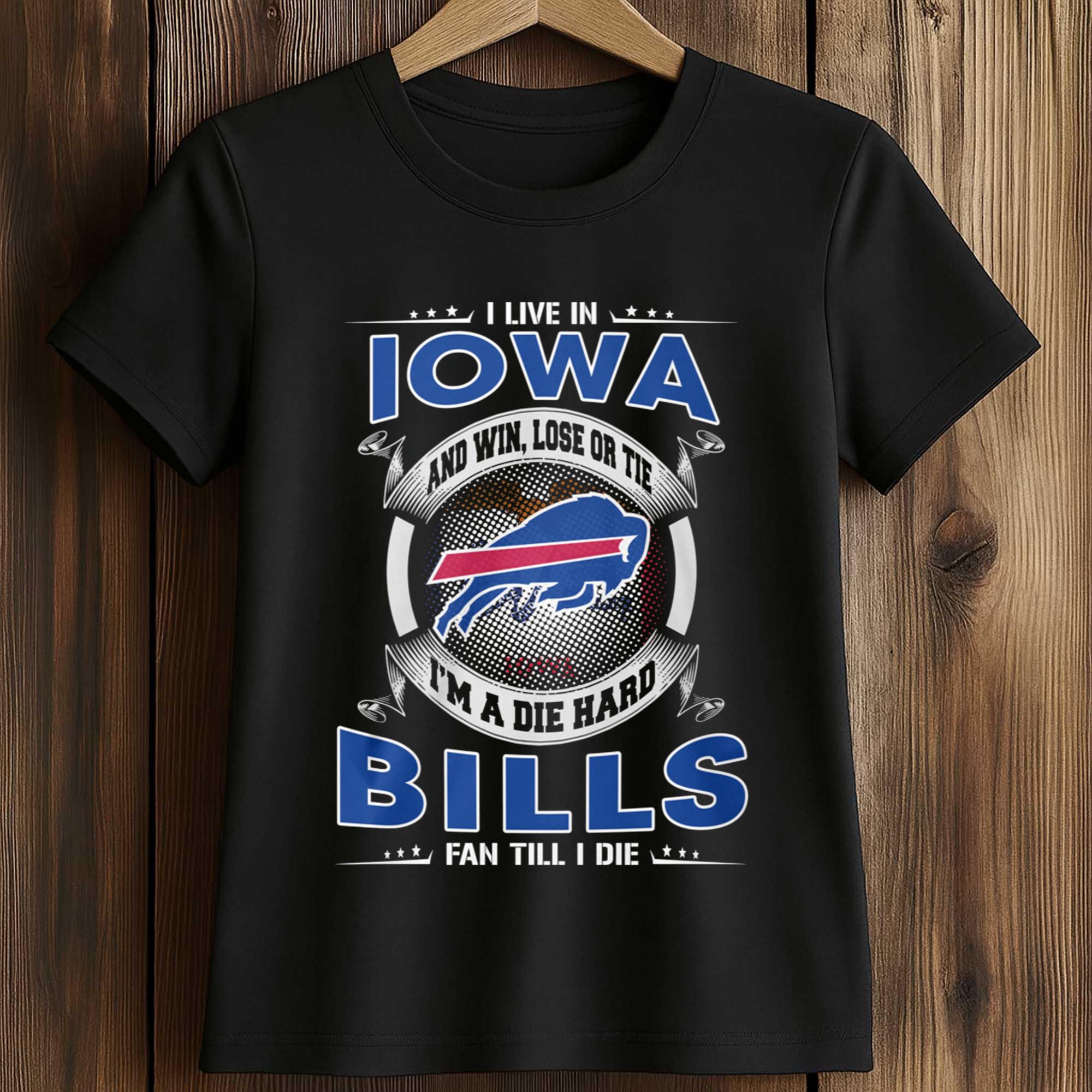 Fandom continues to transcend state borders, and Iowa is no exception. Many Bills fans proudly live far from Buffalo but maintain a deep connection to the team. This I Live In Iowa And Win, Lose Or Tie I’m A Die Hard Bills Fan Till I Die Shirt message reflects a growing fan culture where loyalty remains strong regardless of location, results, or changing seasons.