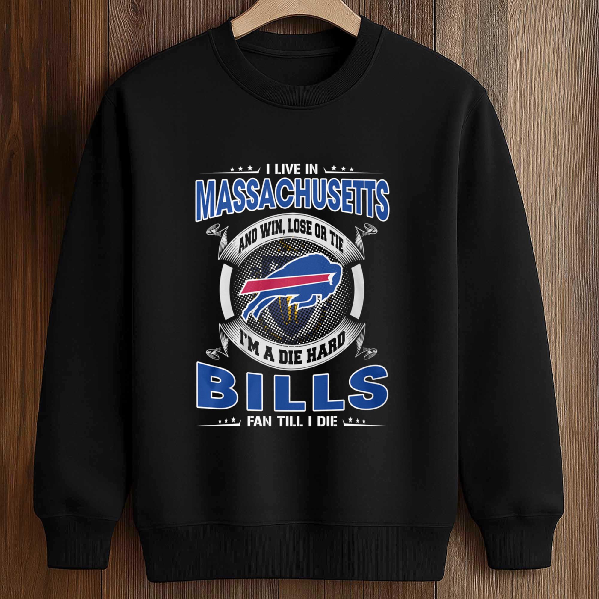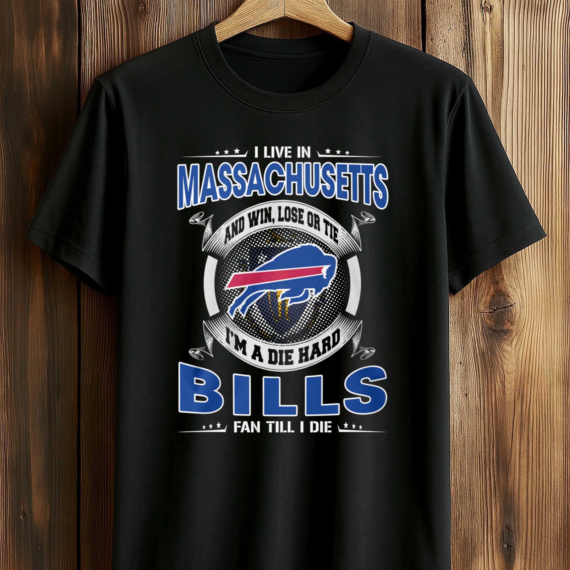 Fandom has evolved. Today, true supporters stand by their team no matter where life takes them. Living in Massachusetts doesn’t change your heart if it belongs to Buffalo. This I Live In Massachusetts And Win, Lose Or Tie I’m A Die Hard Bills Fan Till I Die Shirt represents fans who remain loyal through every season, every challenge, and every unforgettable moment on the court.