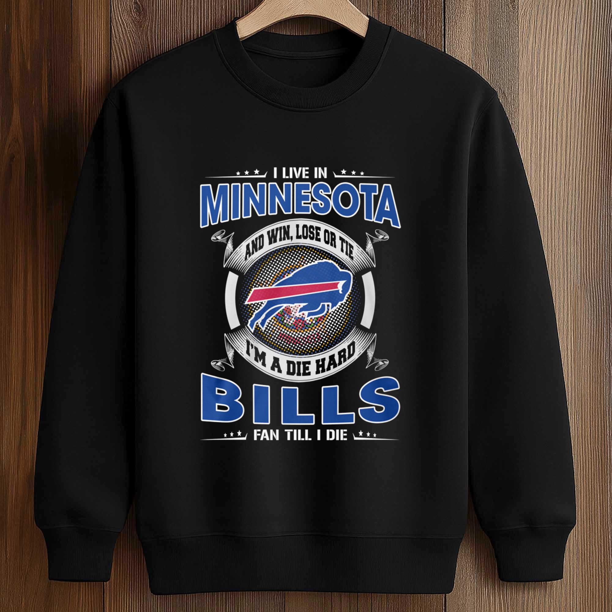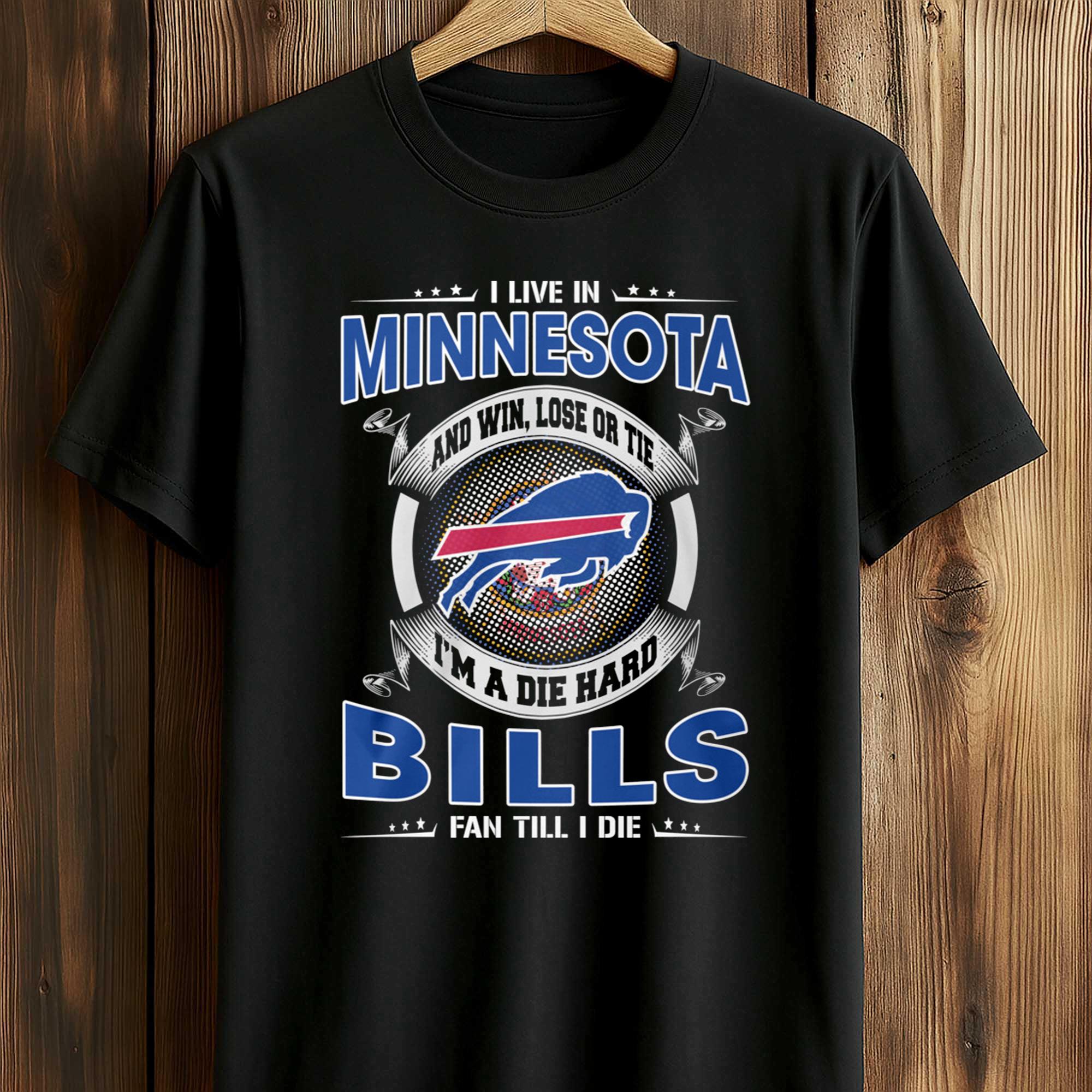 “I Live in Minnesota and Win, Lose, or Draw, I’m Still a Bills Fan to the Death” T-shirt – Show your unwavering loyalty to the Buffalo Bills